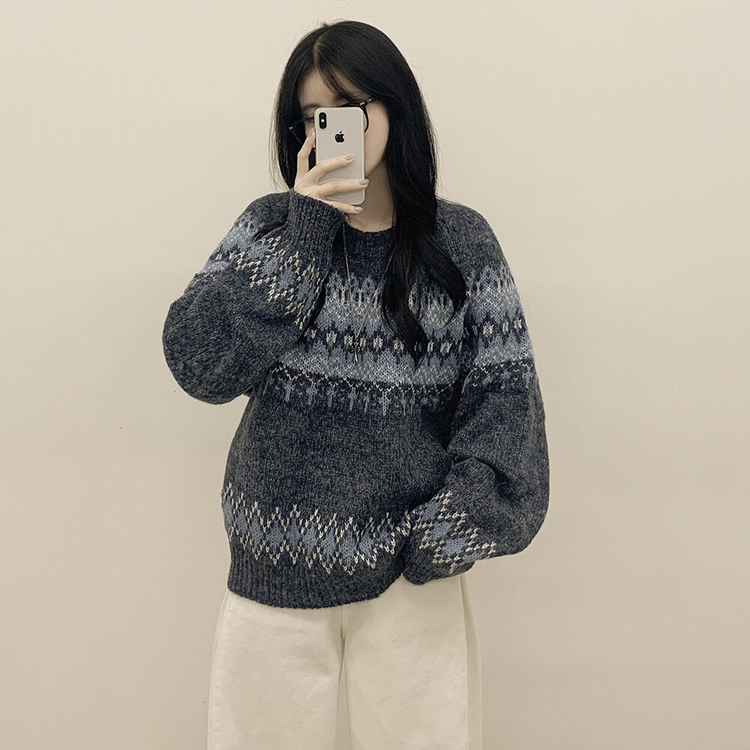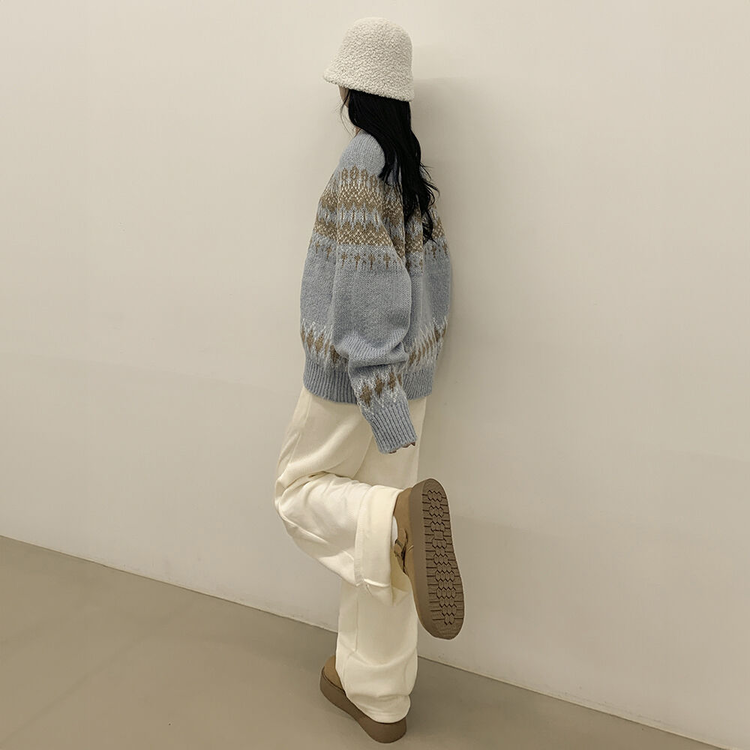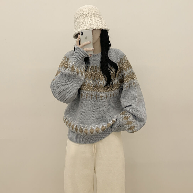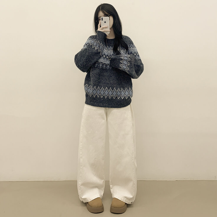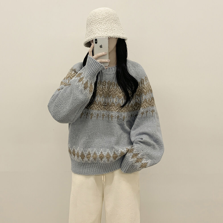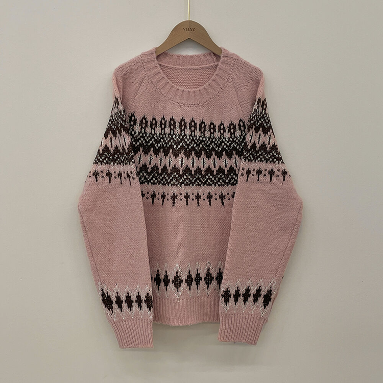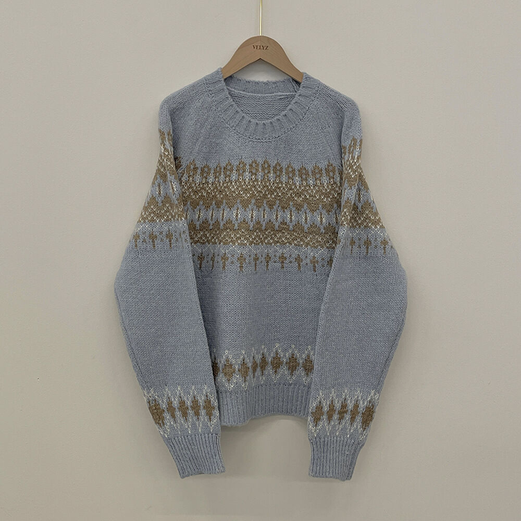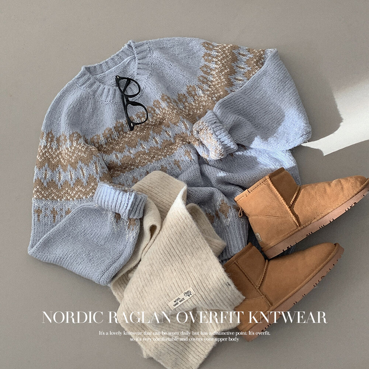 SNT26785 삿포로 노르딕 눈꽃 배색 오버핏 래글런 니트 크리스마스 연말룩