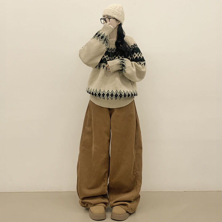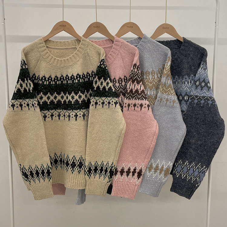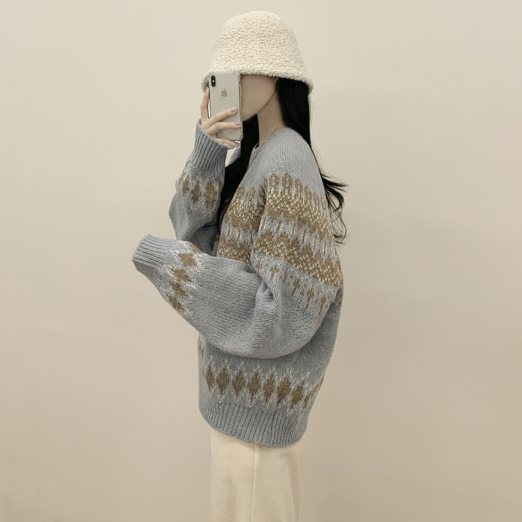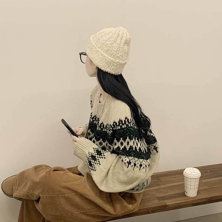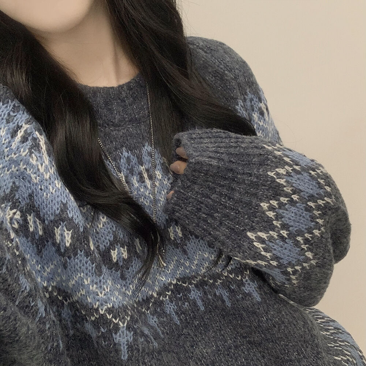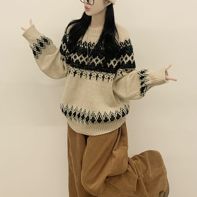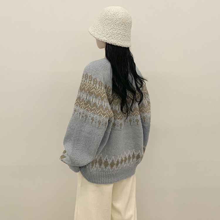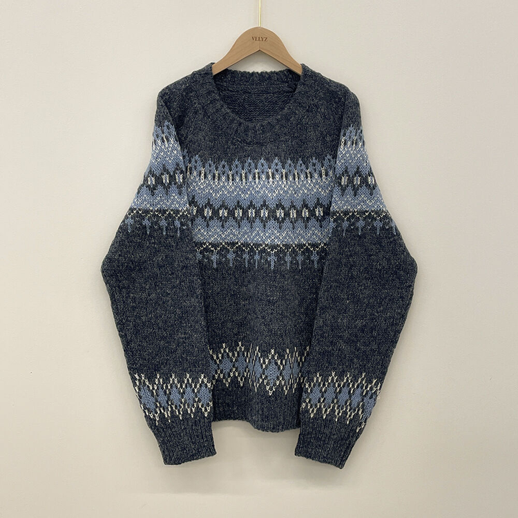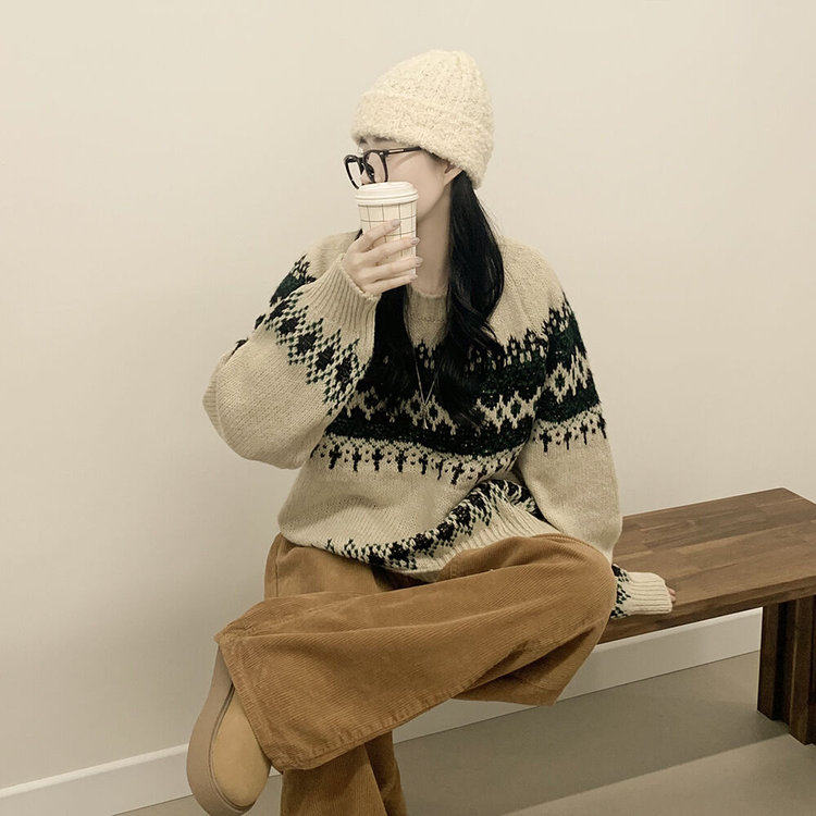 SNT26785 삿포로 노르딕 눈꽃 배색 오버핏 래글런 니트 크리스마스 연말룩