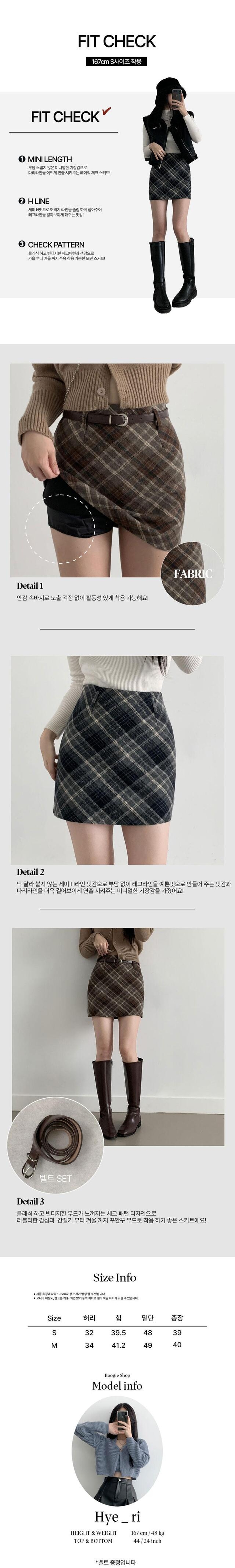 SSK20047 소울 빈티지 하이웨스트 클래식 체크 패턴 미니스커트
