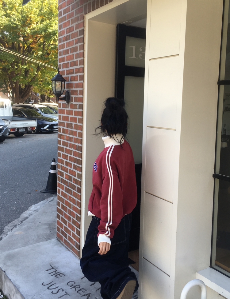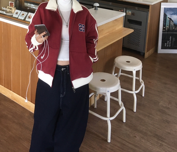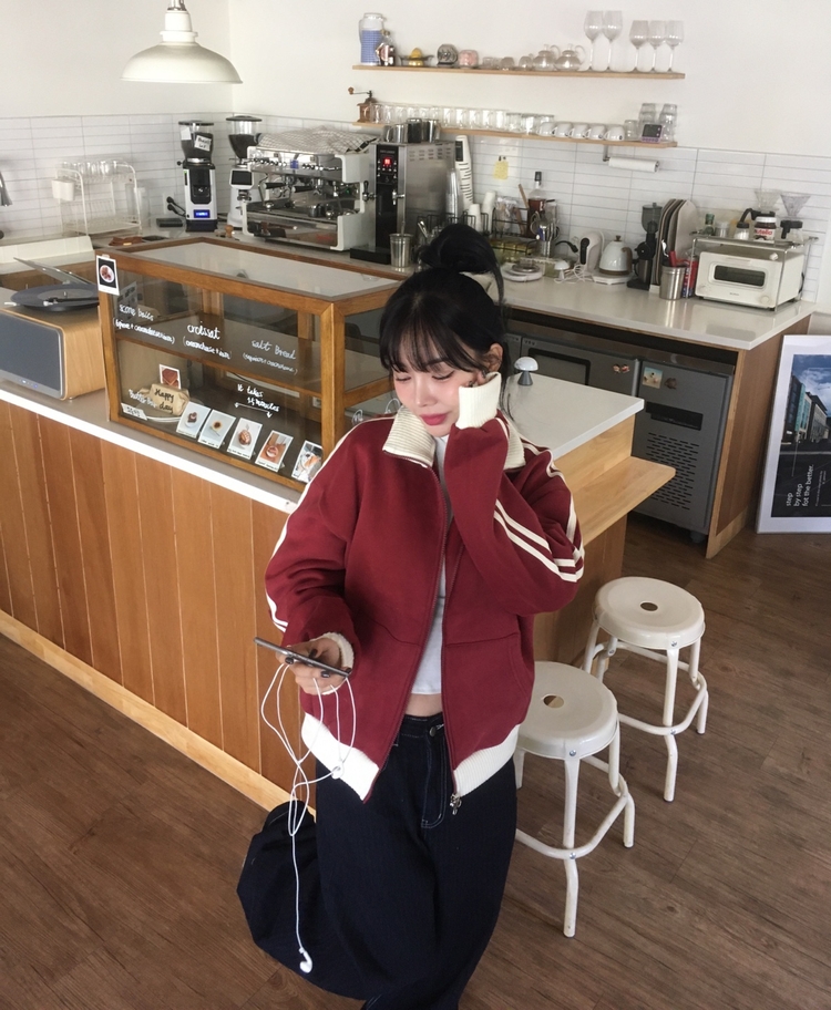 SJP13979 배색니트 풀 블루종 트랙 집업
