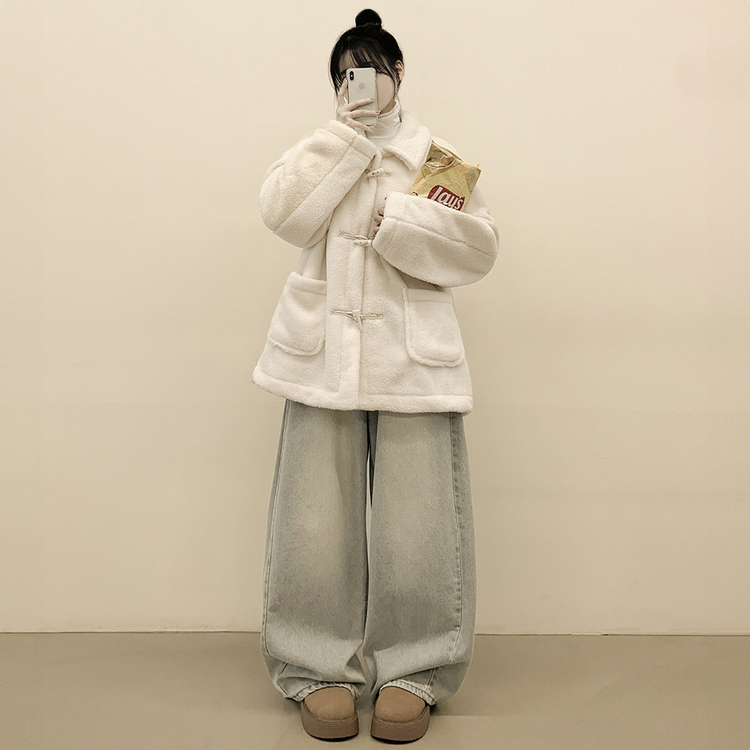 SJP14103 왕오버핏 도톰 양털 카라 떡볶이 덤블 뽀글이자켓 퍼코트