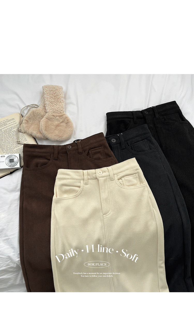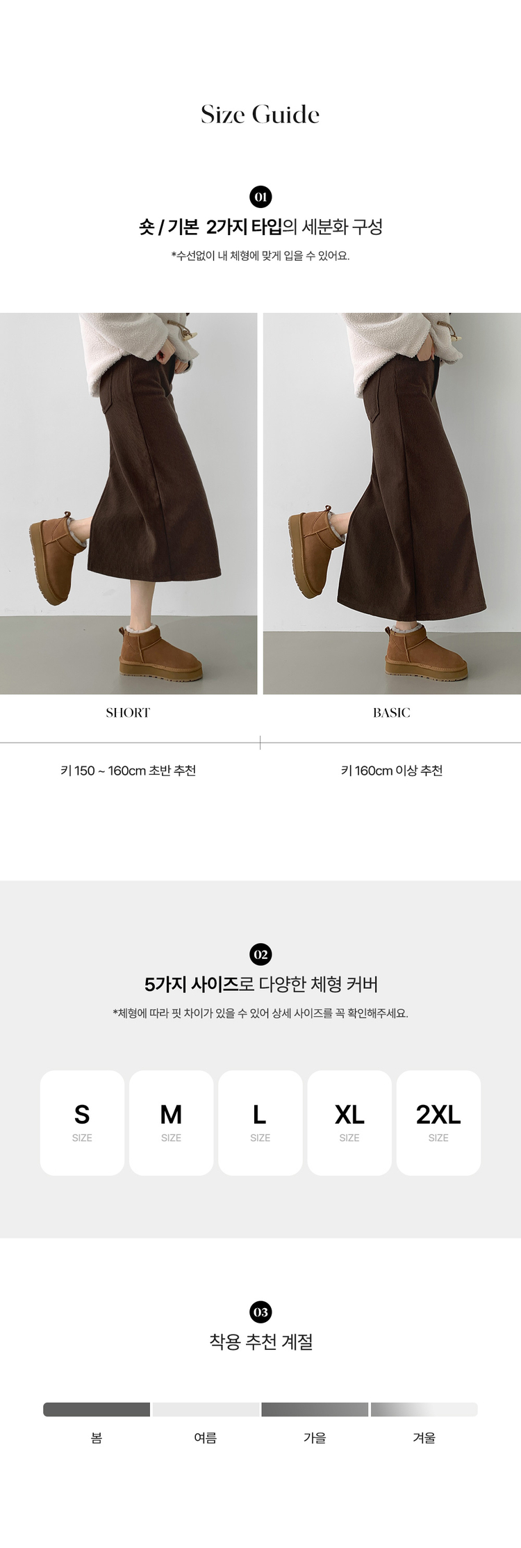 SSK20063 2XL뒤트임 융털기모 코듀로이 골덴 H라인 밴딩 롱스커트