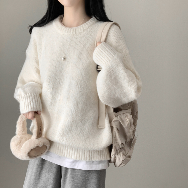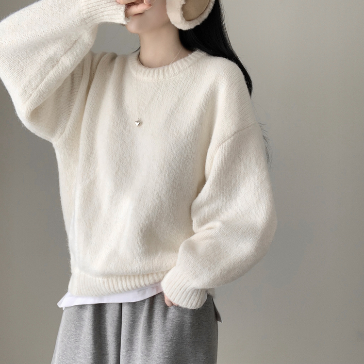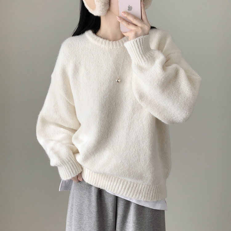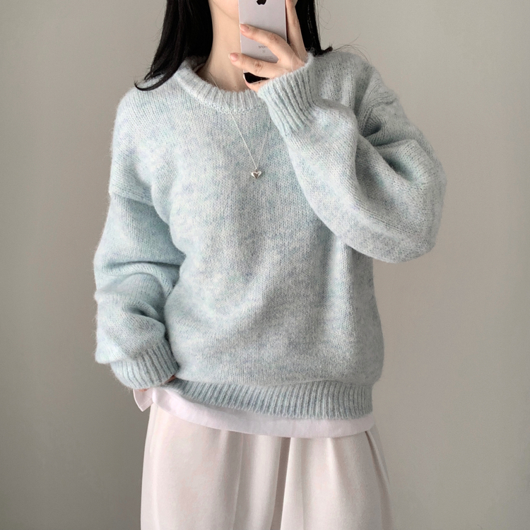 SNT27059 모아 러블리 아방 도톰 울 오버핏 라운드 파스텔 니트