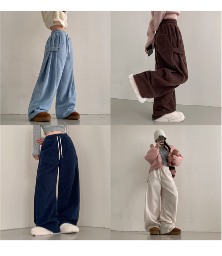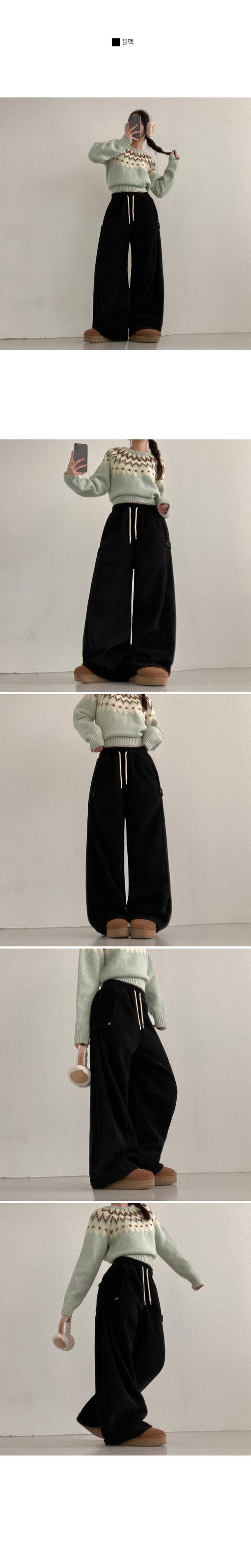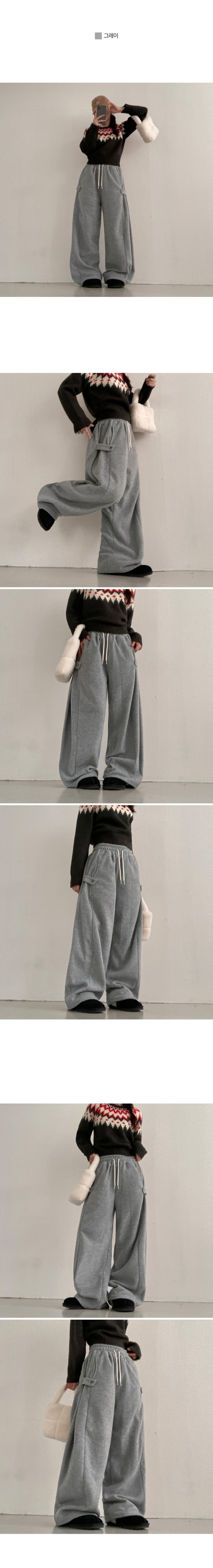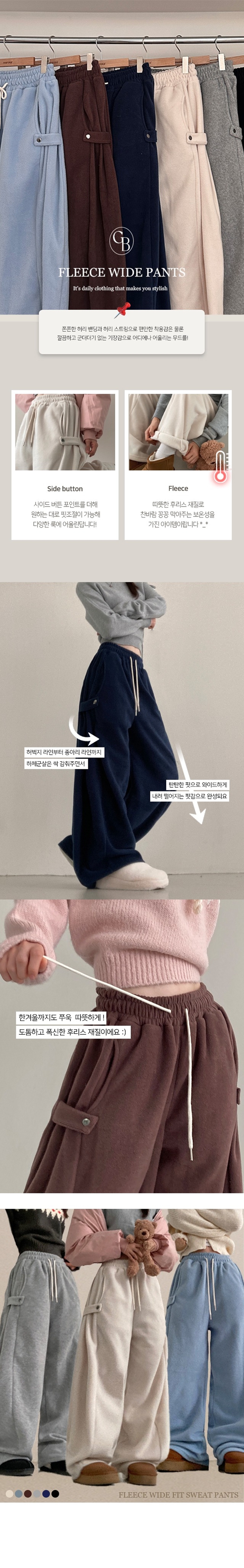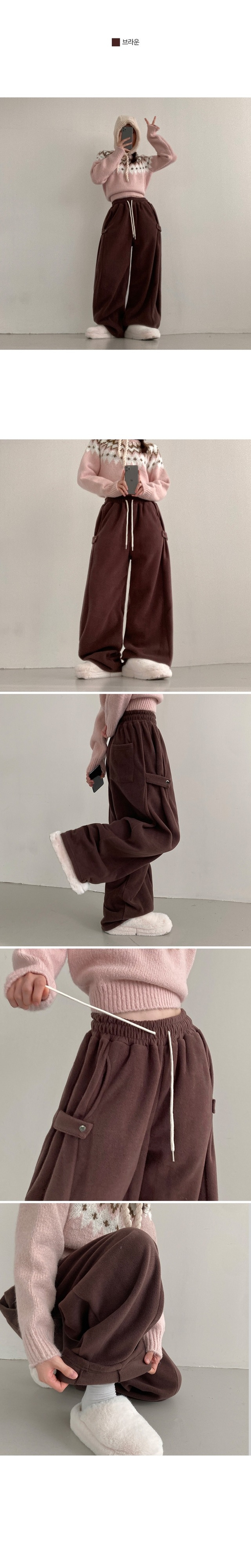 STR4293 헬리 폭닥 후리스 기모 사이드스냅 비죠 버튼 와이드 트레이닝 팬츠
