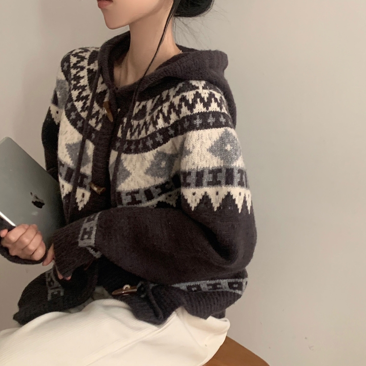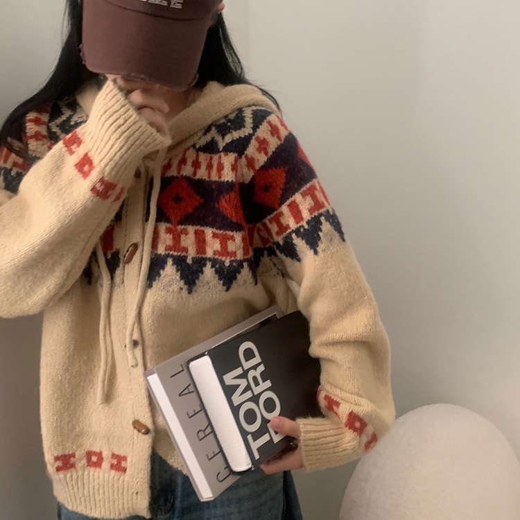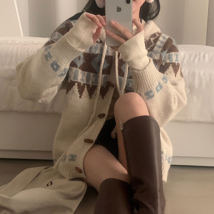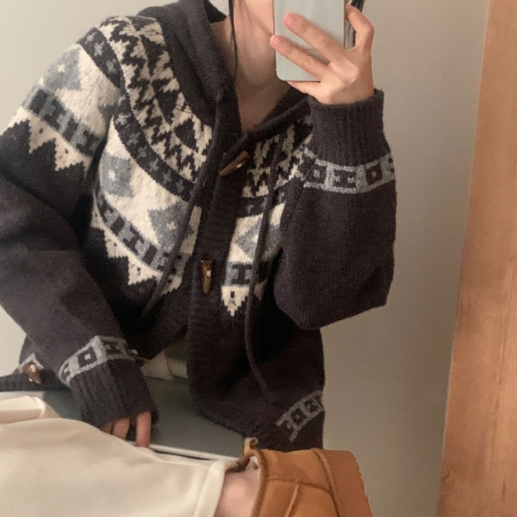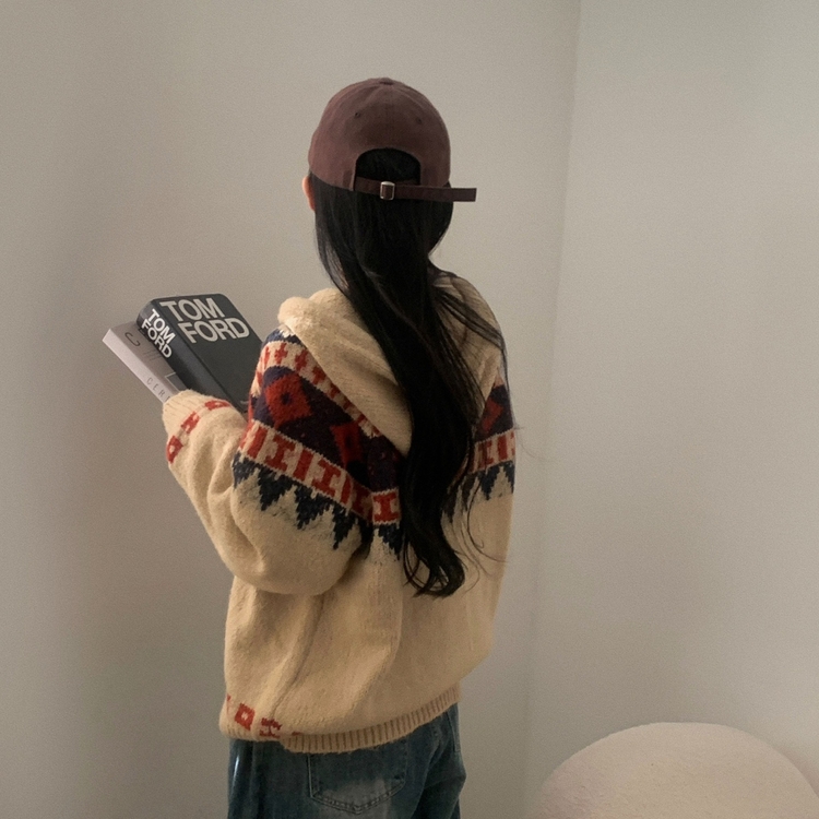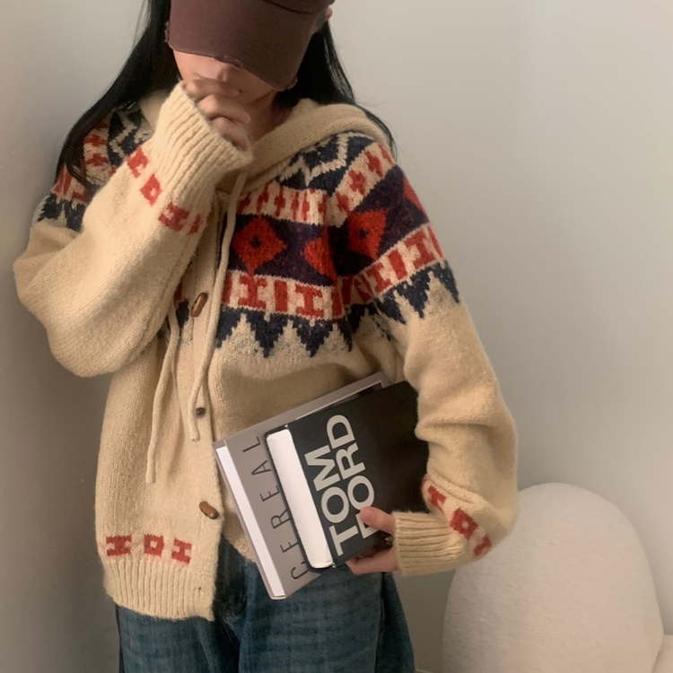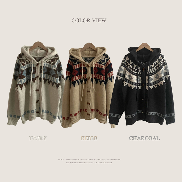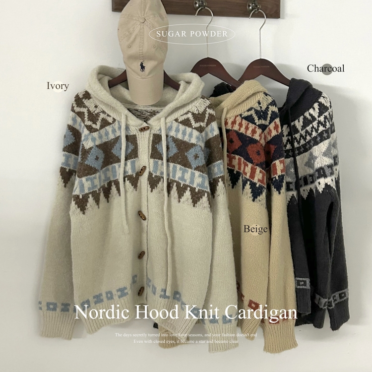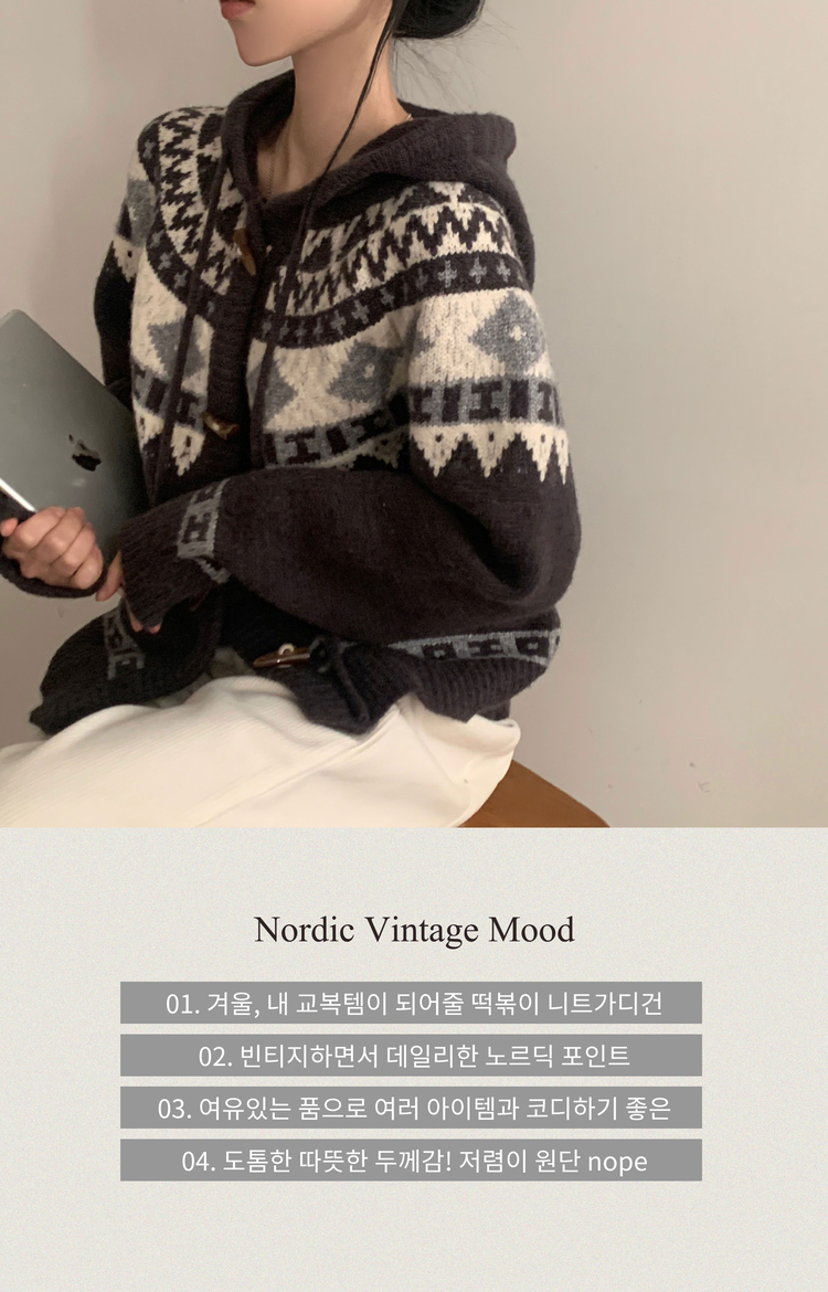 SGD24438 뉴픽 노르딕 떡볶이 자가드 후드 니트 가디건 3color