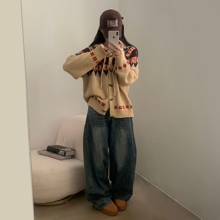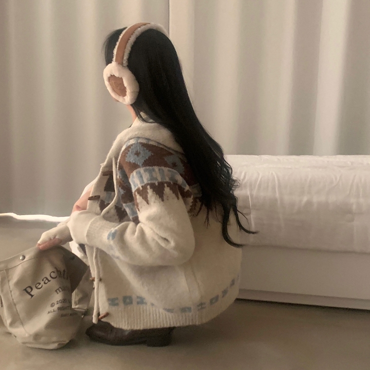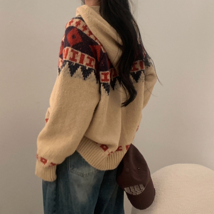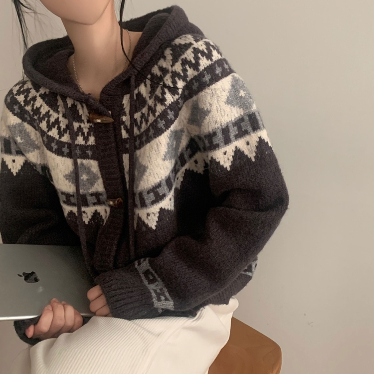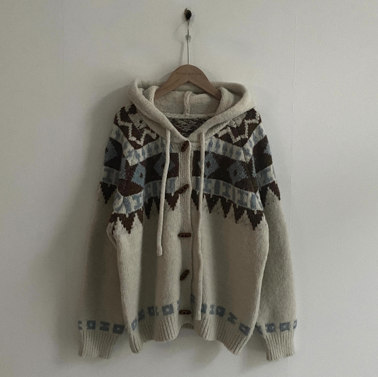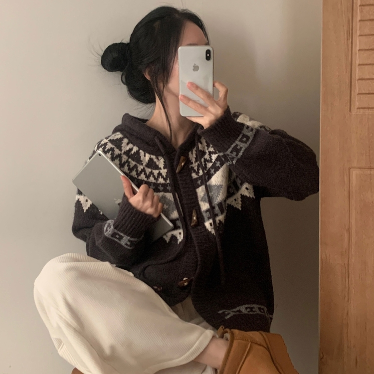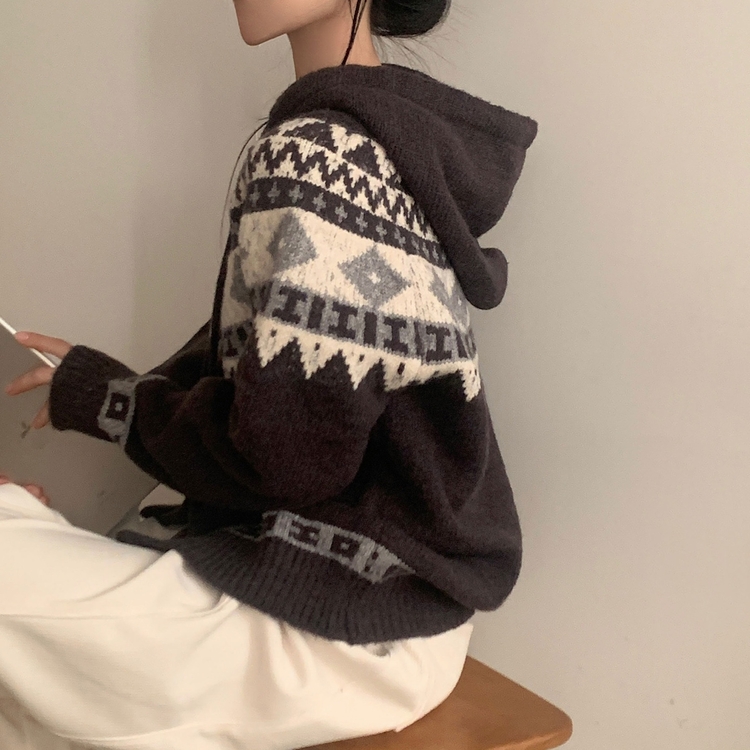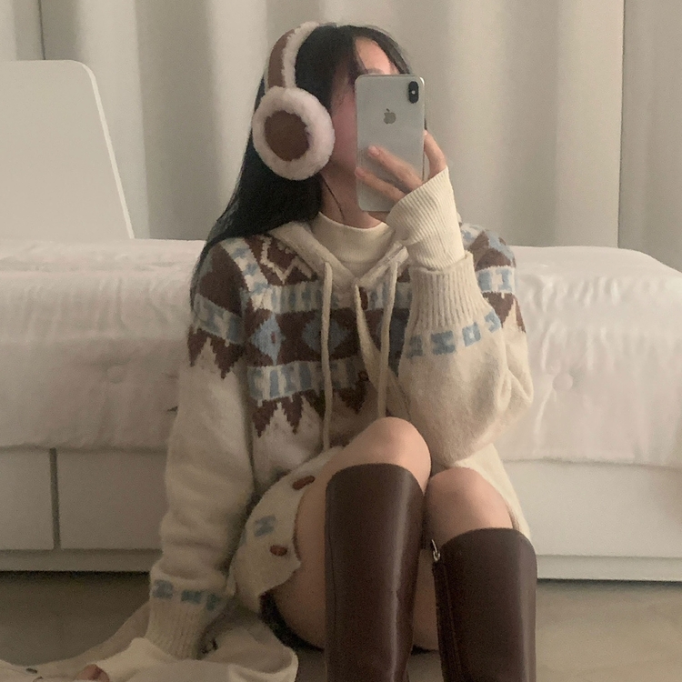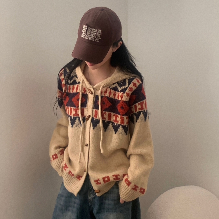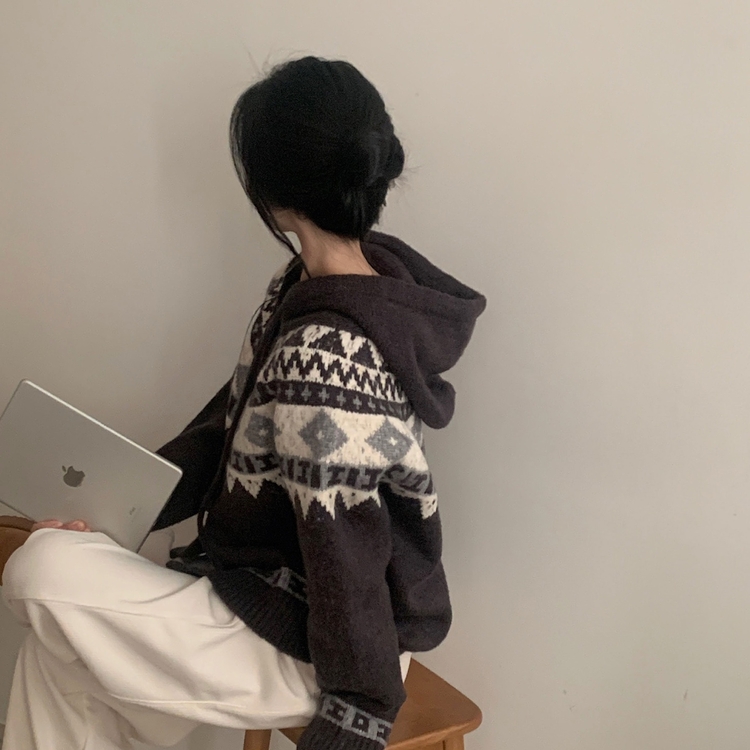 SGD24438 뉴픽 노르딕 떡볶이 자가드 후드 니트 가디건 3color