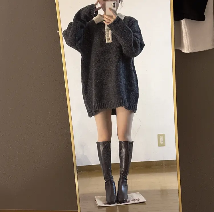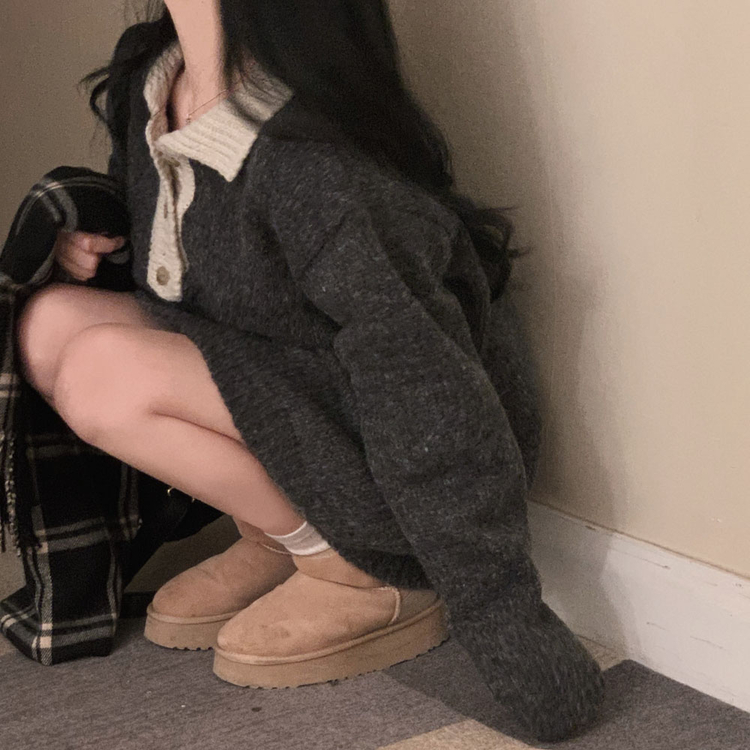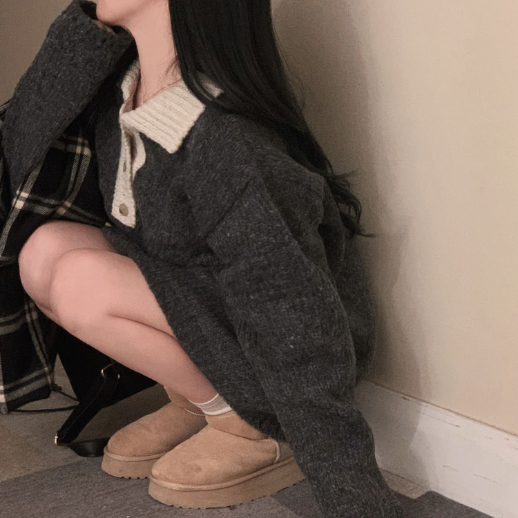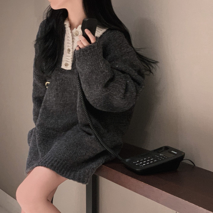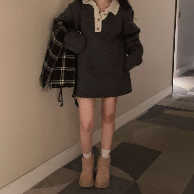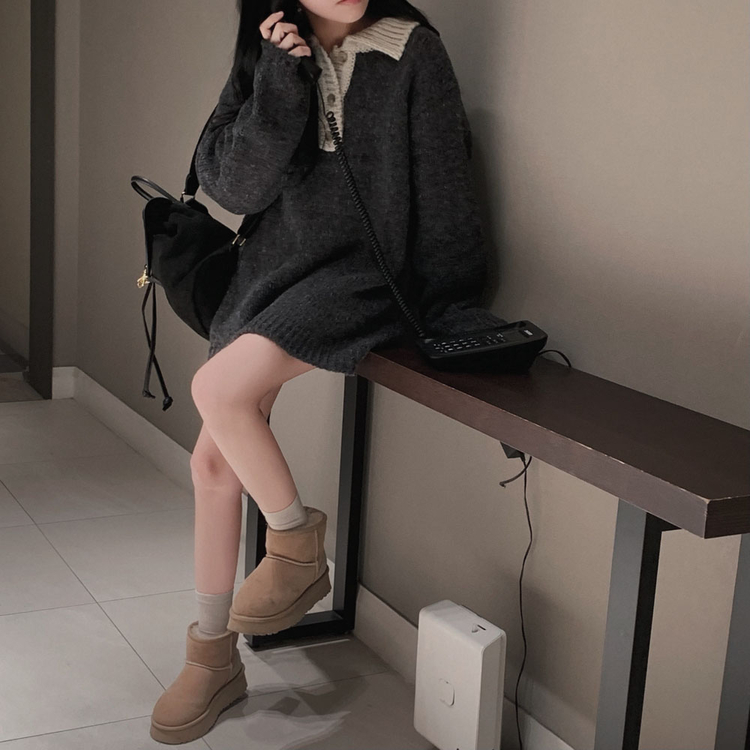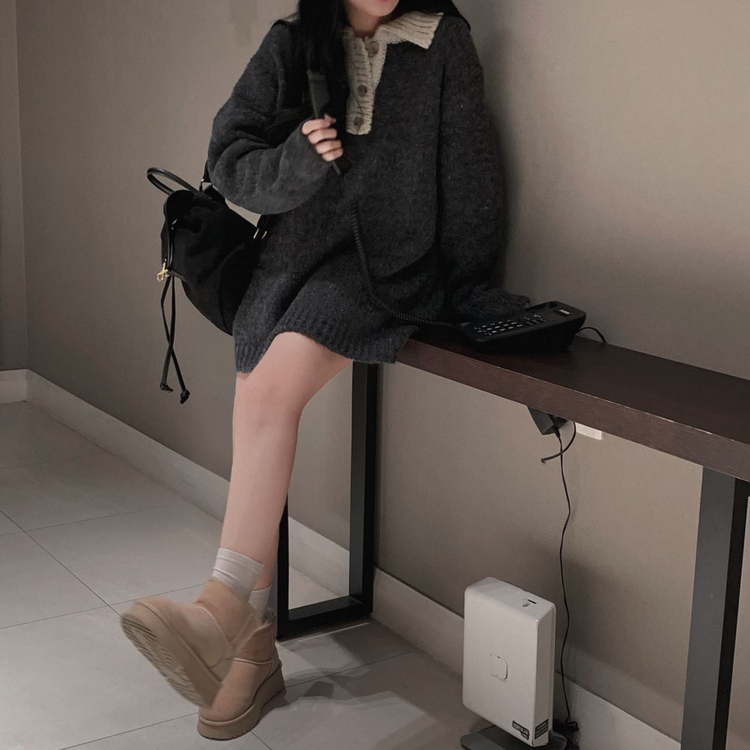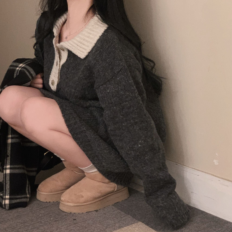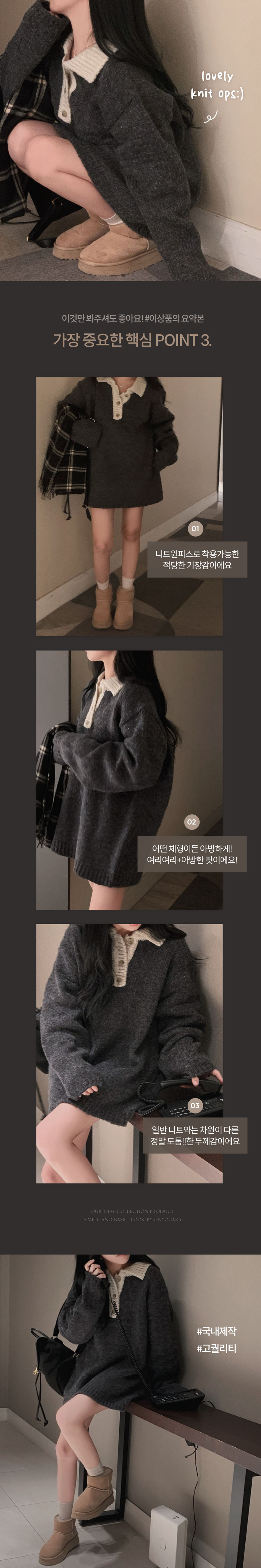 SOP26833 크리미 배색 카라 도톰 아방핏 고퀄리티 니트 원피스