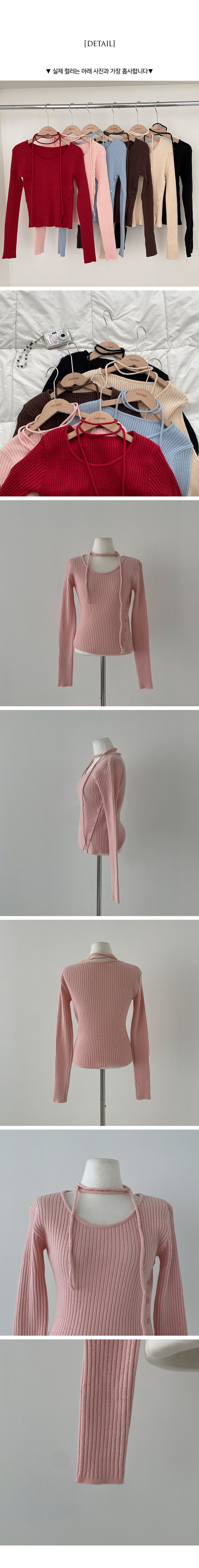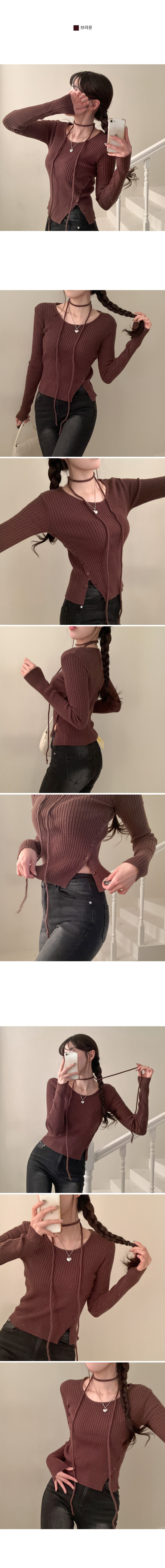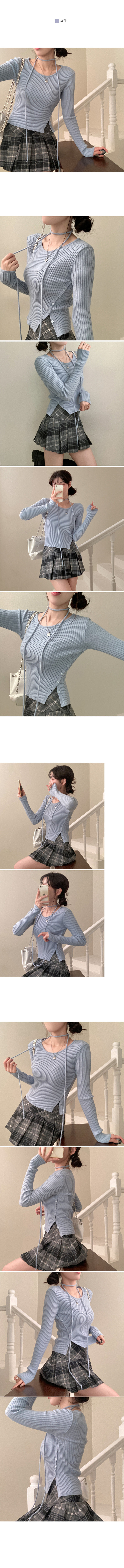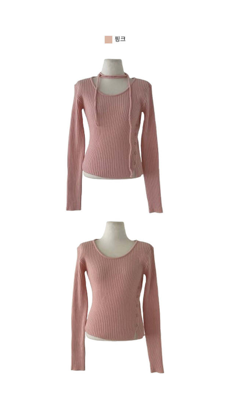 SNT27932 웨스턴 유넥 사선 버튼 트임 골지 초커 세트 니트