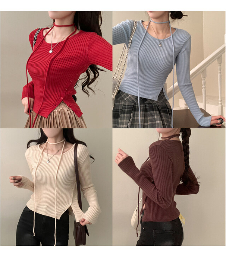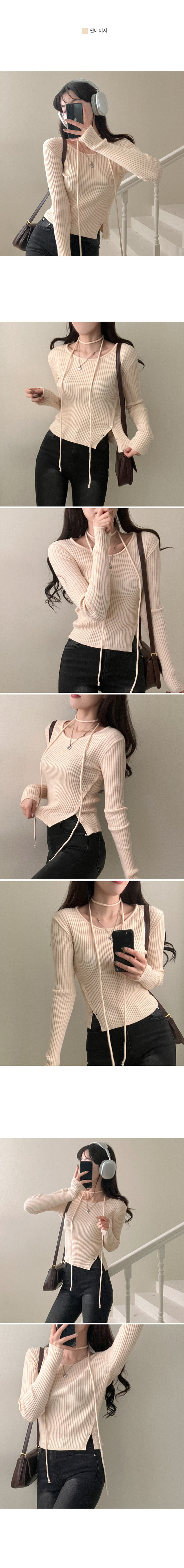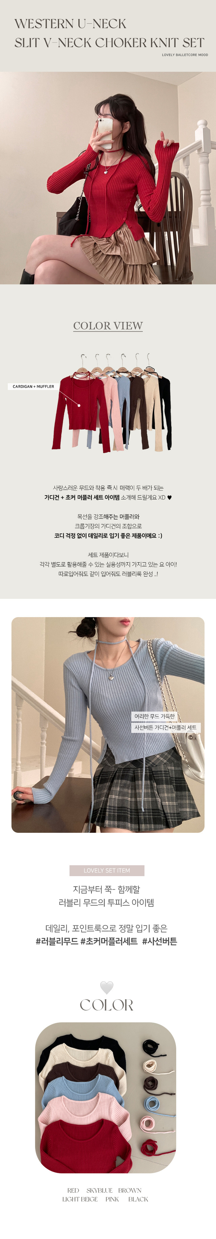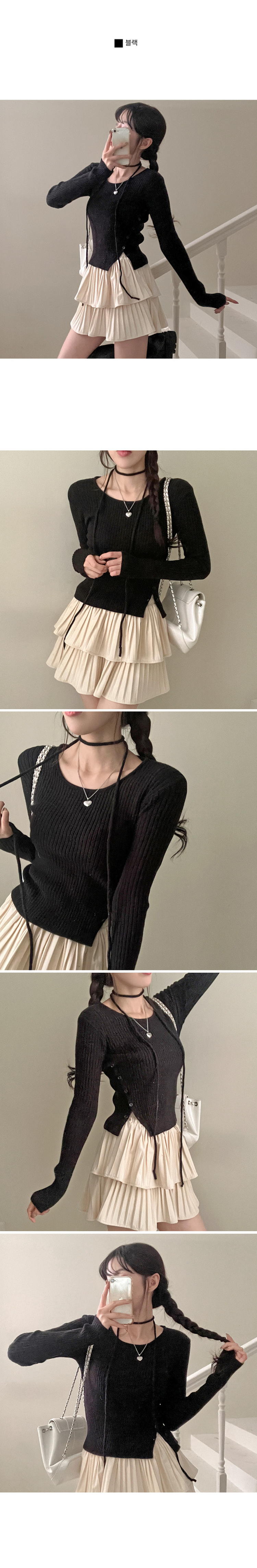 SNT27932 웨스턴 유넥 사선 버튼 트임 골지 초커 세트 니트