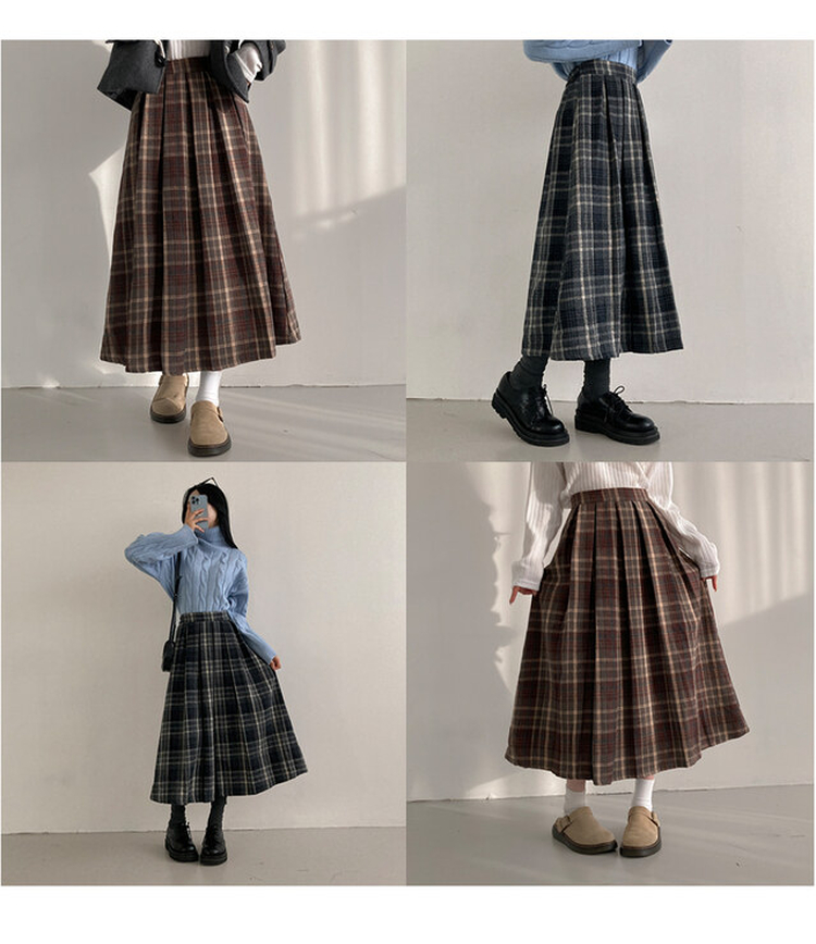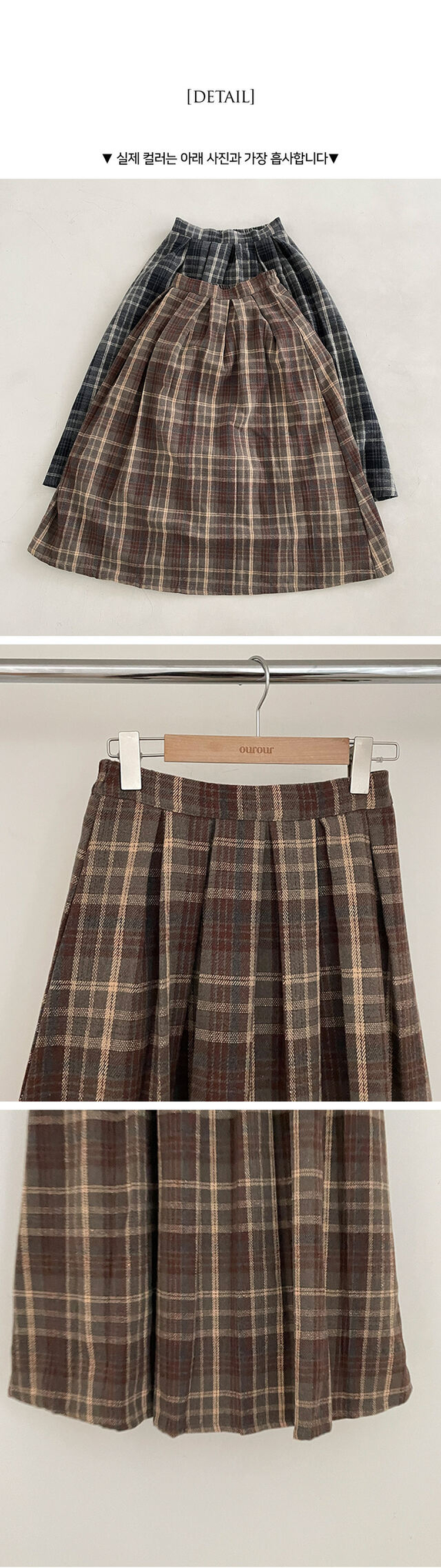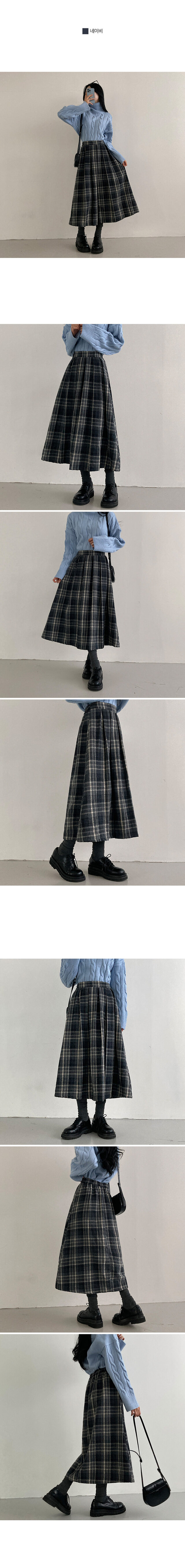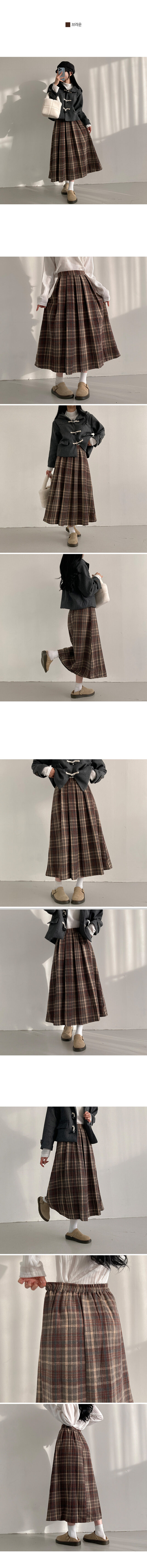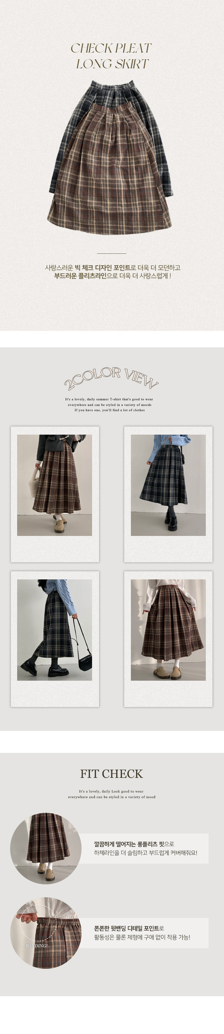 SSK20486 모아 도톰 뒷밴딩 체크 플리츠 롱 스커트