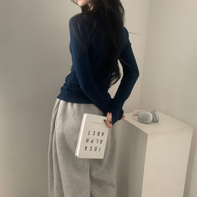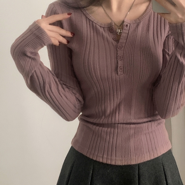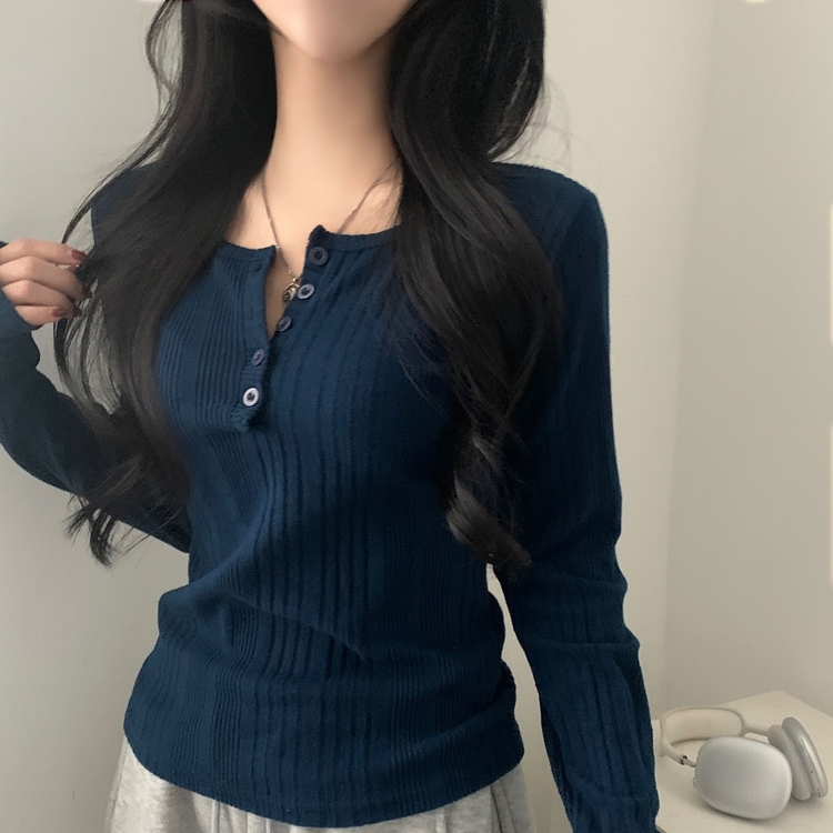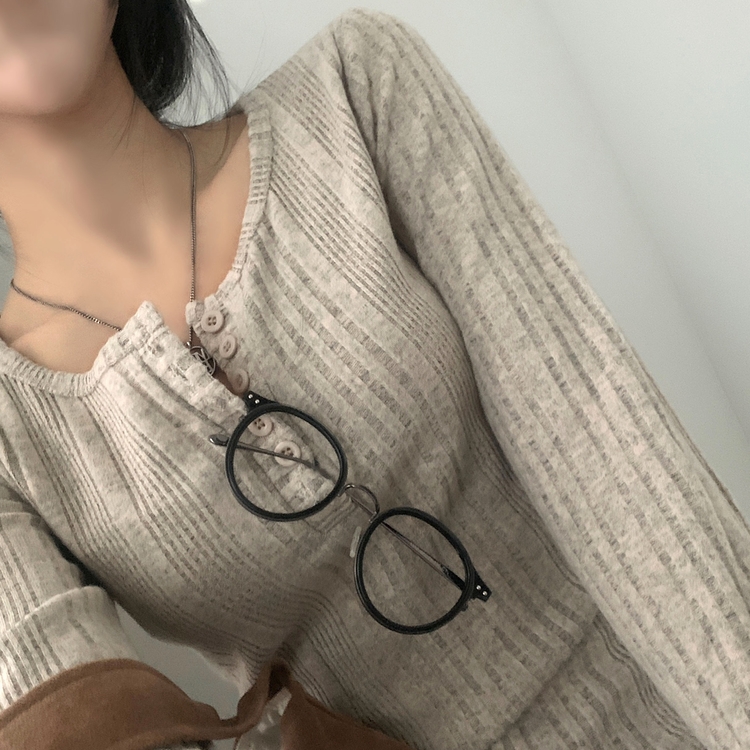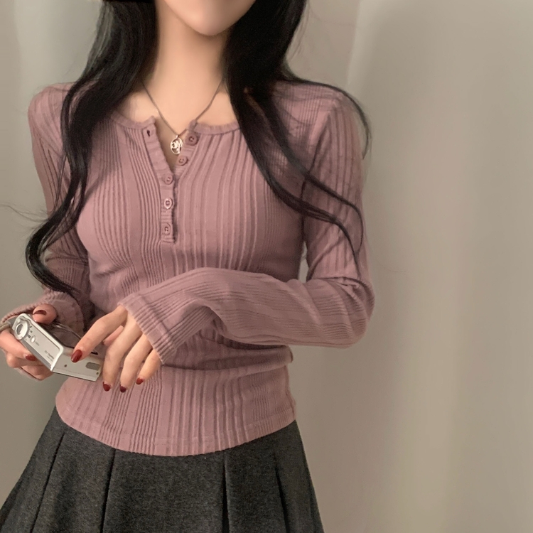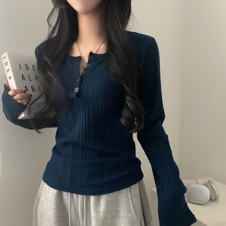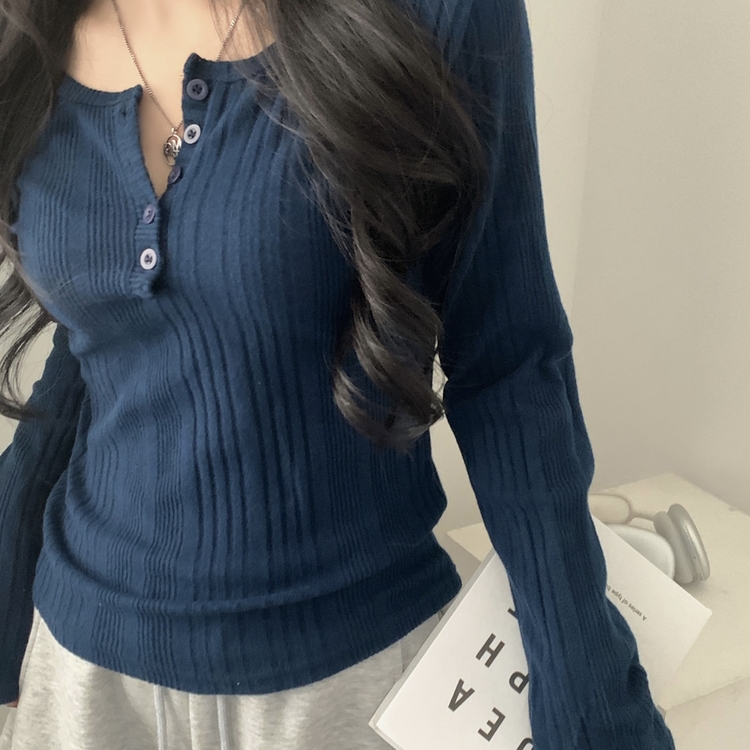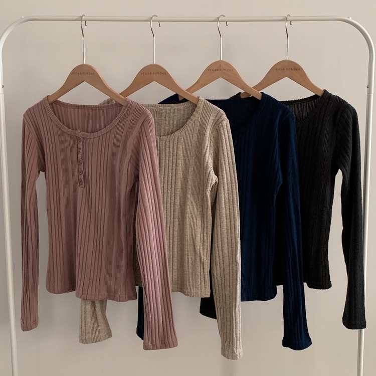 SNT28018 이너블 골지버튼 여리핏 긴팔니트 티셔츠 4color