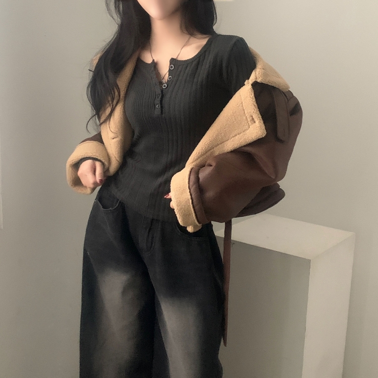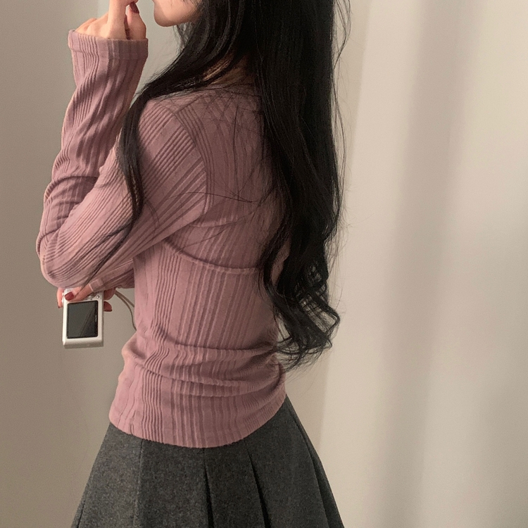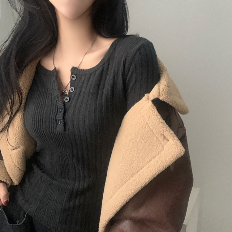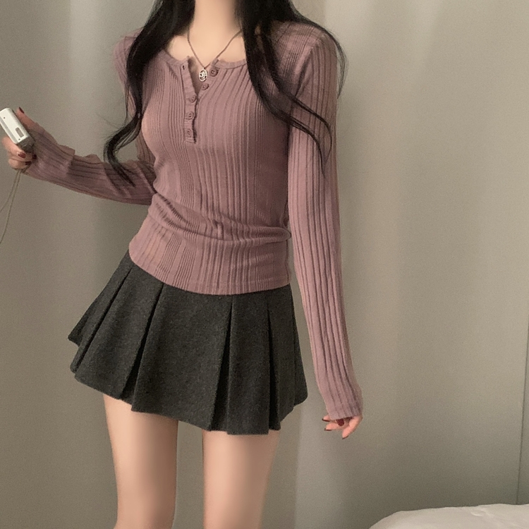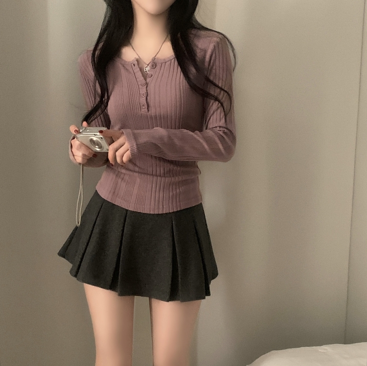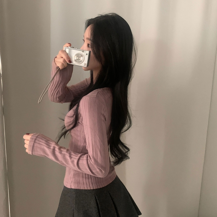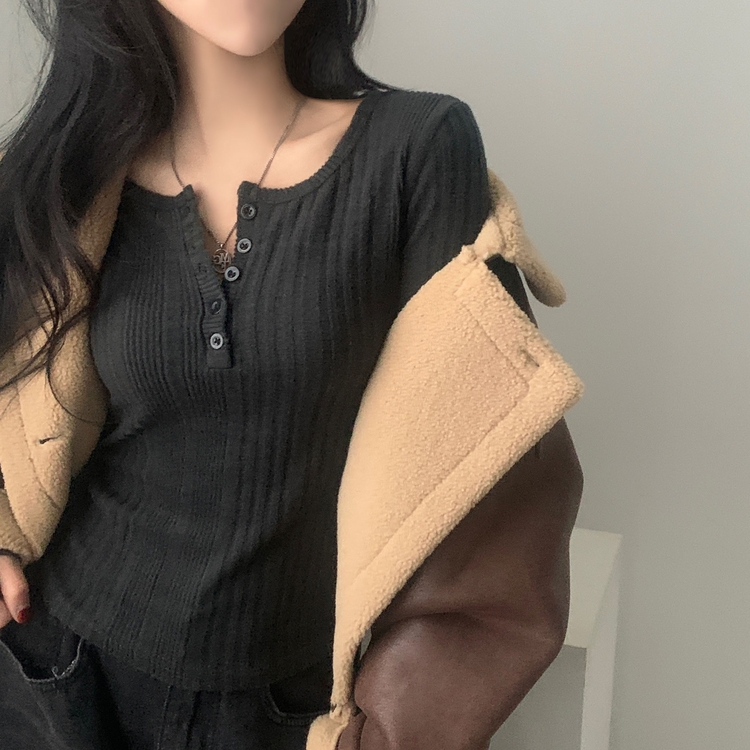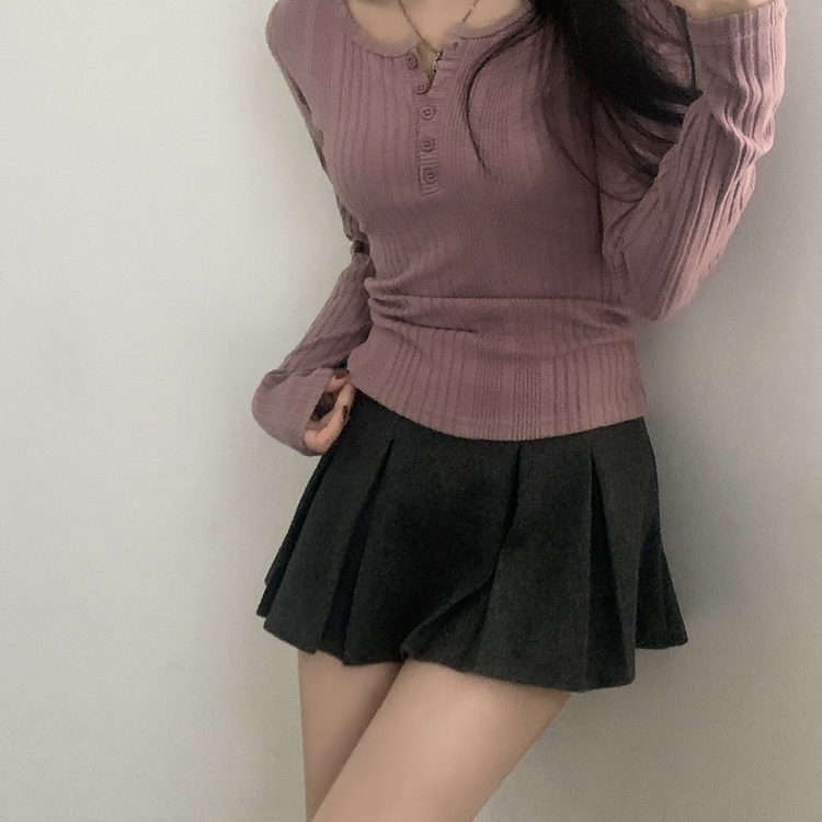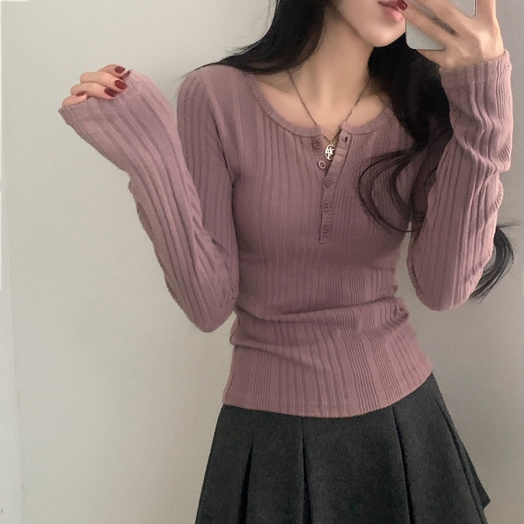 SNT28018 이너블 골지버튼 여리핏 긴팔니트 티셔츠 4color