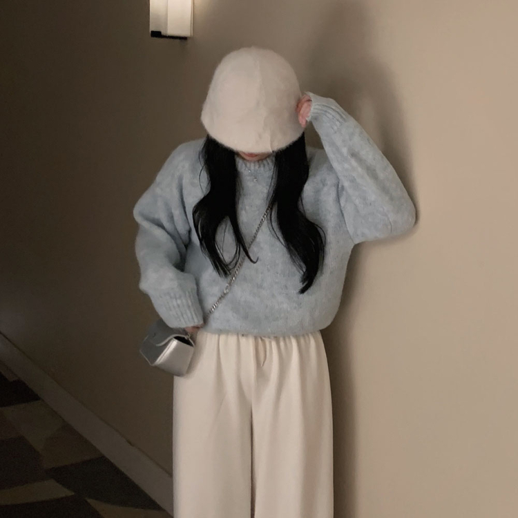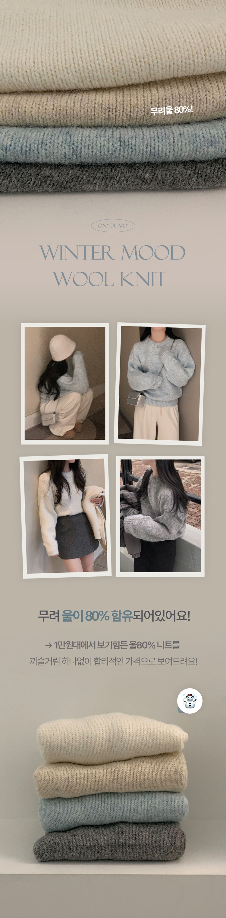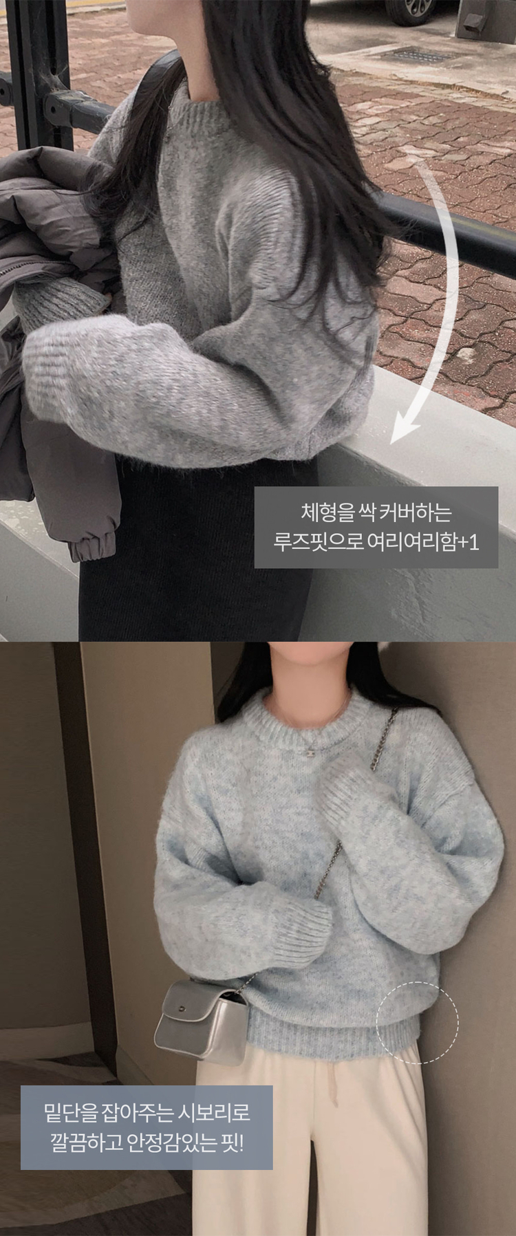 SNT28080 파스텔 울 헤어리 포근 라운드 루즈핏 니트