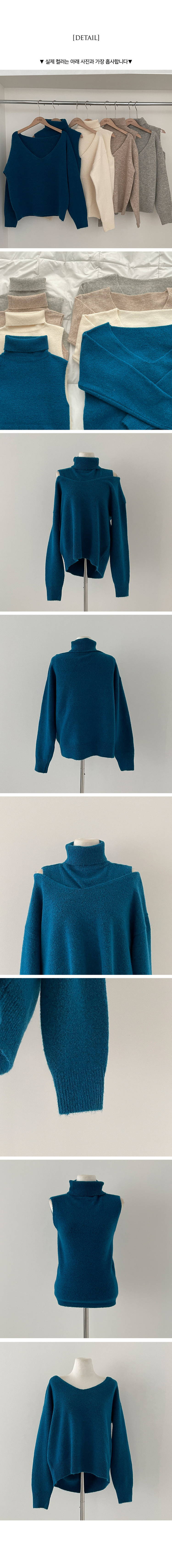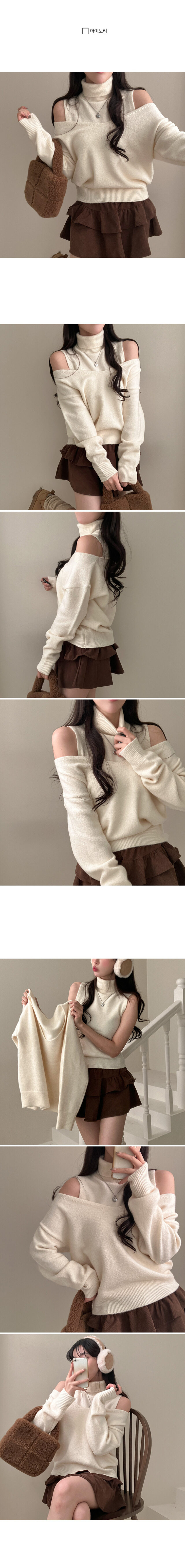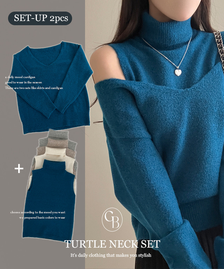 SNT28109 레빗 레이어드 폴라 브이넥 니트 투피스 세트