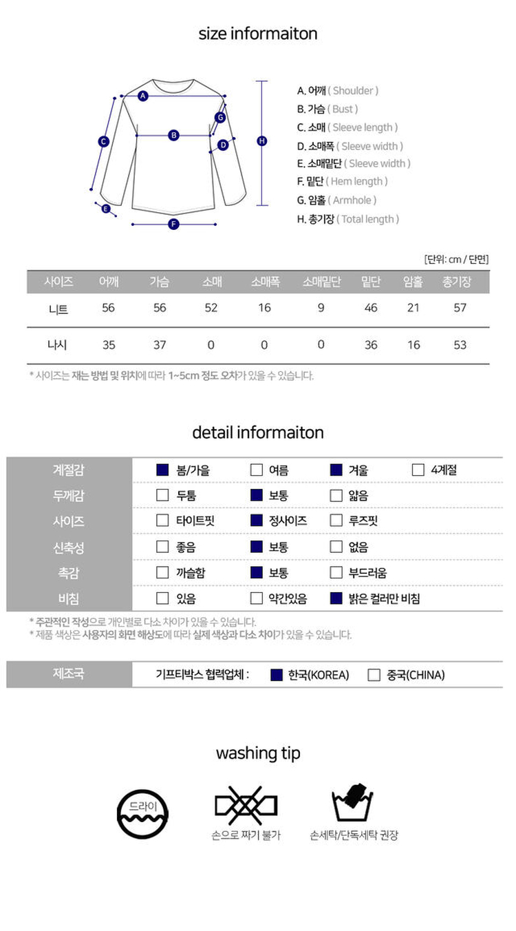 | 素材 | 아크릴(%), 폴리(%), 스판(-%) |