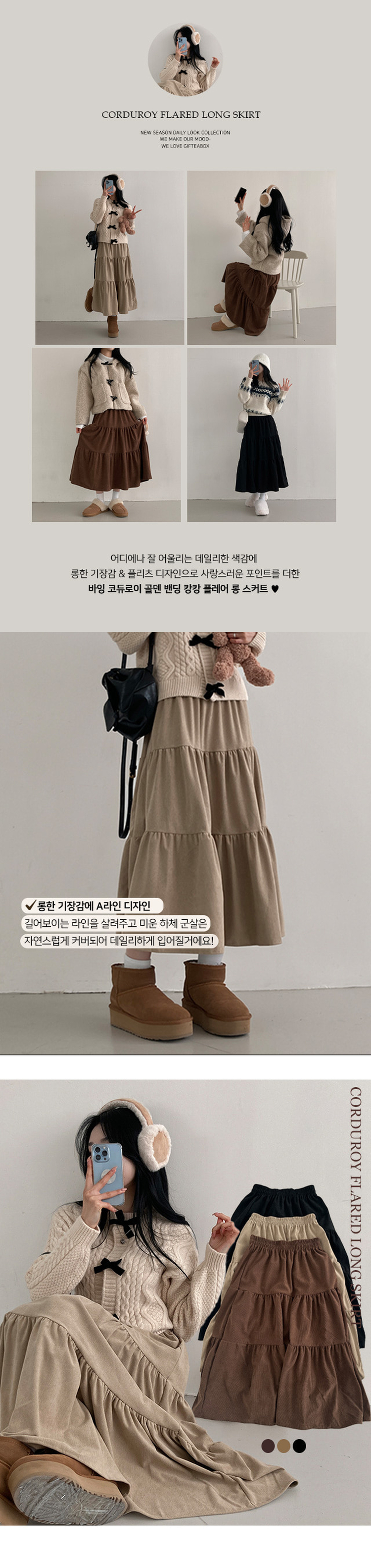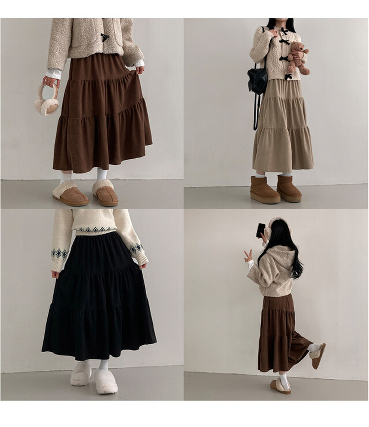 SSK20553 바잉 코듀로이 골덴 밴딩 캉캉 플레어 롱 스커트