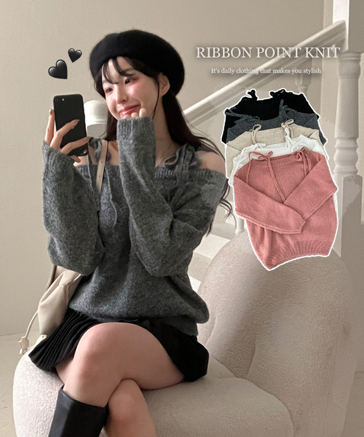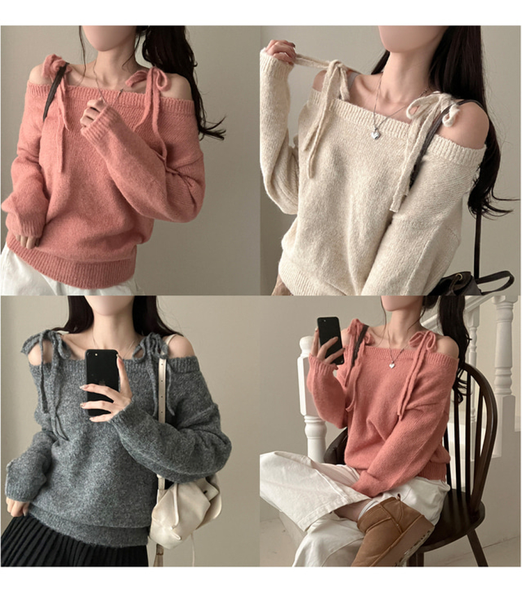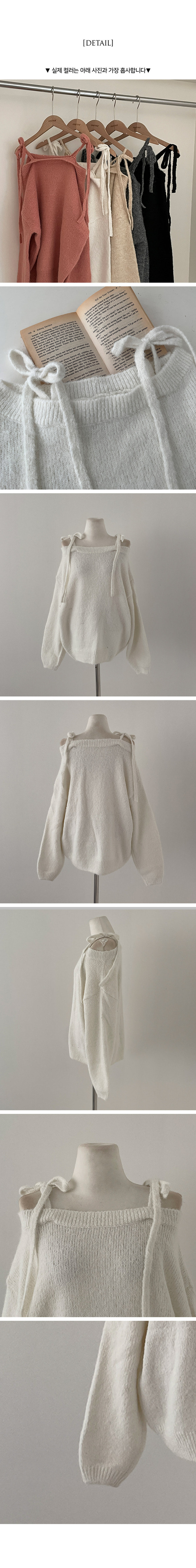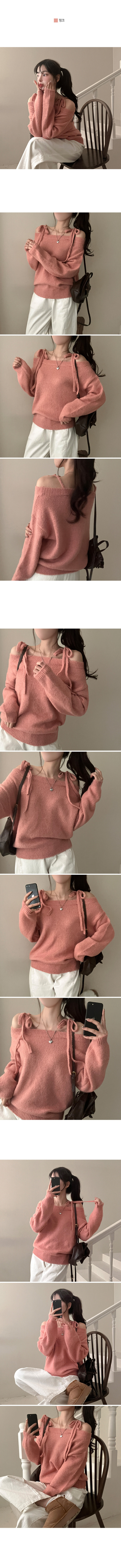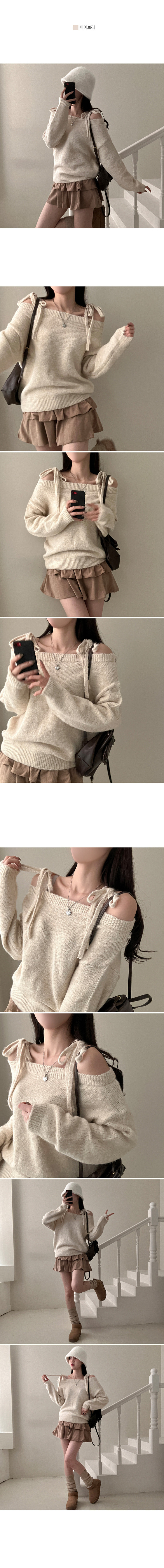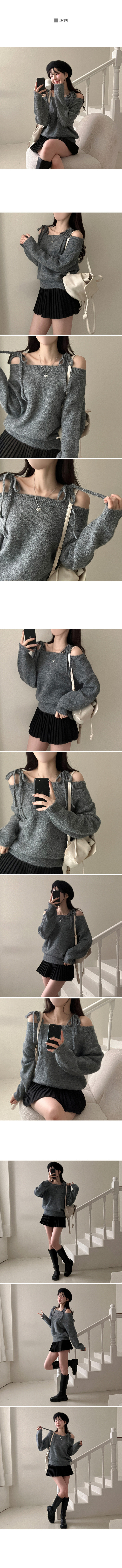 SNT28726 시아 리본 스트링 울 오프숄더 니트