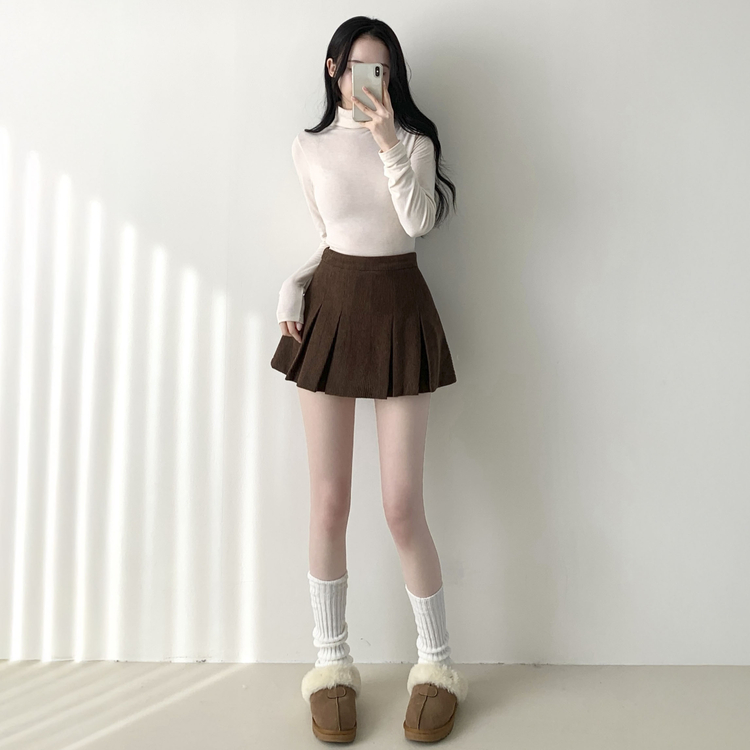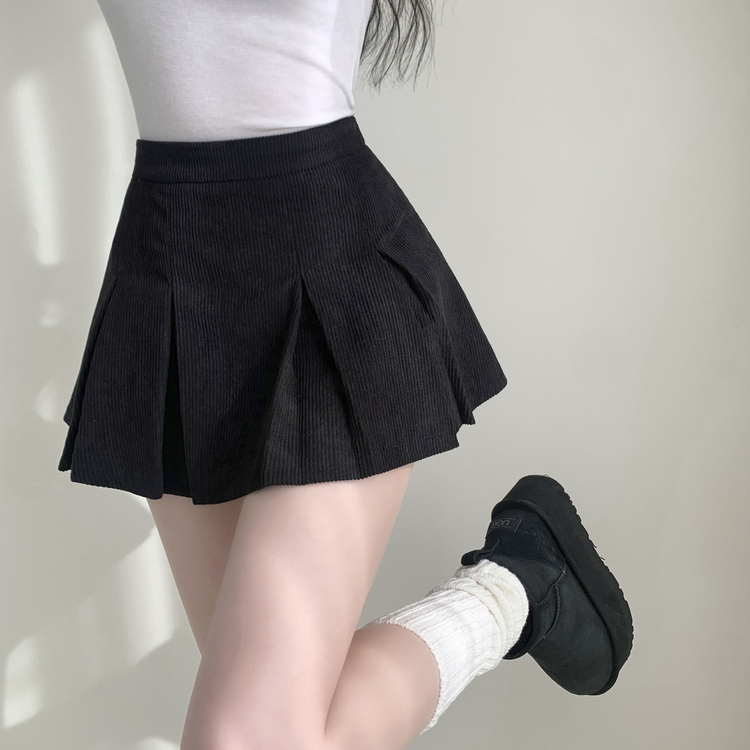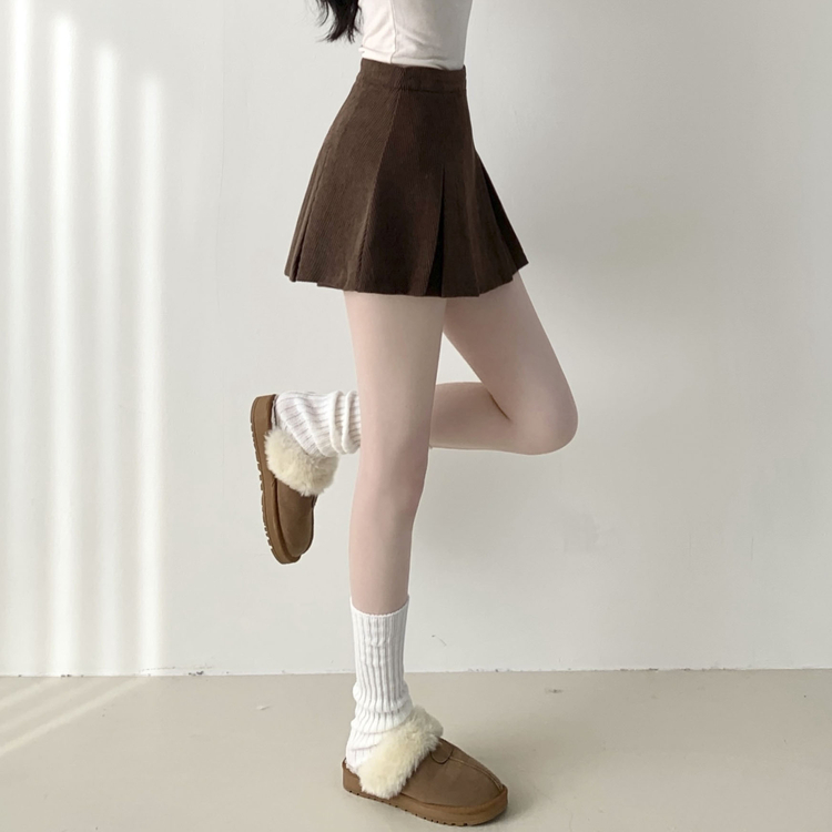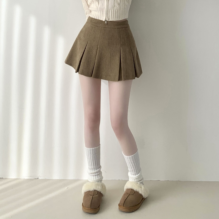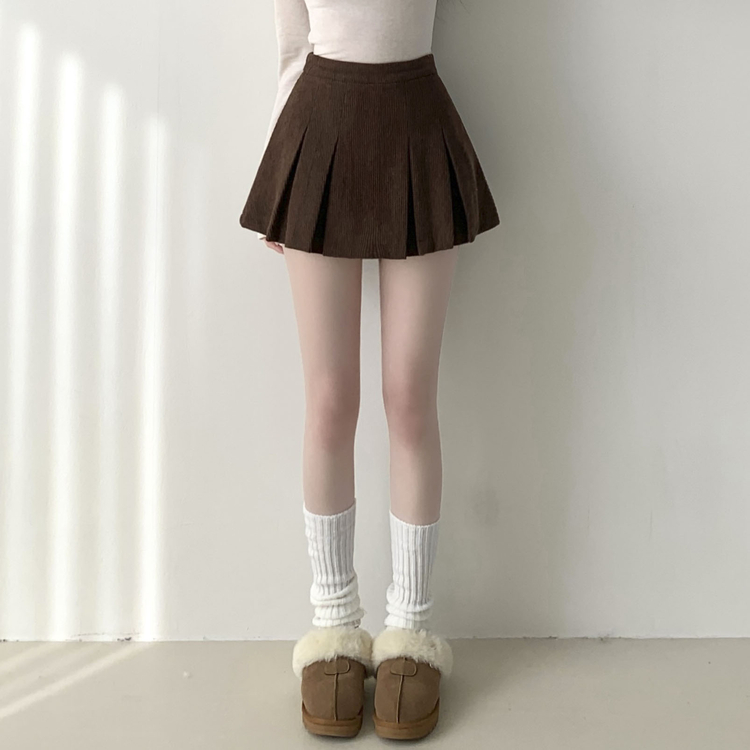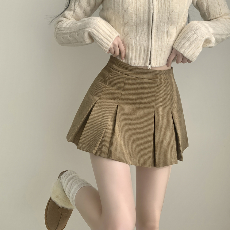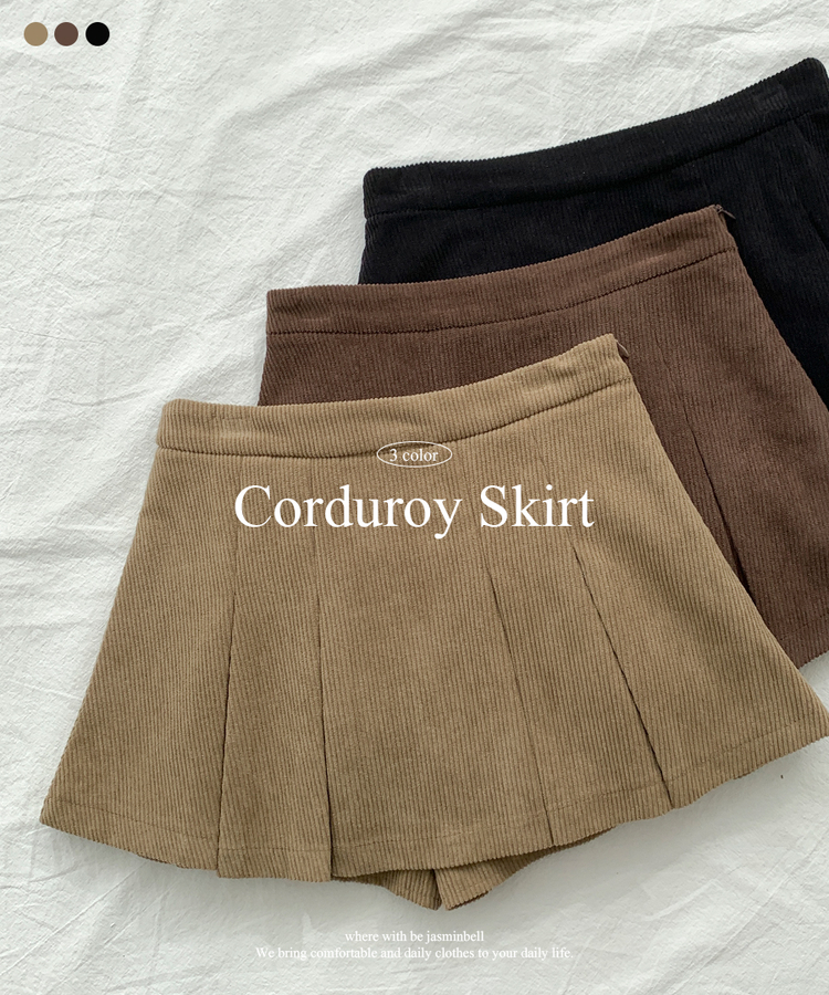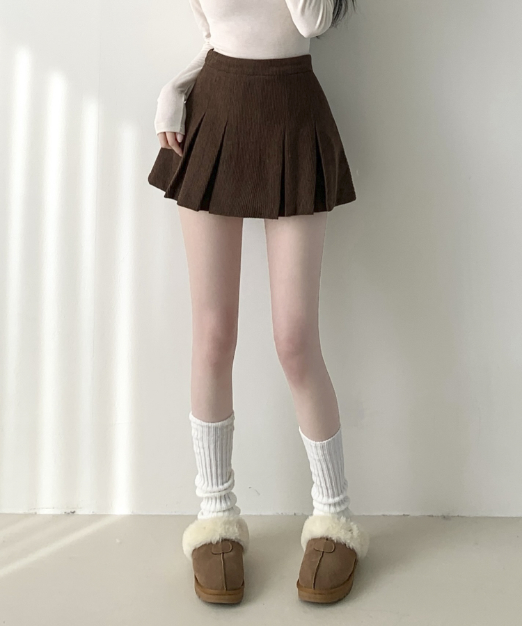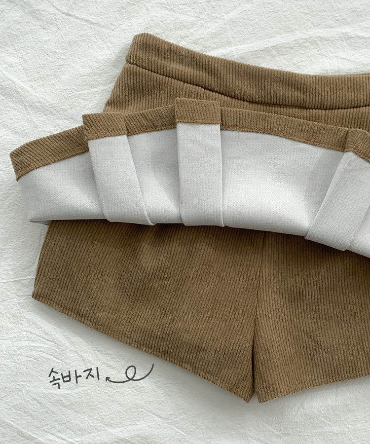 SSK20856 초콜릿 골덴 코듀로이 플리츠 A라인 미니 스커트 팬츠