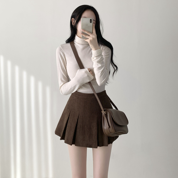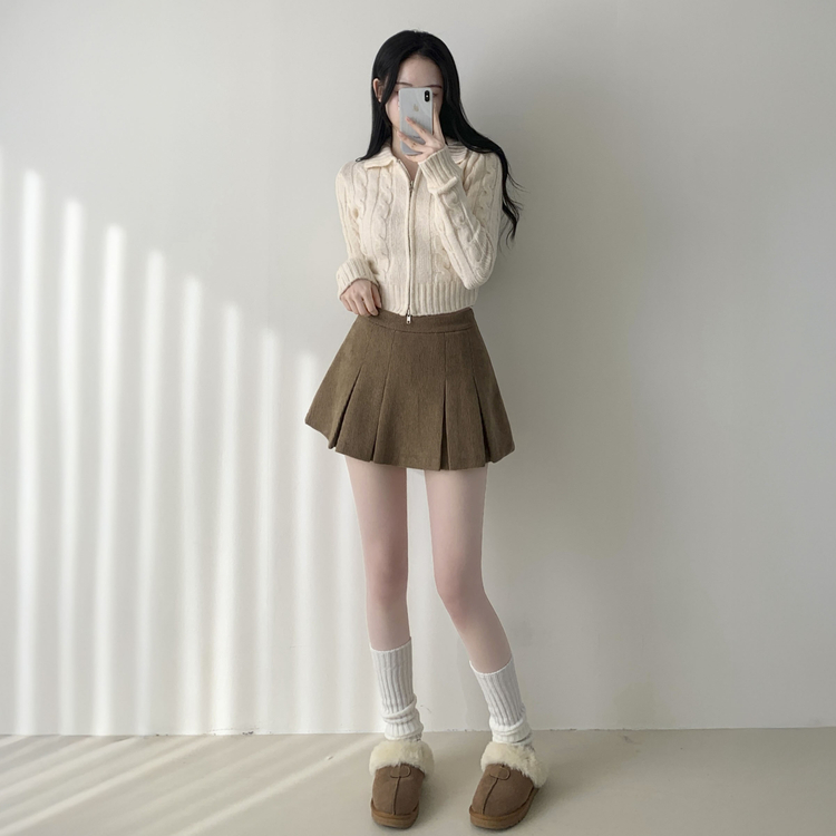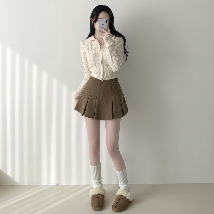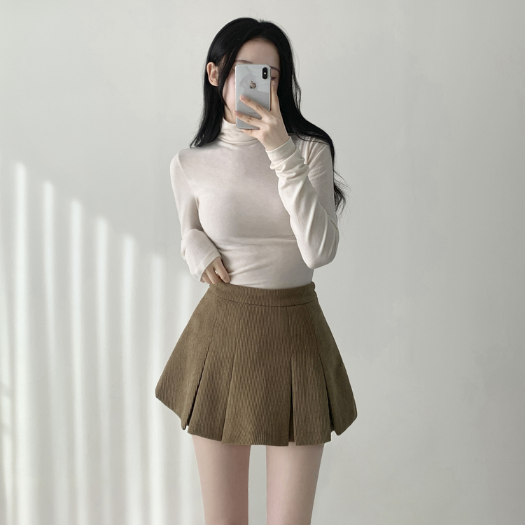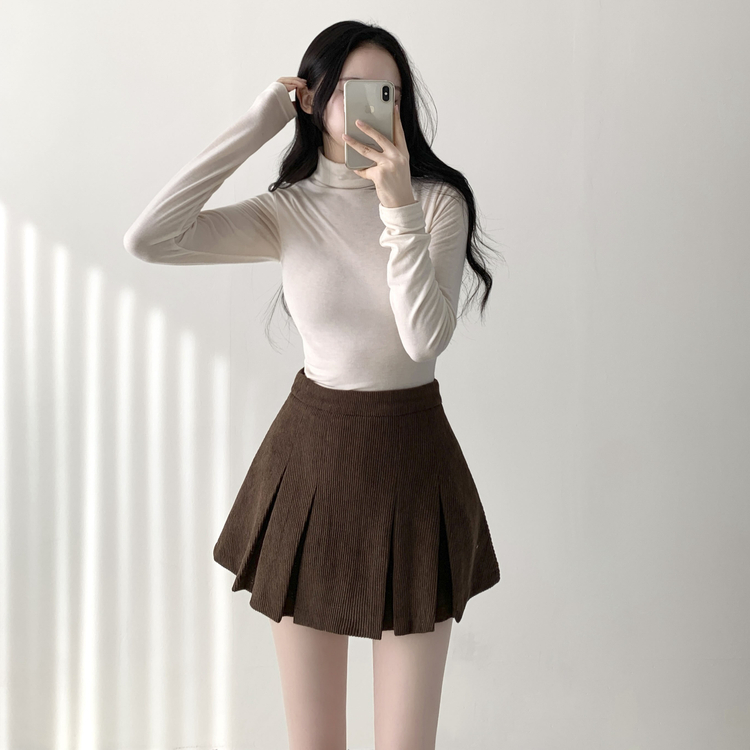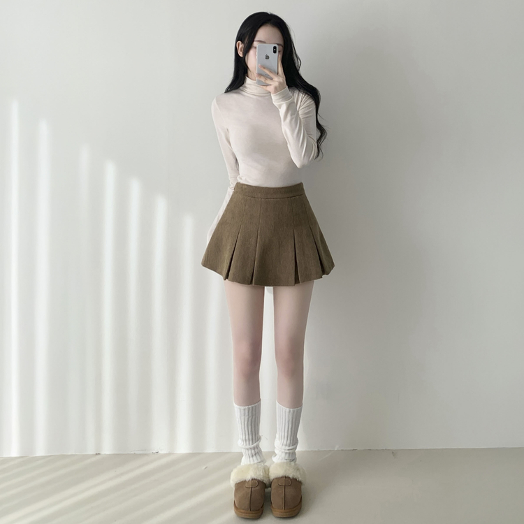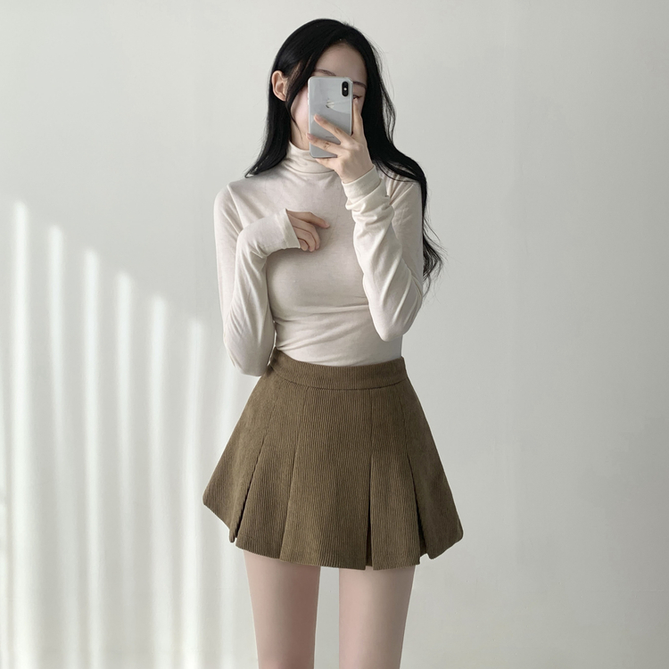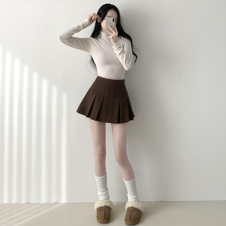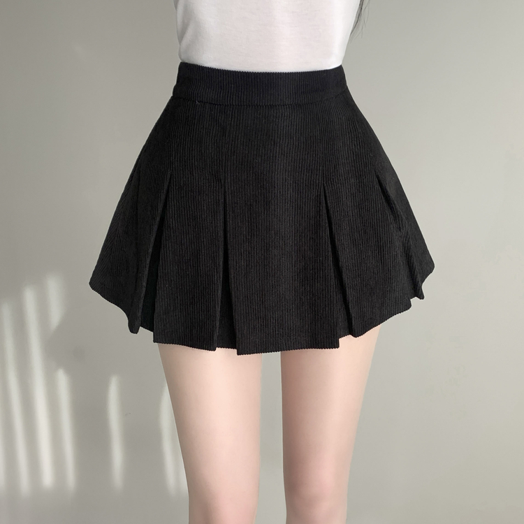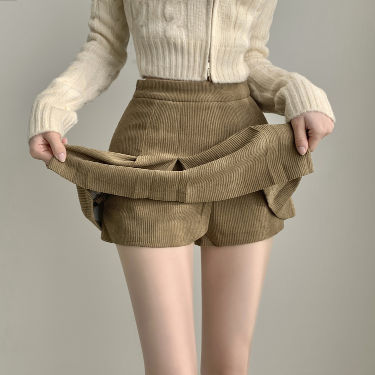 SSK20856 초콜릿 골덴 코듀로이 플리츠 A라인 미니 스커트 팬츠