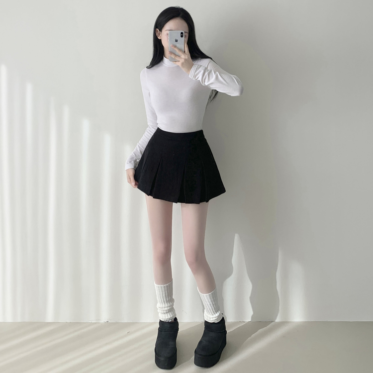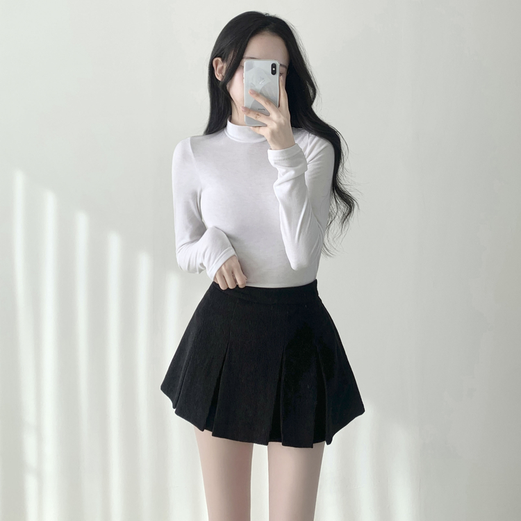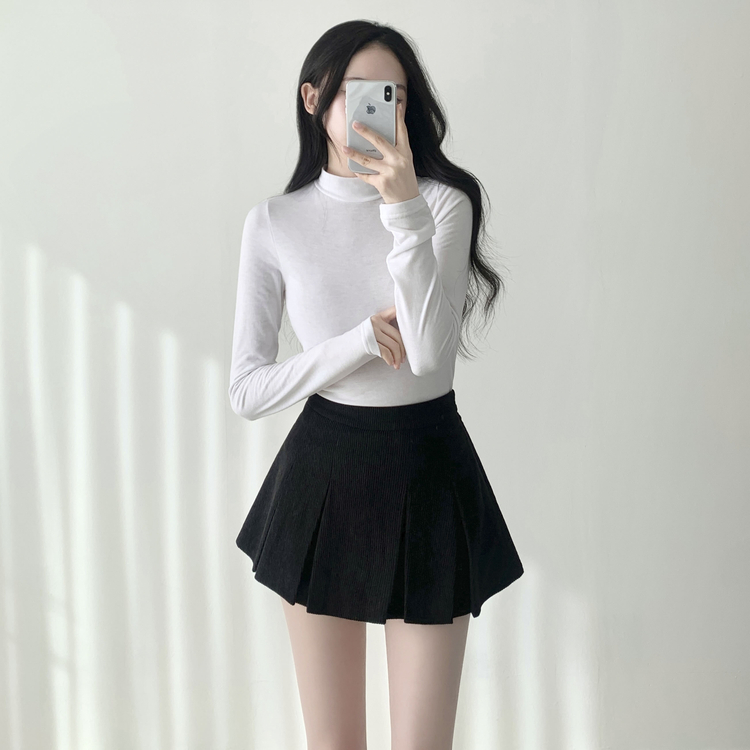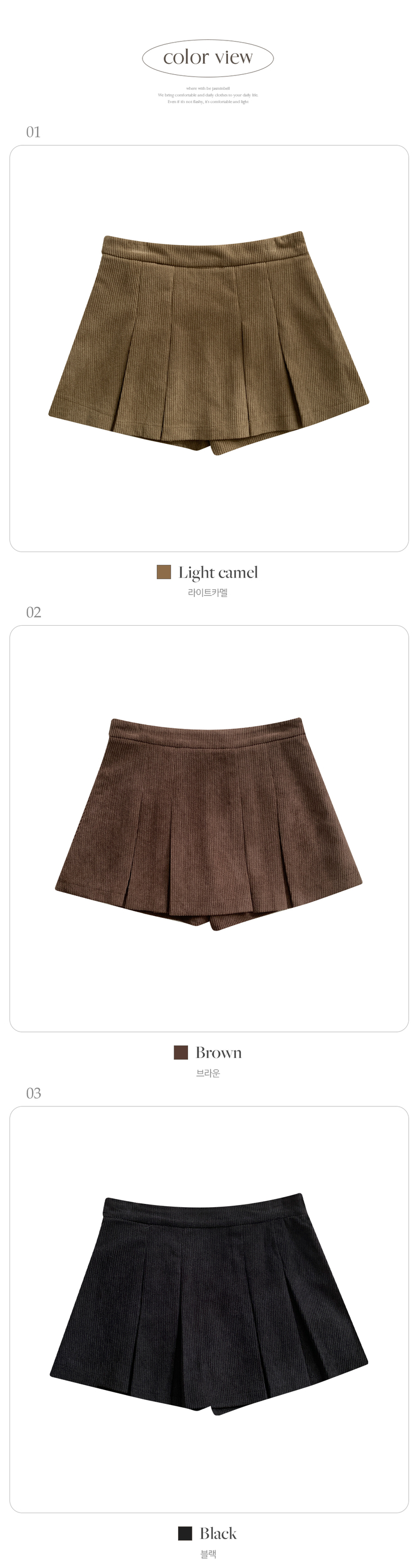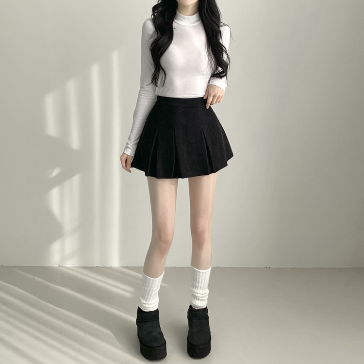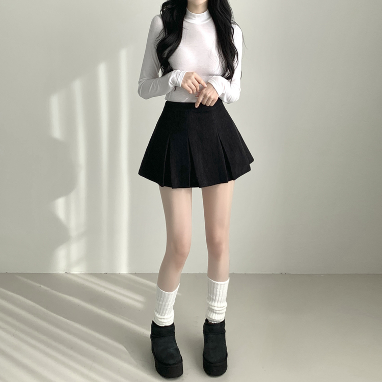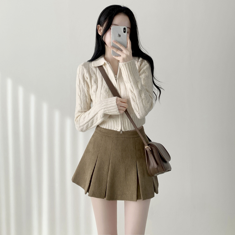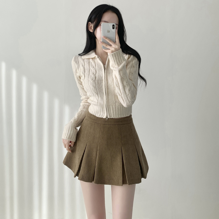 SSK20856 초콜릿 골덴 코듀로이 플리츠 A라인 미니 스커트 팬츠