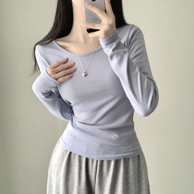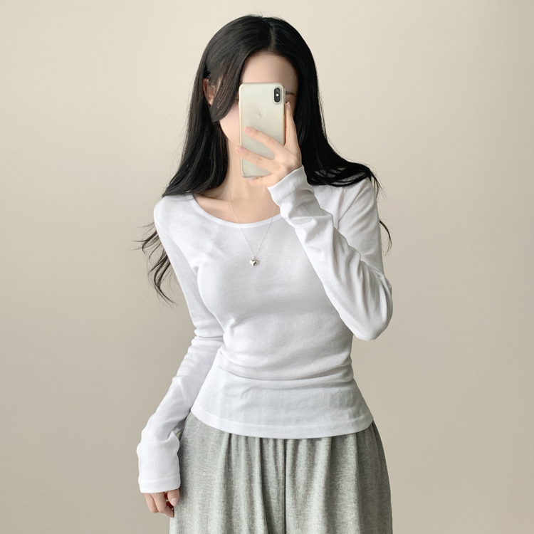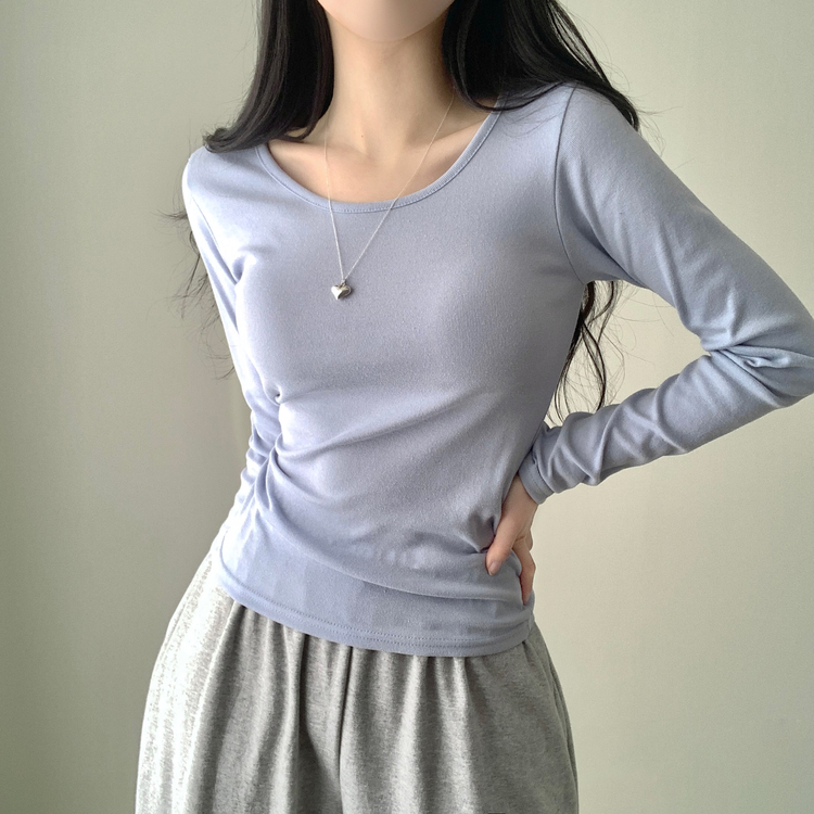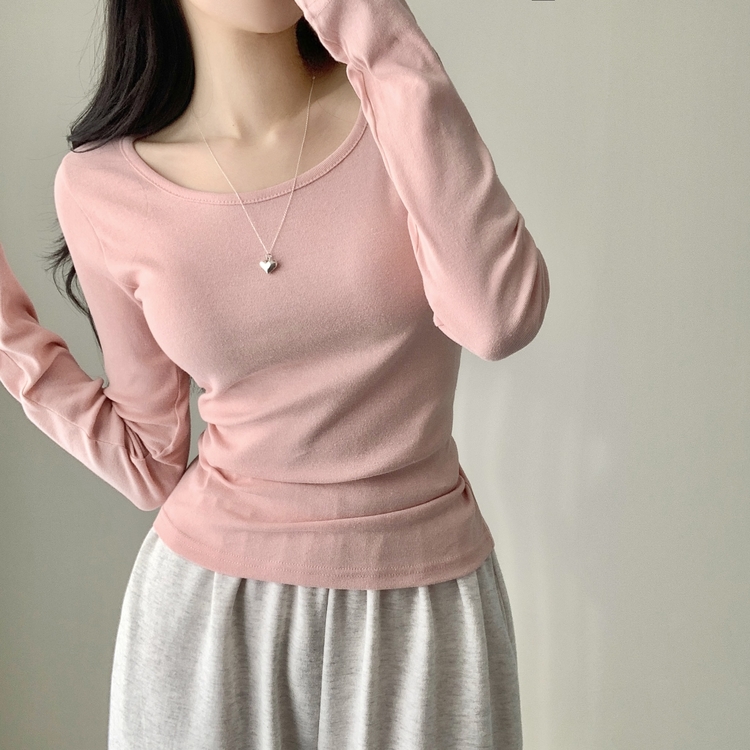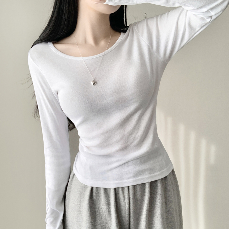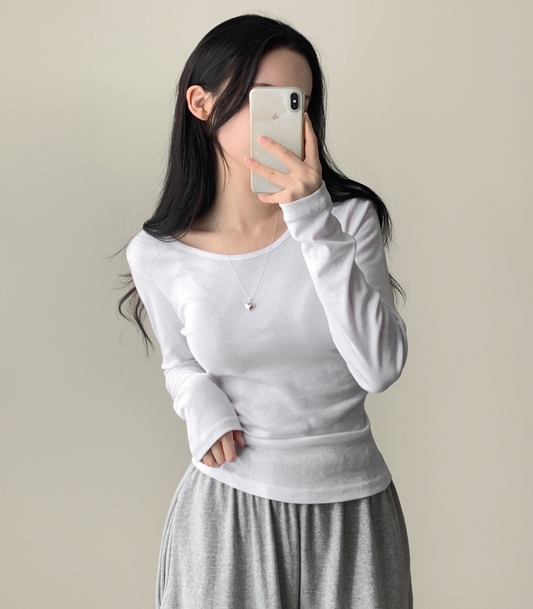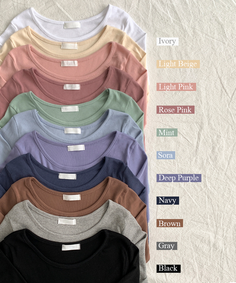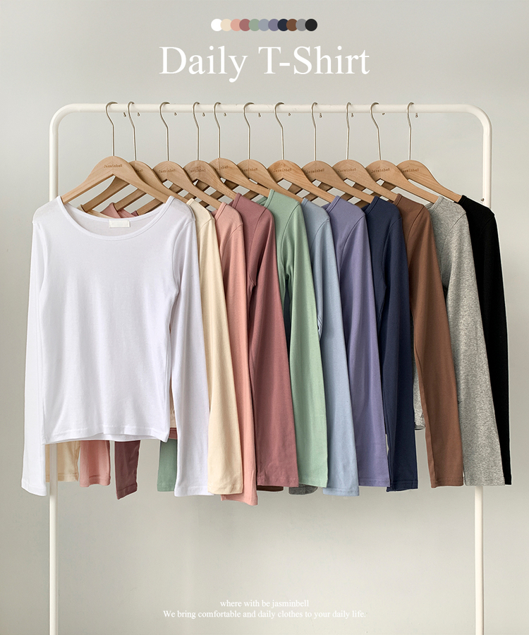 STS61515 쁘띠 쫀쫀 여리 슬림 라운드 세미 스탠다드 기본 베이직 데일리 무지 긴팔티 티셔츠 11color