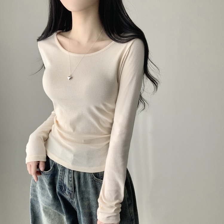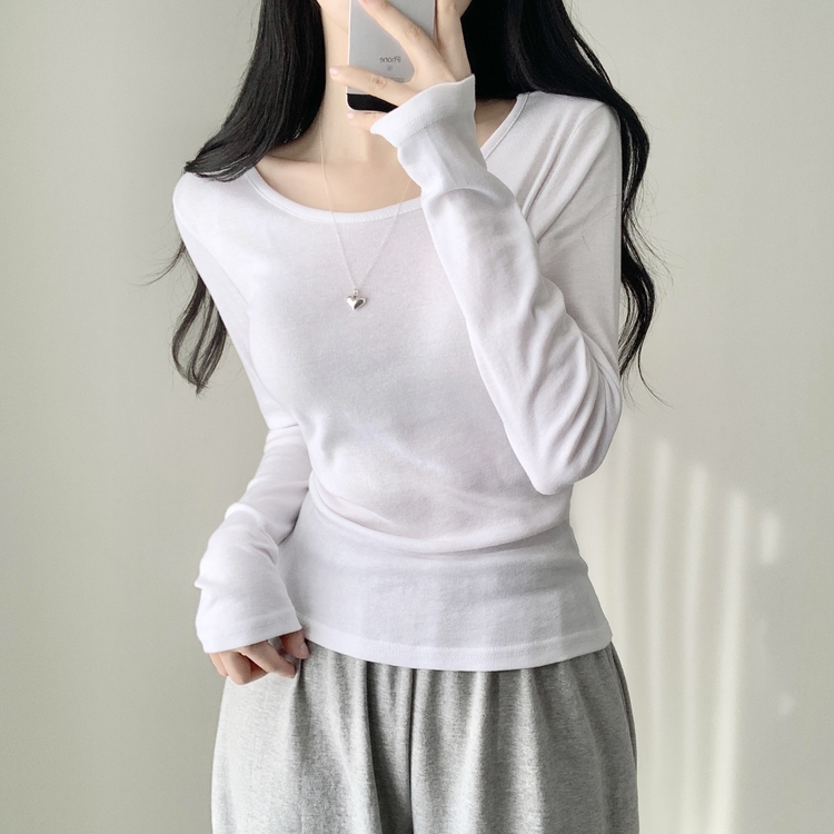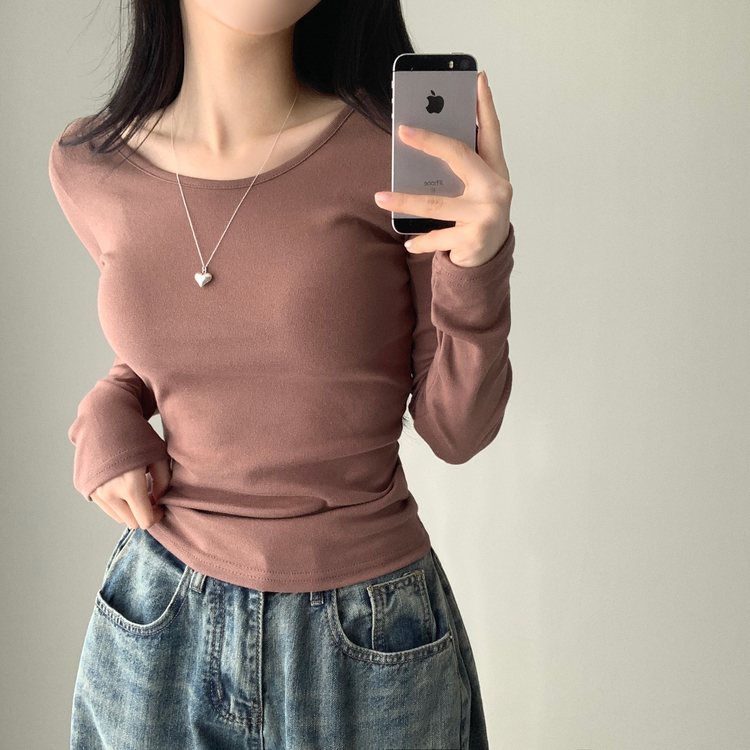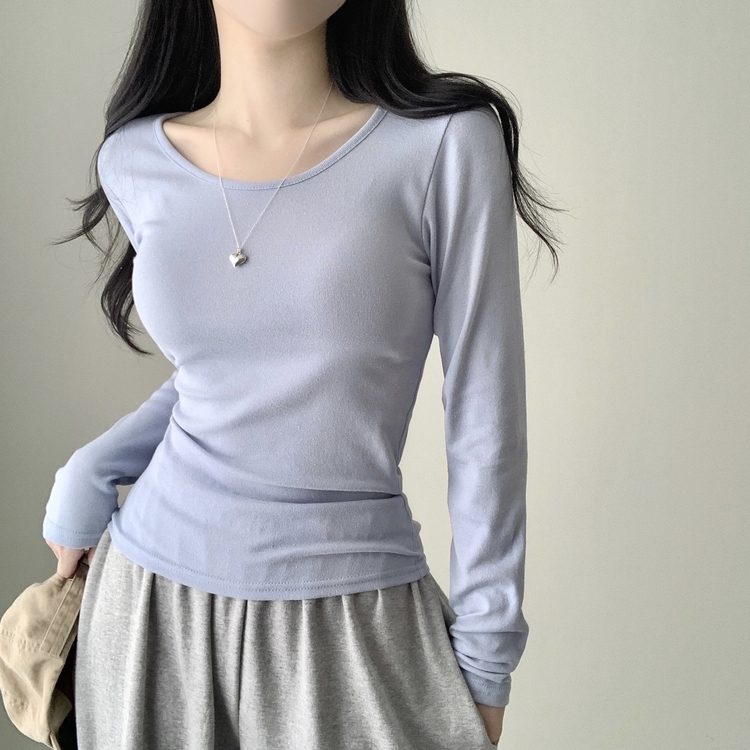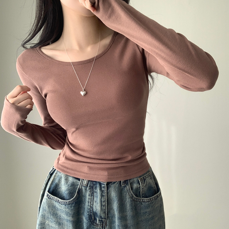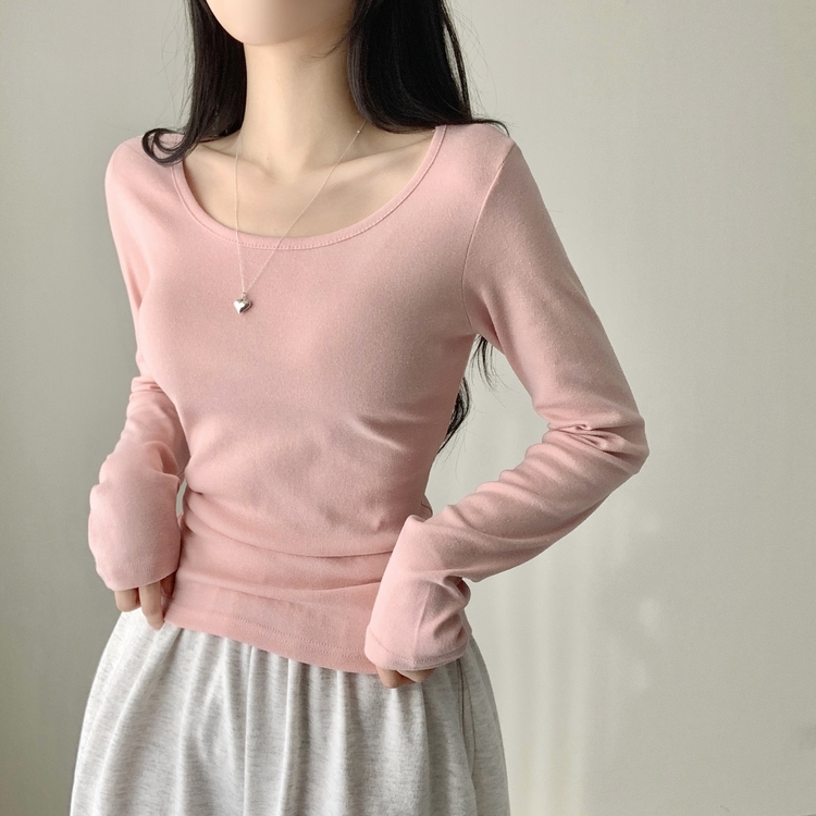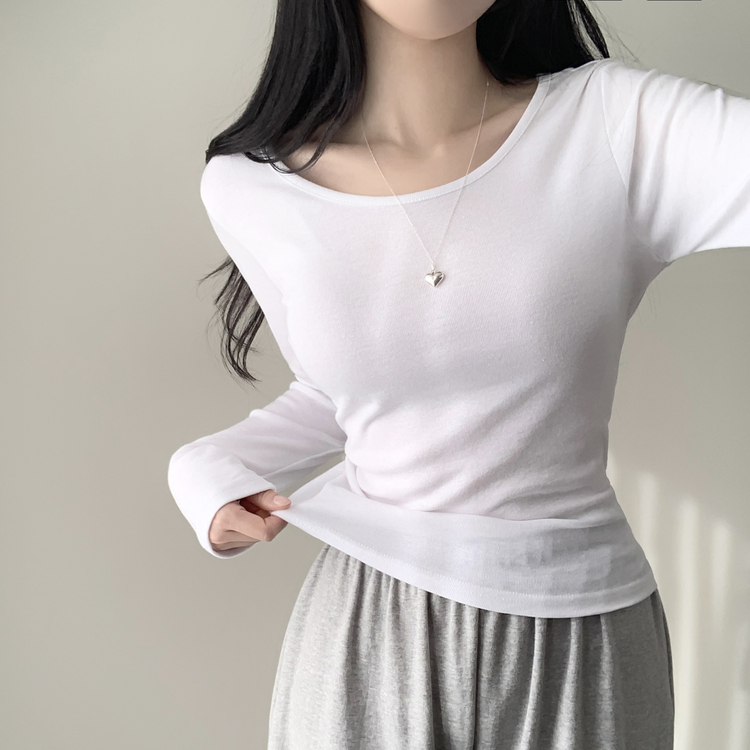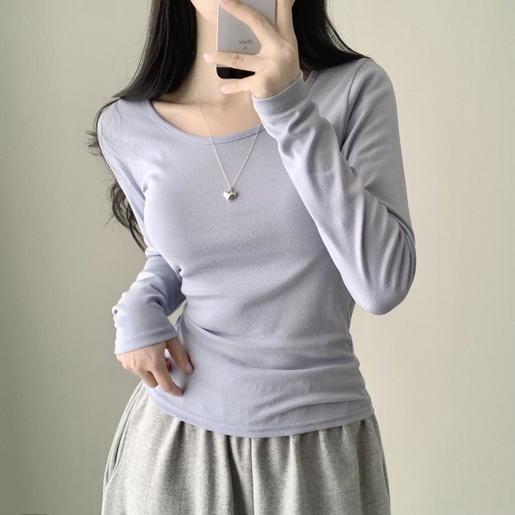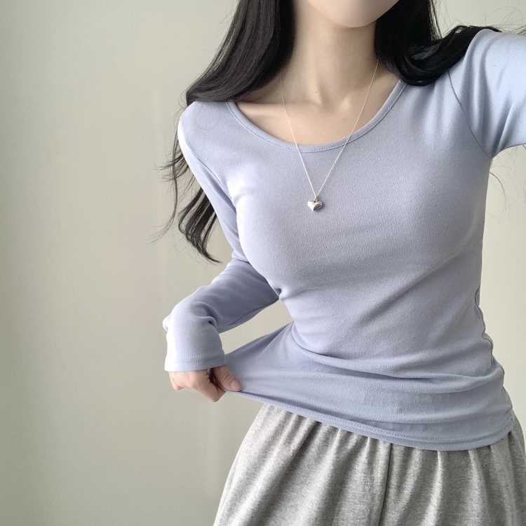 STS61515 쁘띠 쫀쫀 여리 슬림 라운드 세미 스탠다드 기본 베이직 데일리 무지 긴팔티 티셔츠 11color