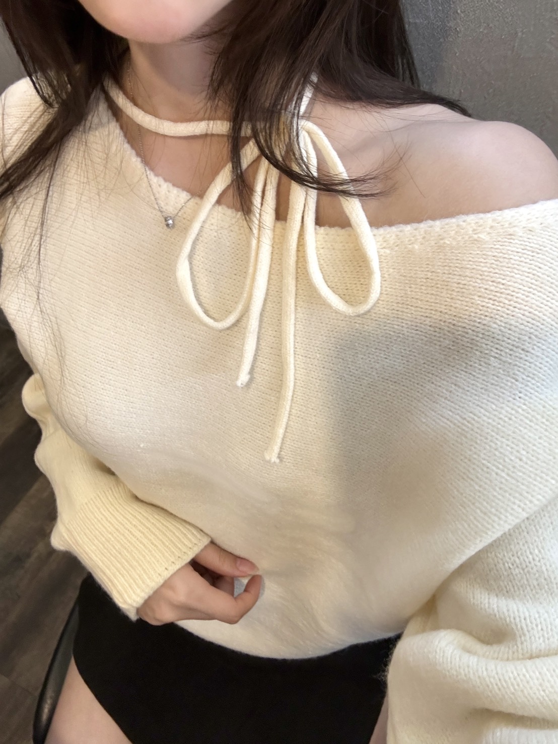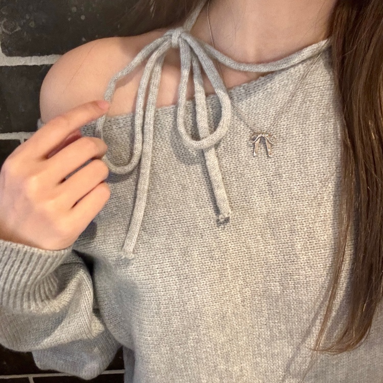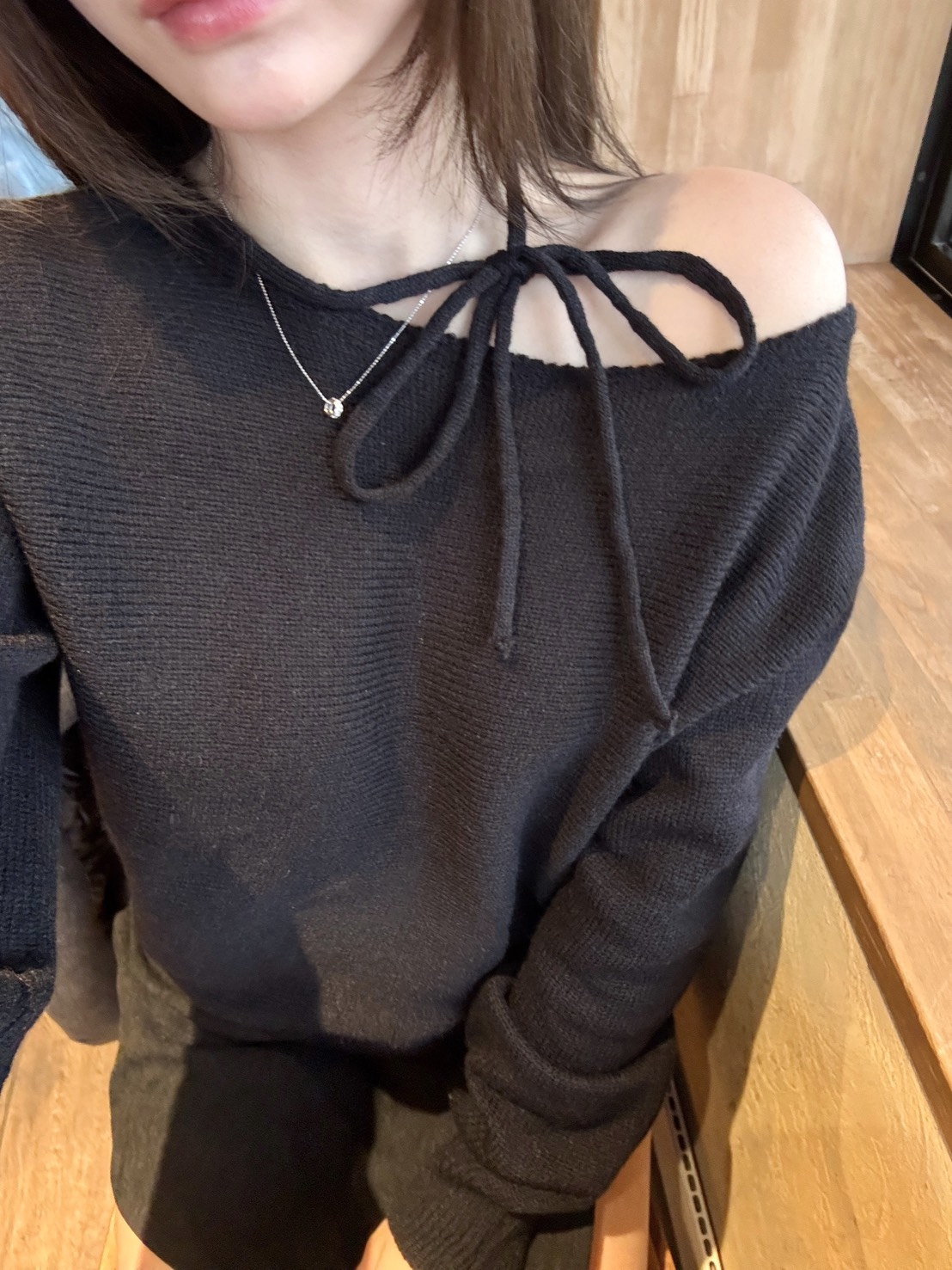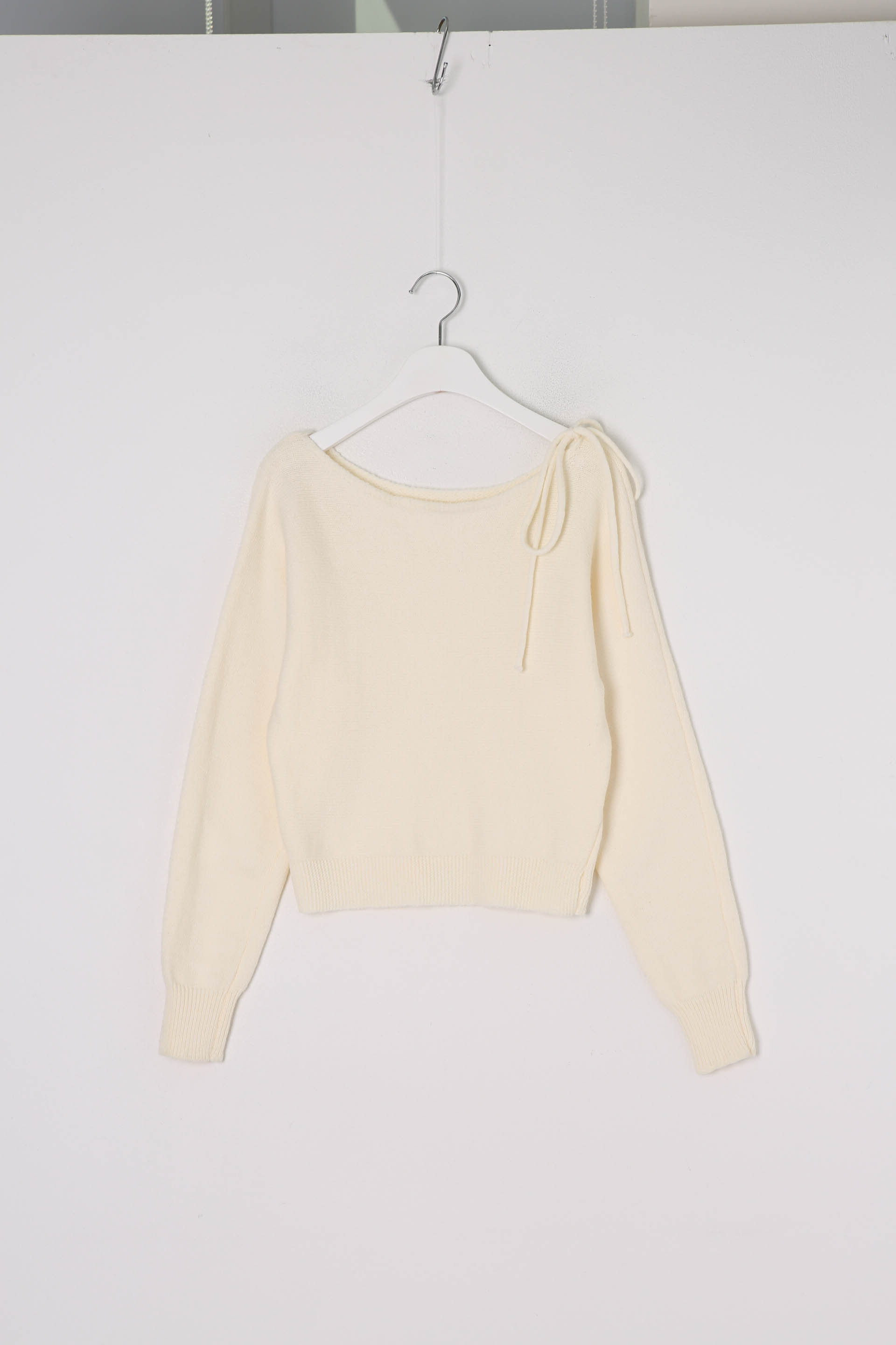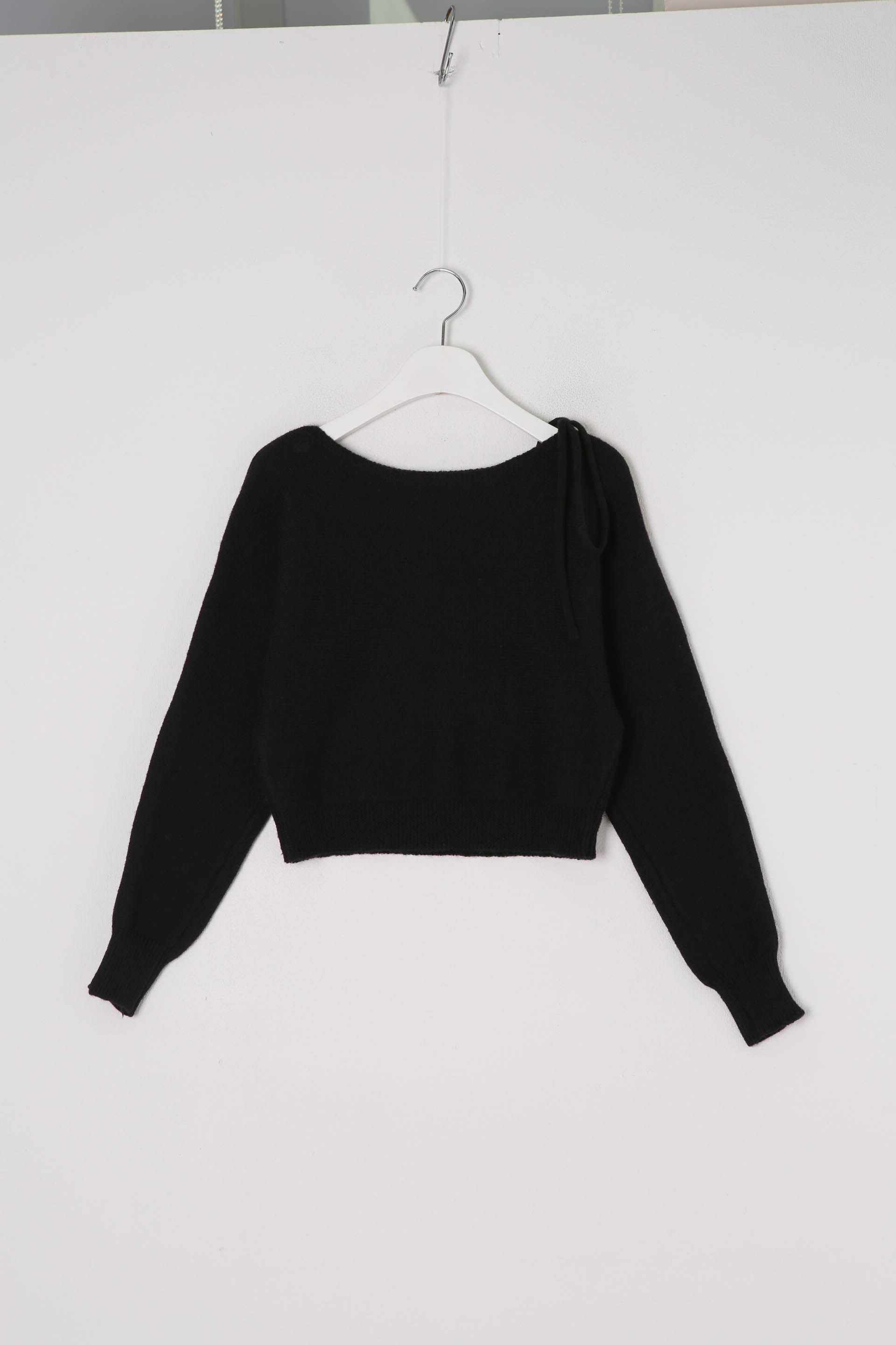 SNT29127 보트넥 오프숄더 리본초커 긴팔니트