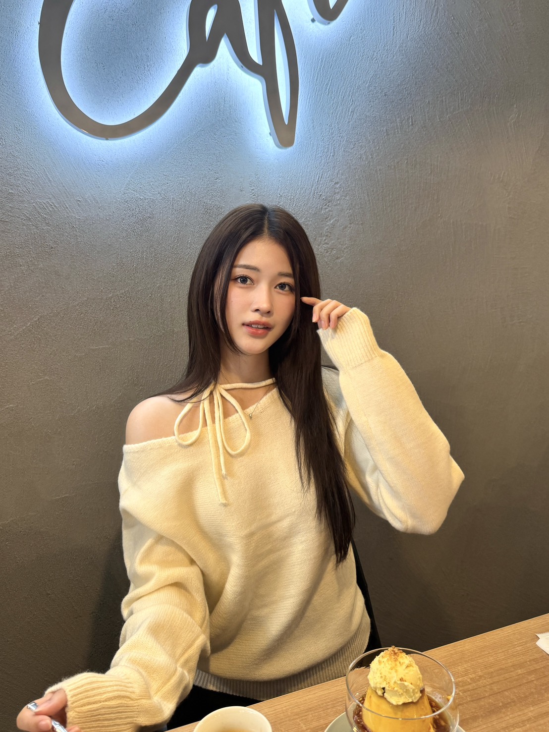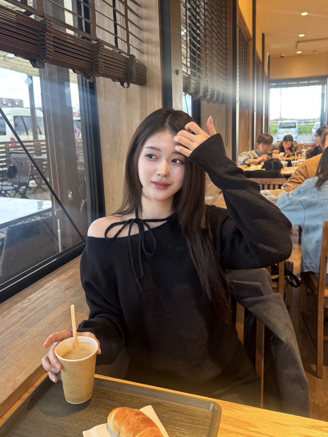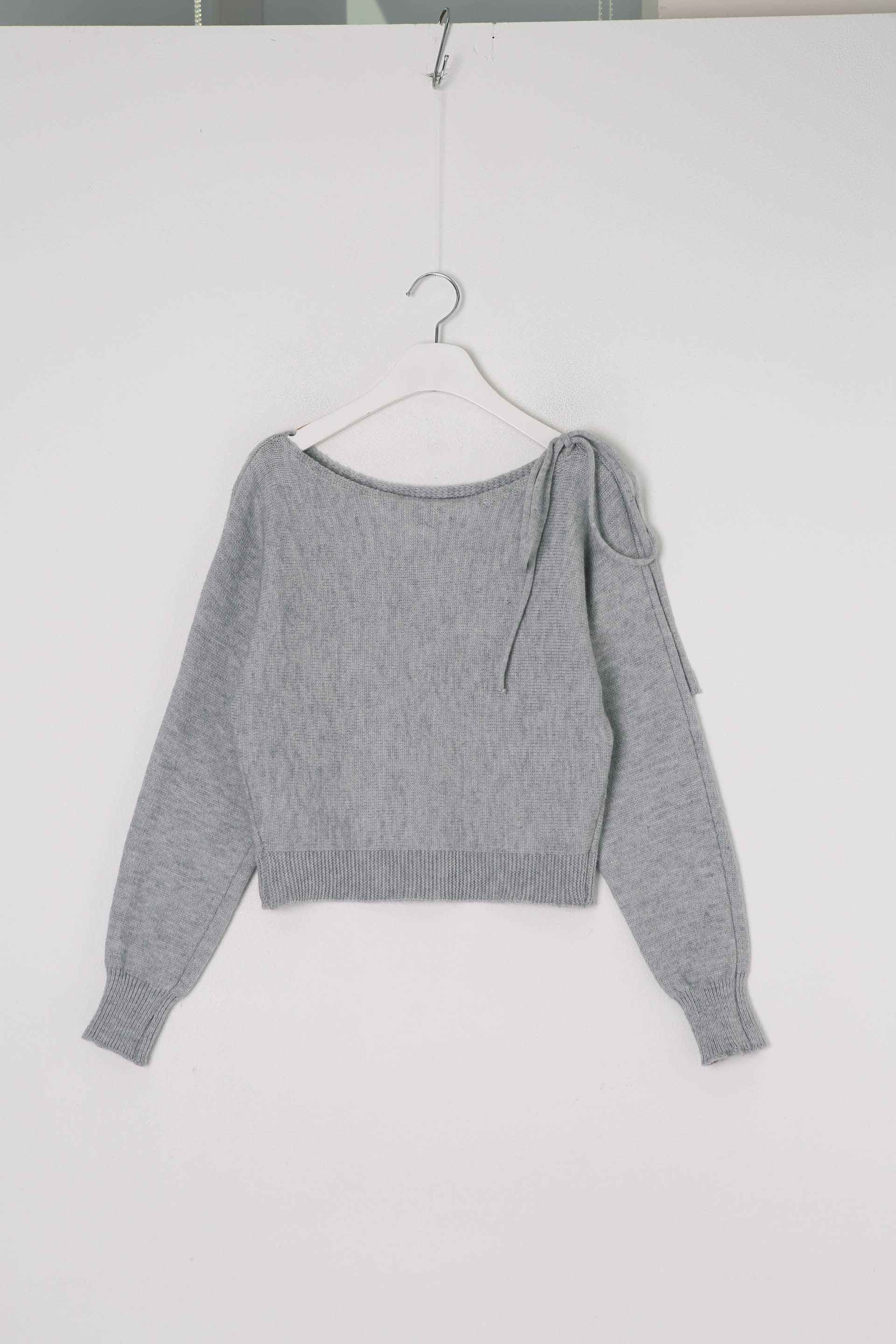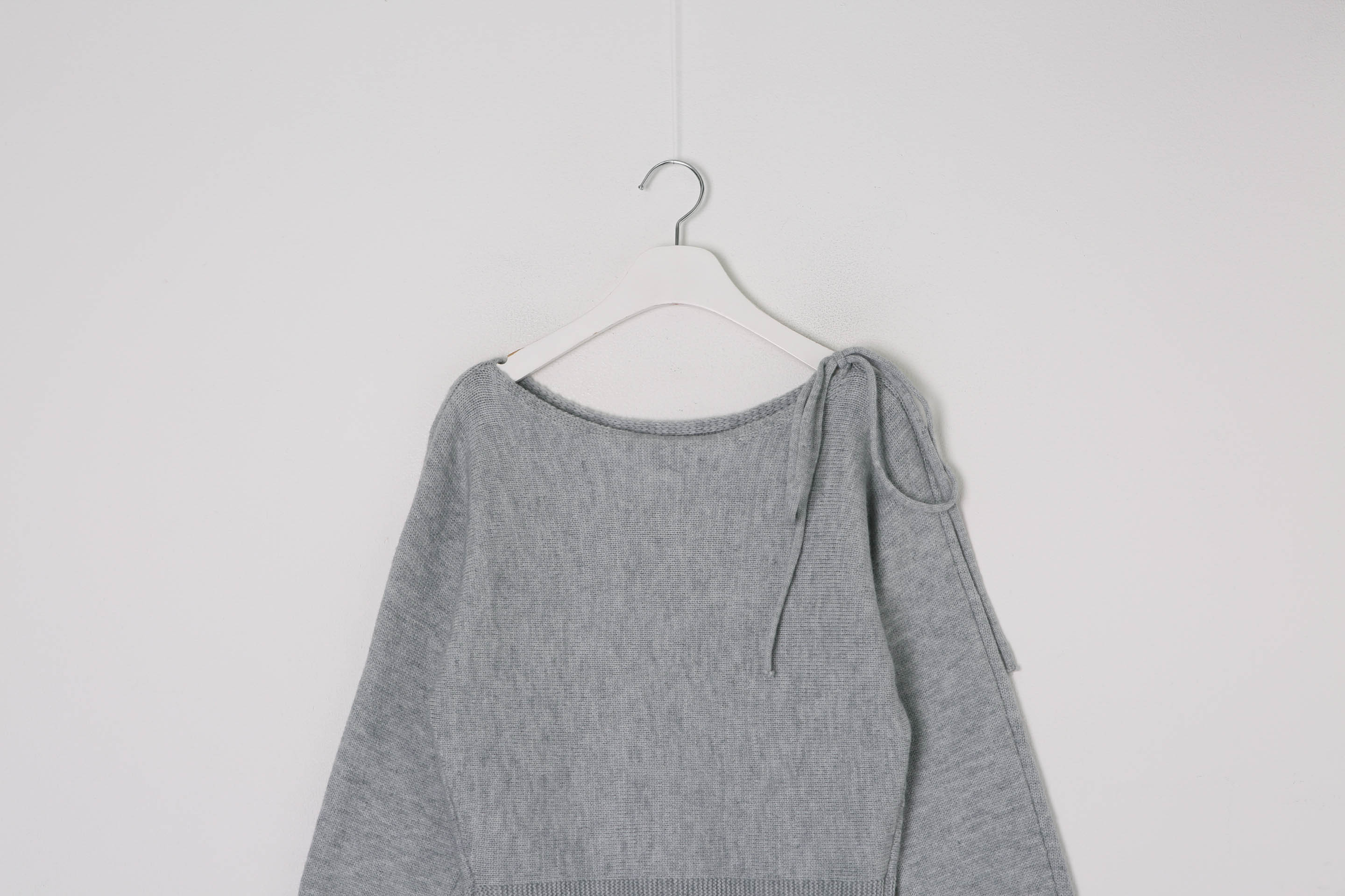 SNT29127 보트넥 오프숄더 리본초커 긴팔니트