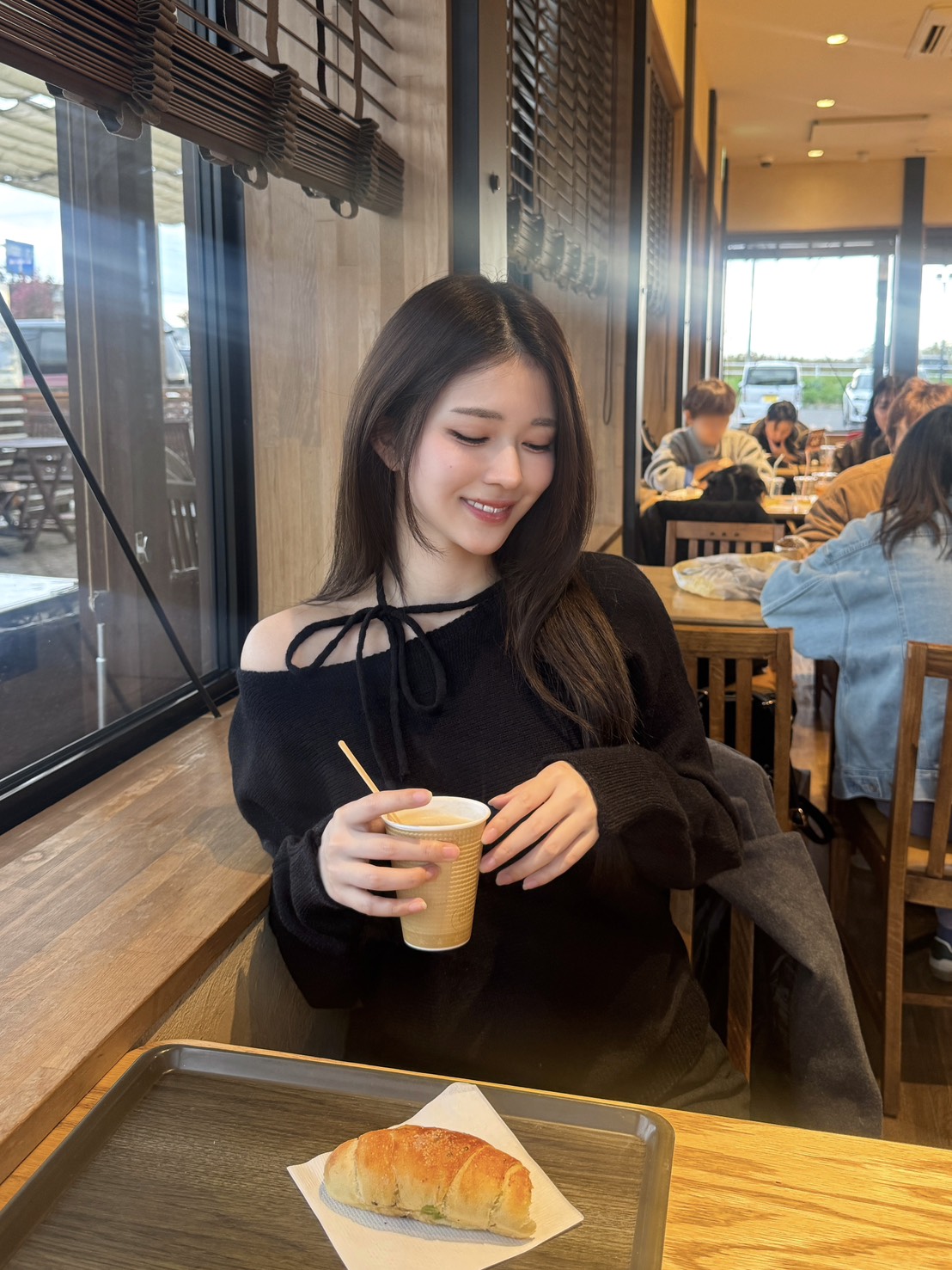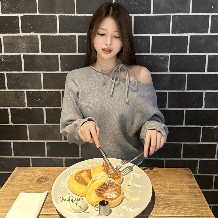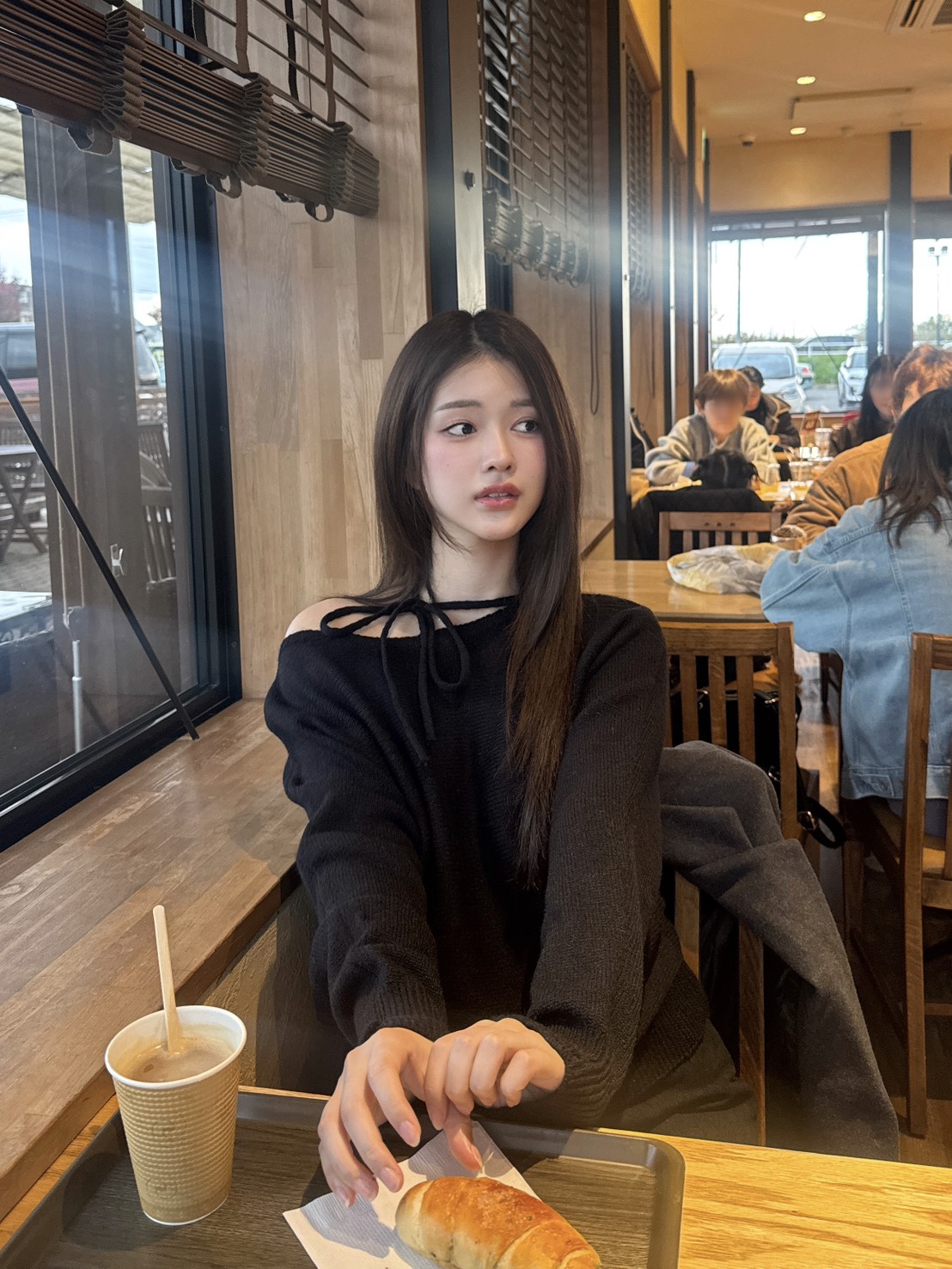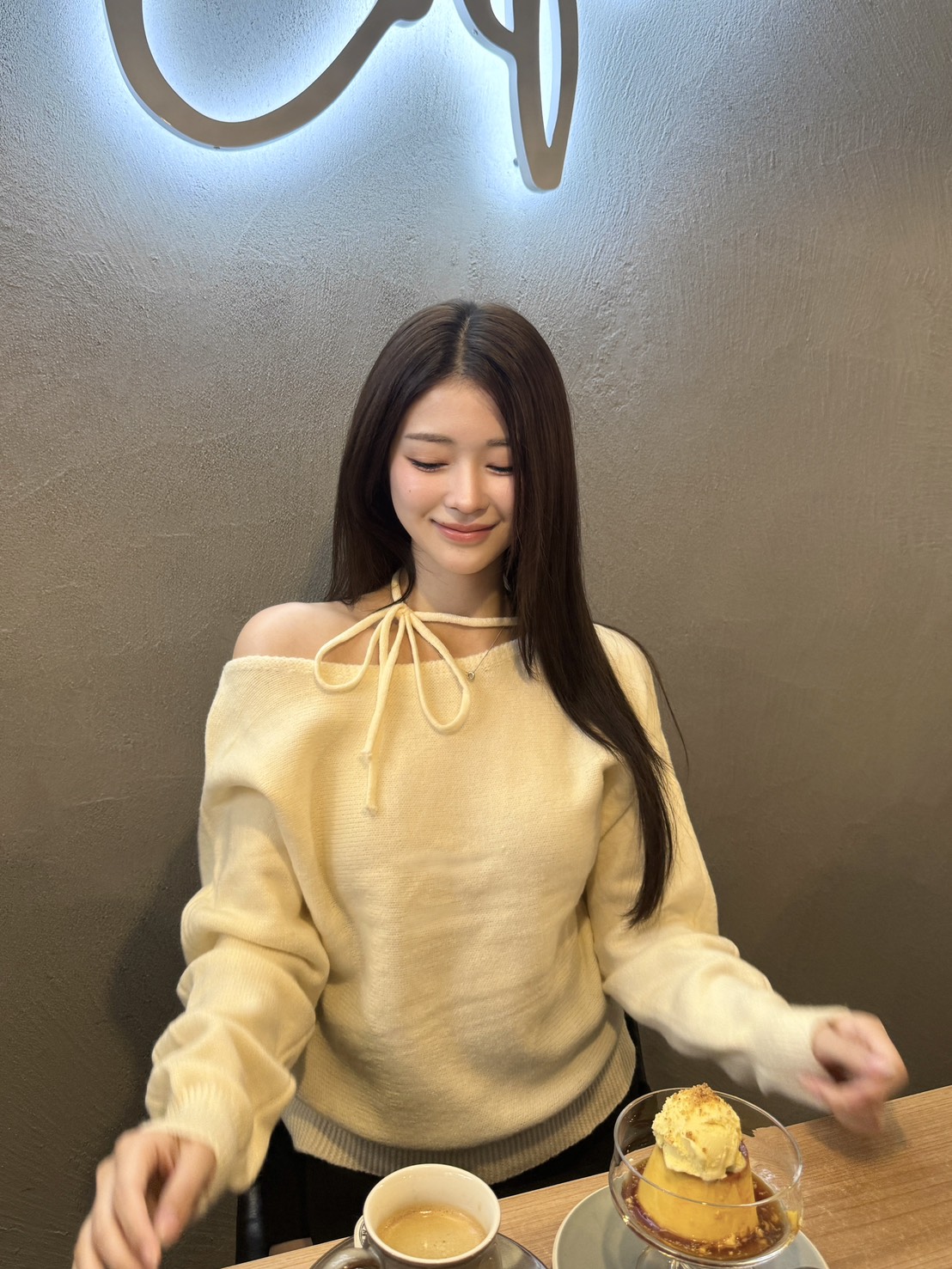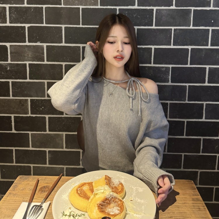 SNT29127 보트넥 오프숄더 리본초커 긴팔니트