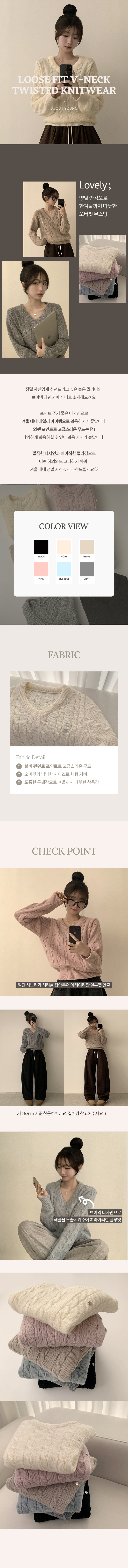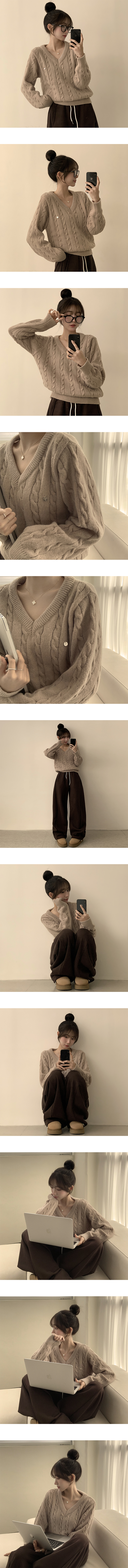 SNT29144 자신있는 추천템 러블리모먼트 브이넥 겨울 긴팔 꽈배기 펜던트 오버핏 니트 루즈핏 상의 6color