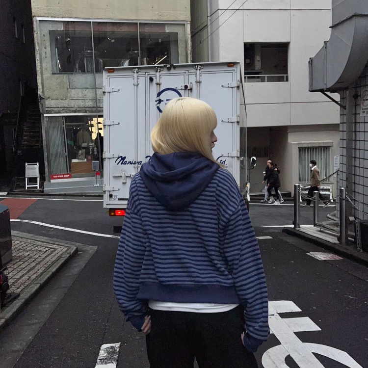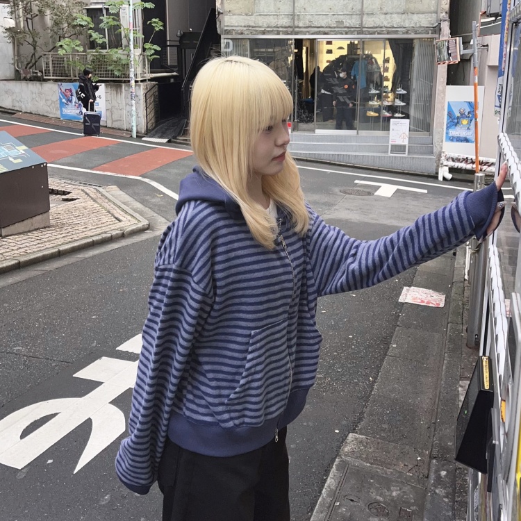 SJP15950 런던 투웨이 기모 스트라이프 후드집업