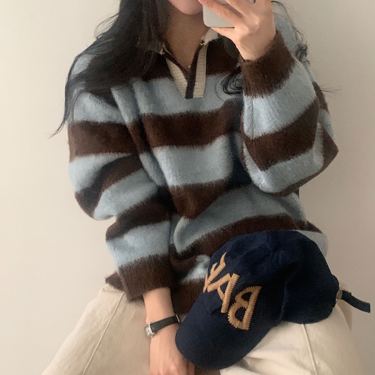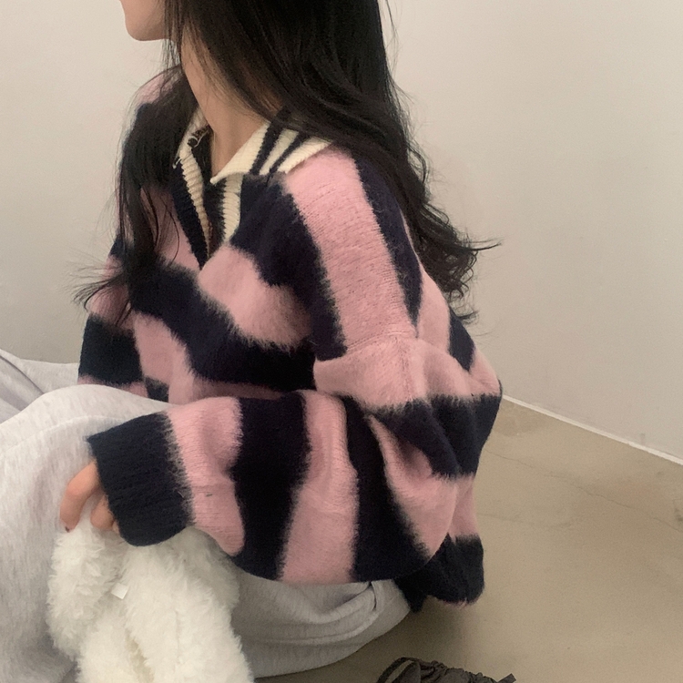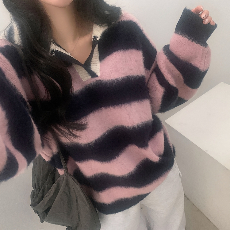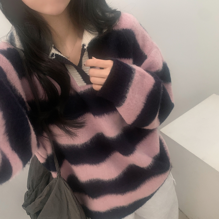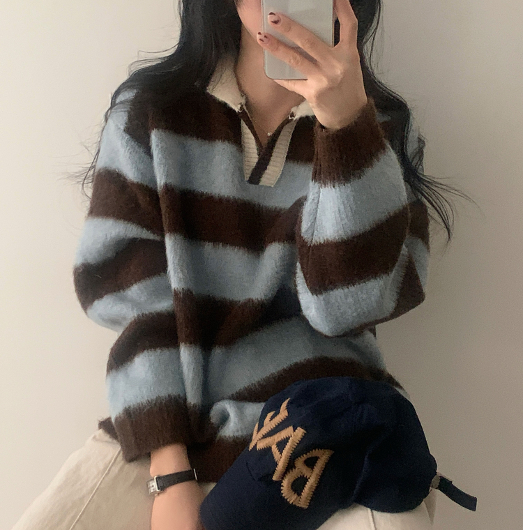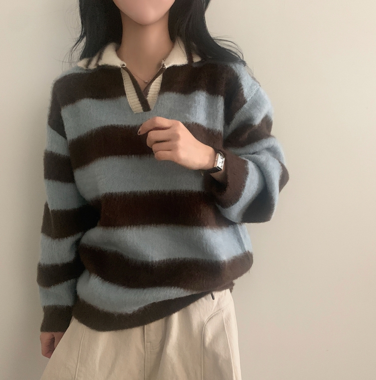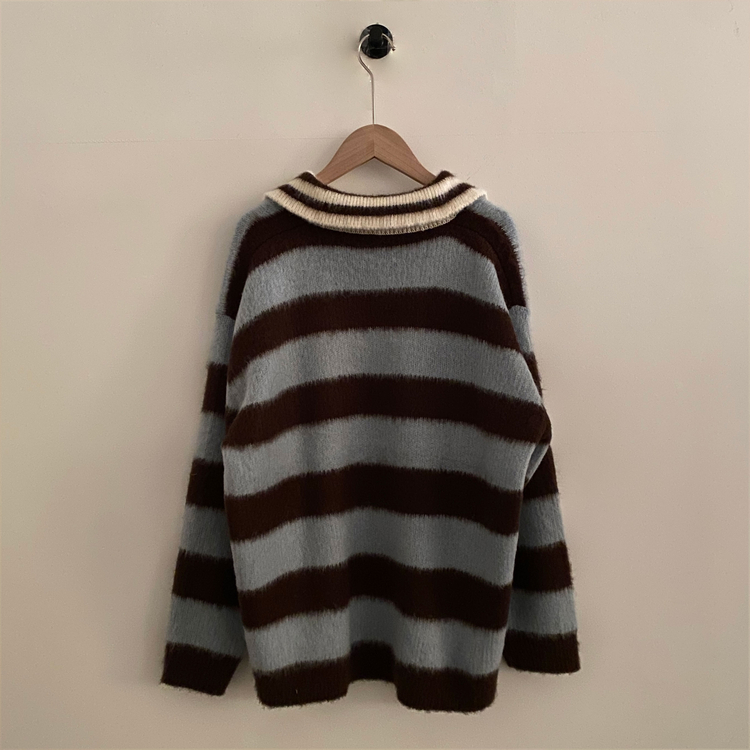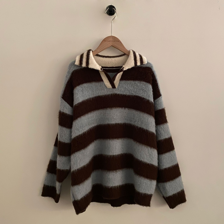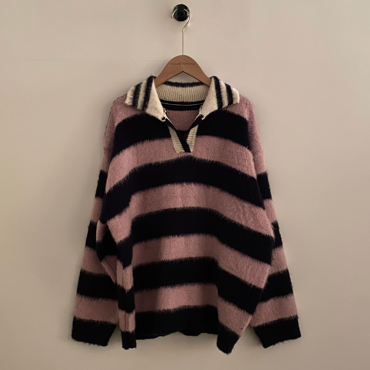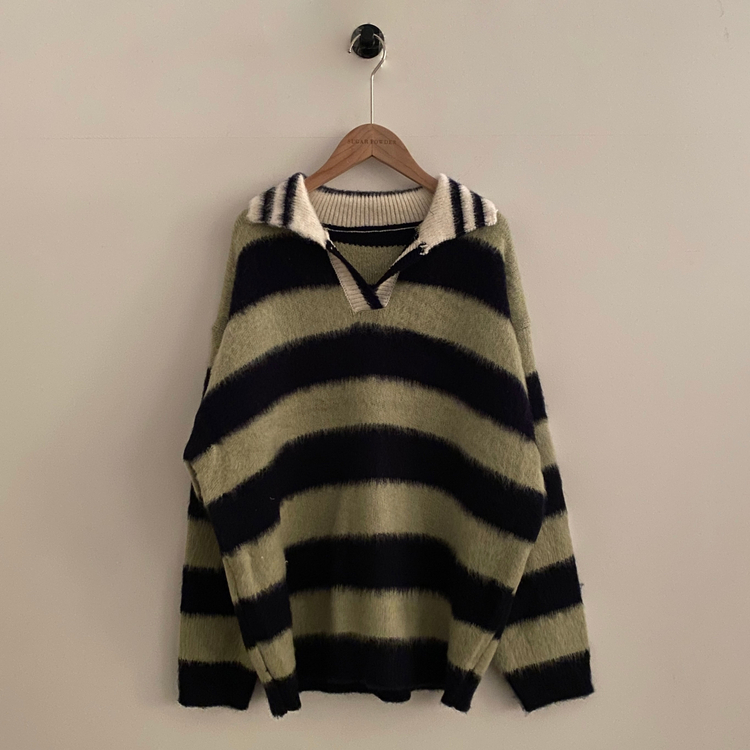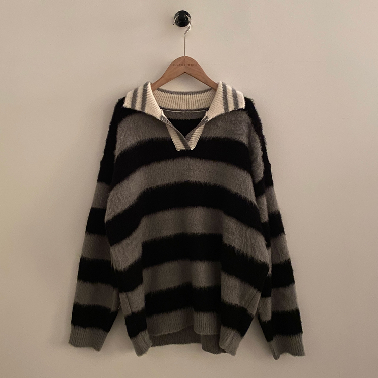 SNT29478 수푸 스트라이프 루즈핏 카라 니트 4color