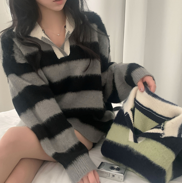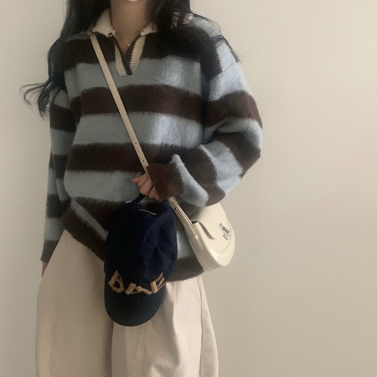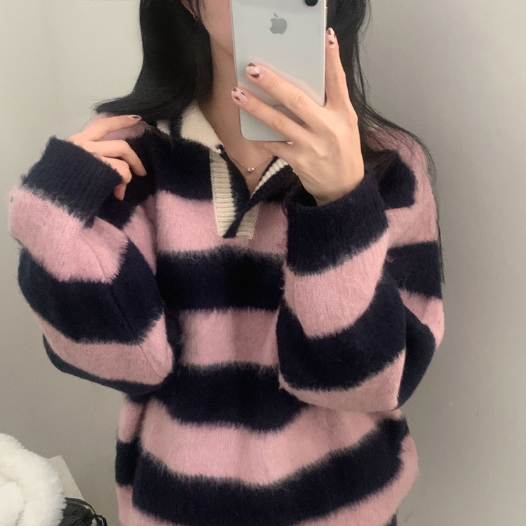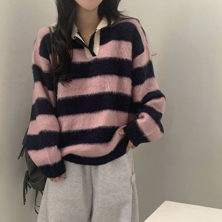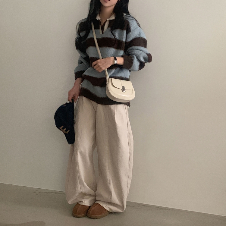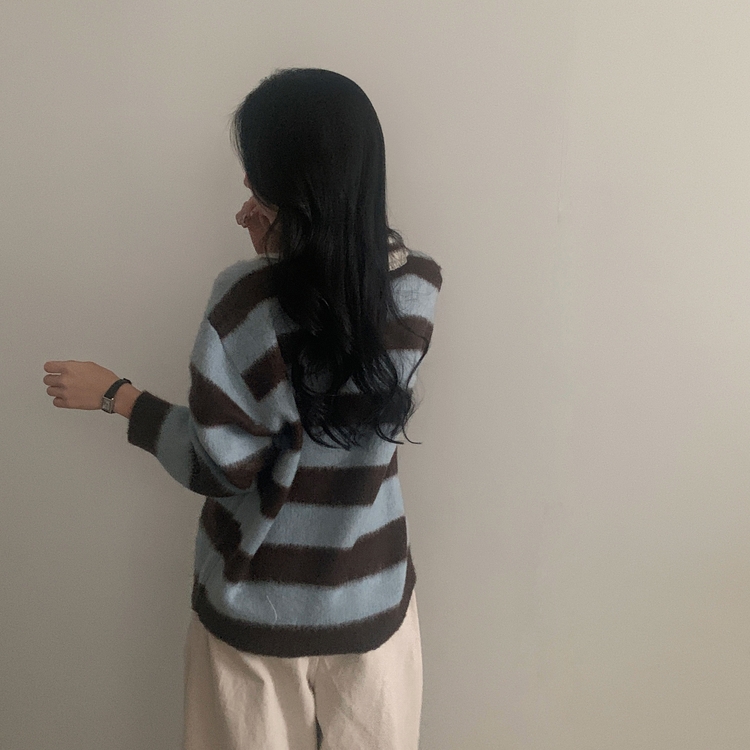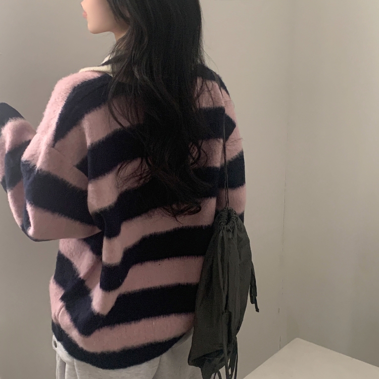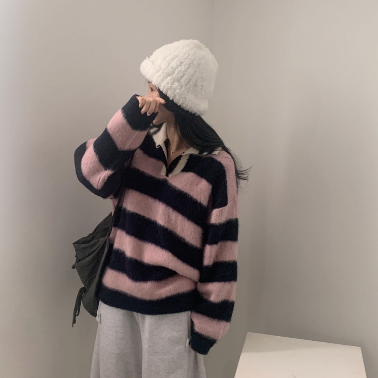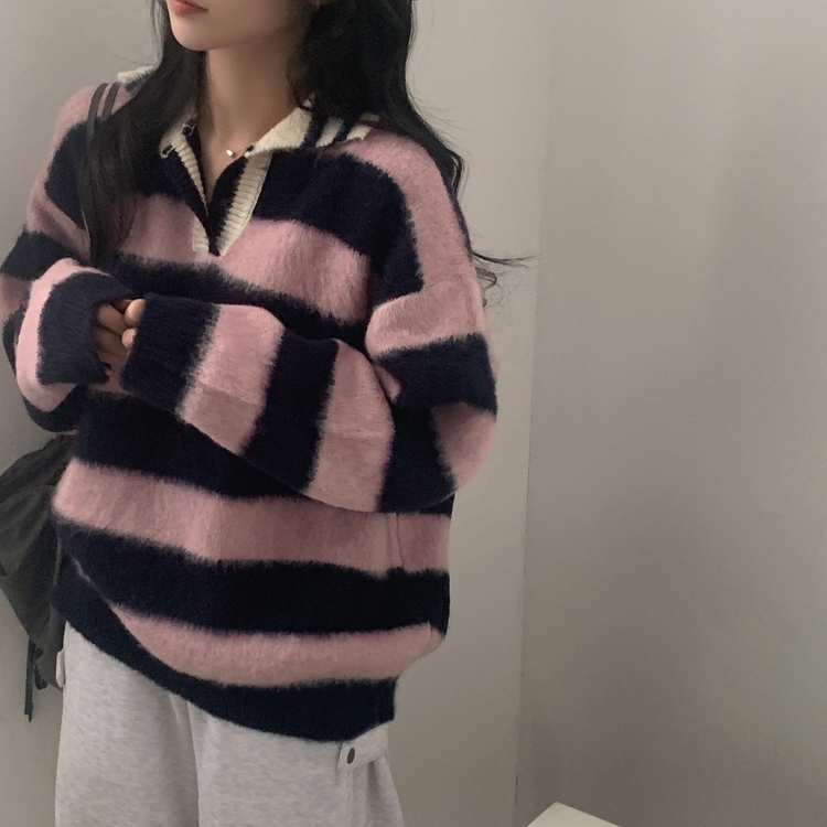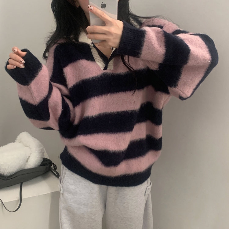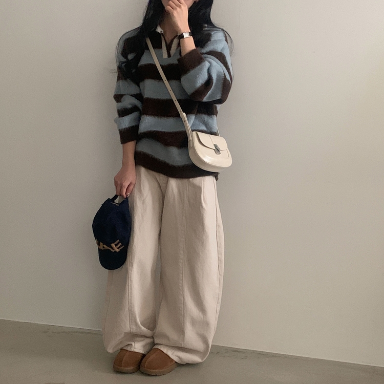 SNT29478 수푸 스트라이프 루즈핏 카라 니트 4color