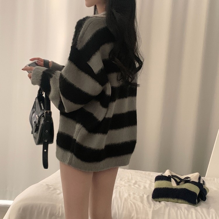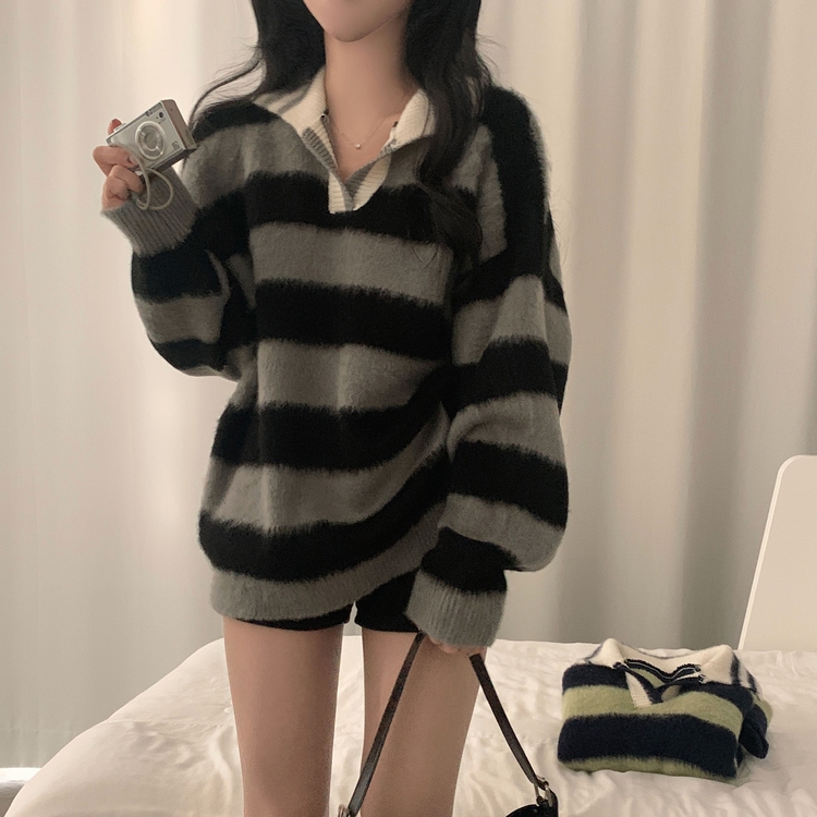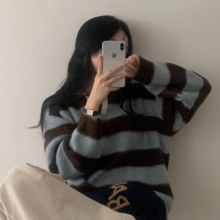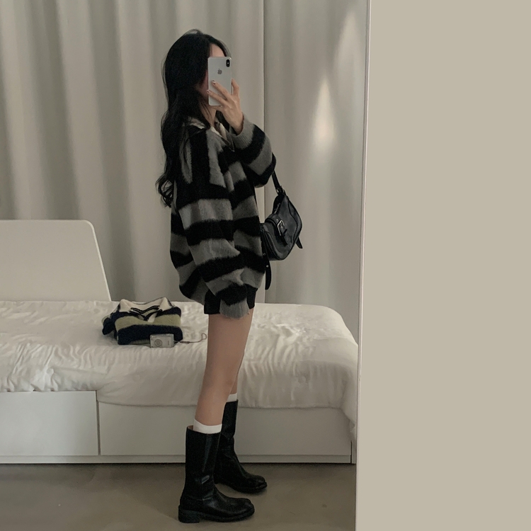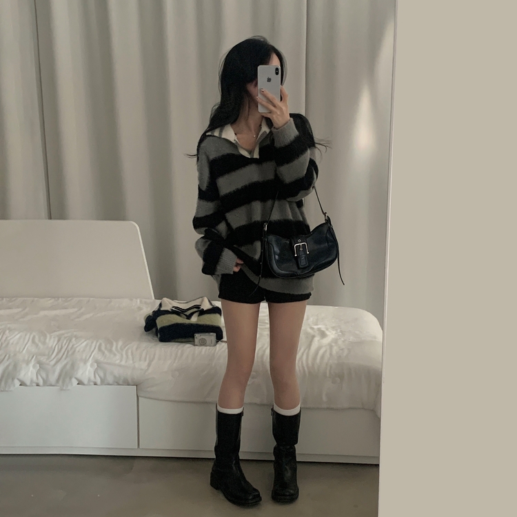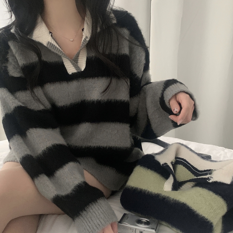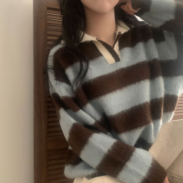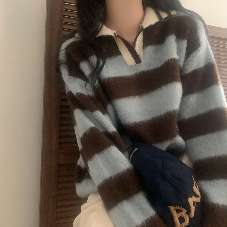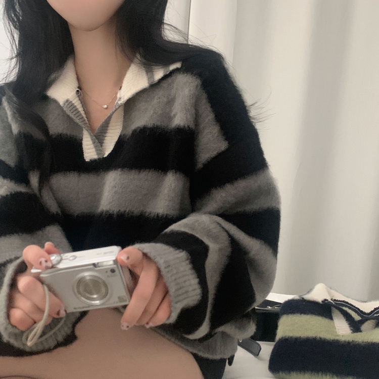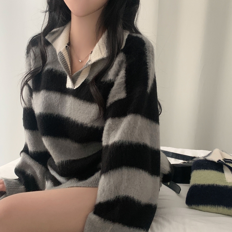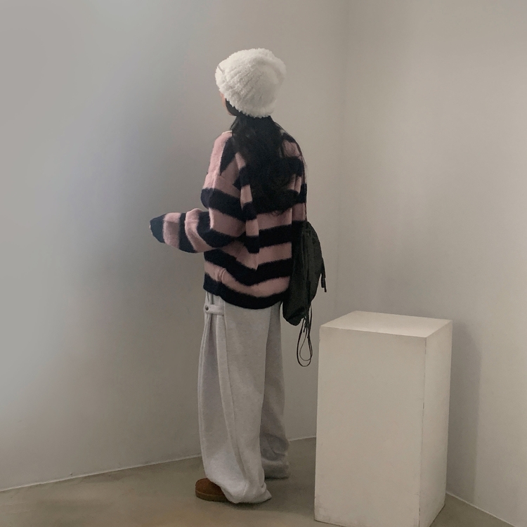 SNT29478 수푸 스트라이프 루즈핏 카라 니트 4color
