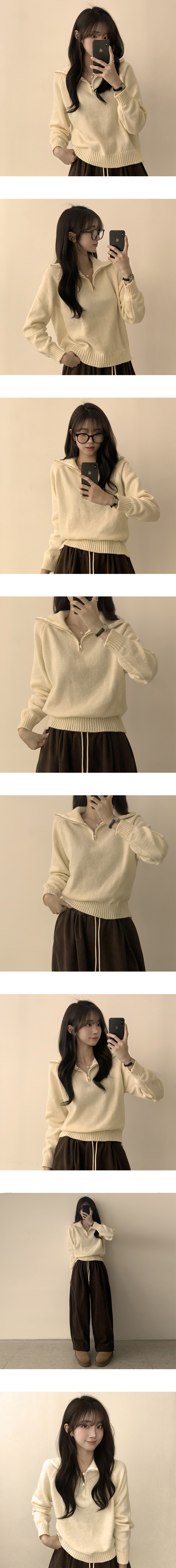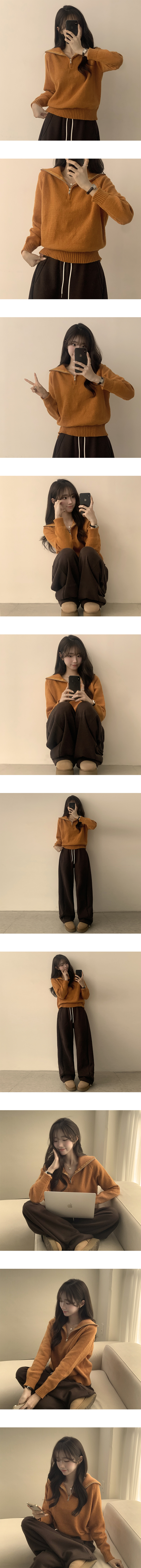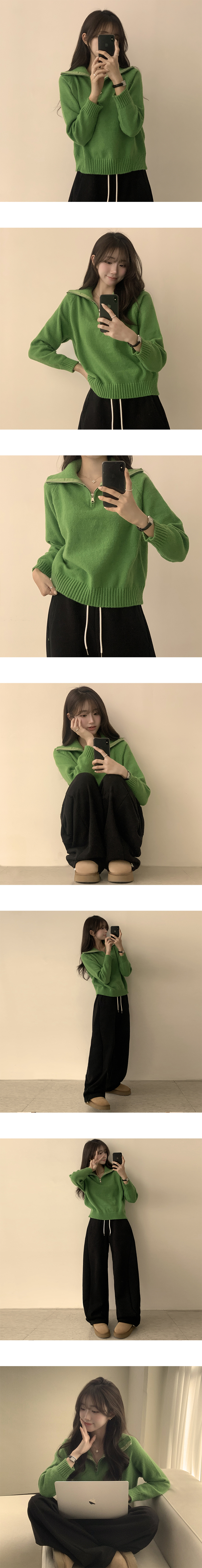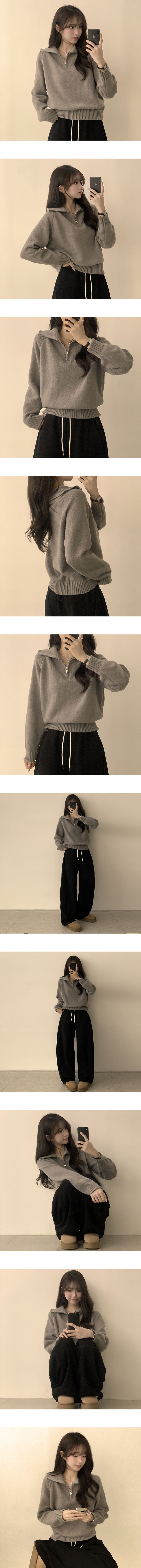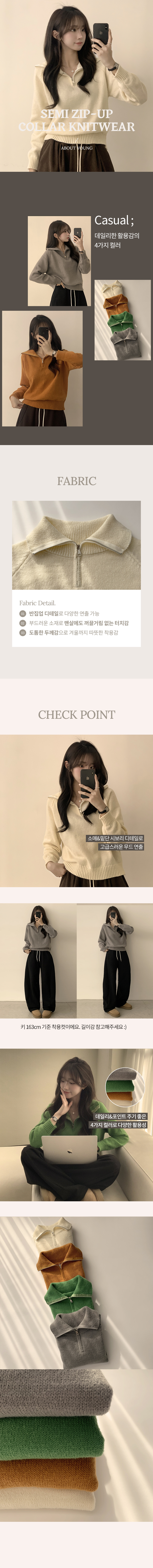 SNT29482 새콤달콤 겨울 카라 반집업 세미 크롭 오버핏 긴팔 폴라 캐주얼 기본 니트 4color