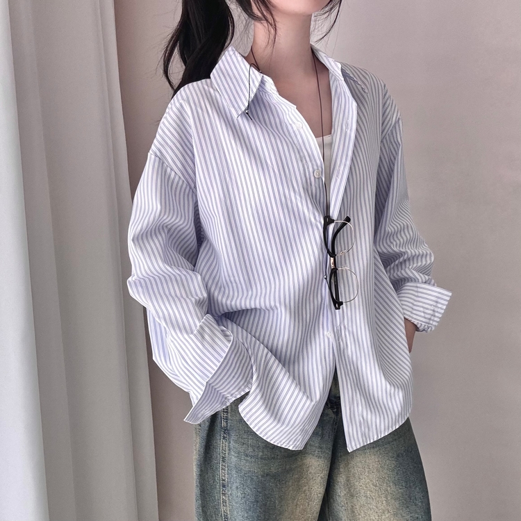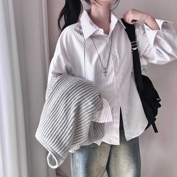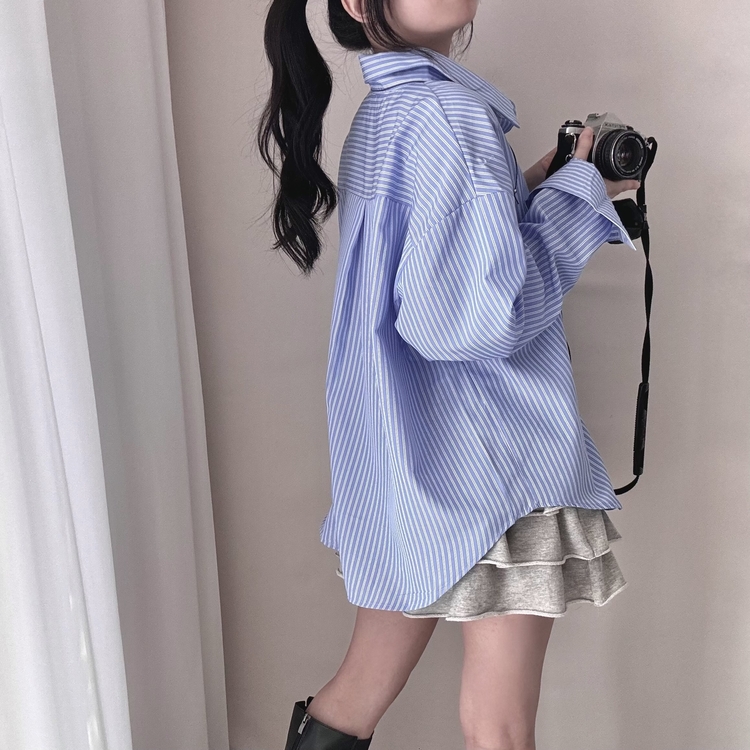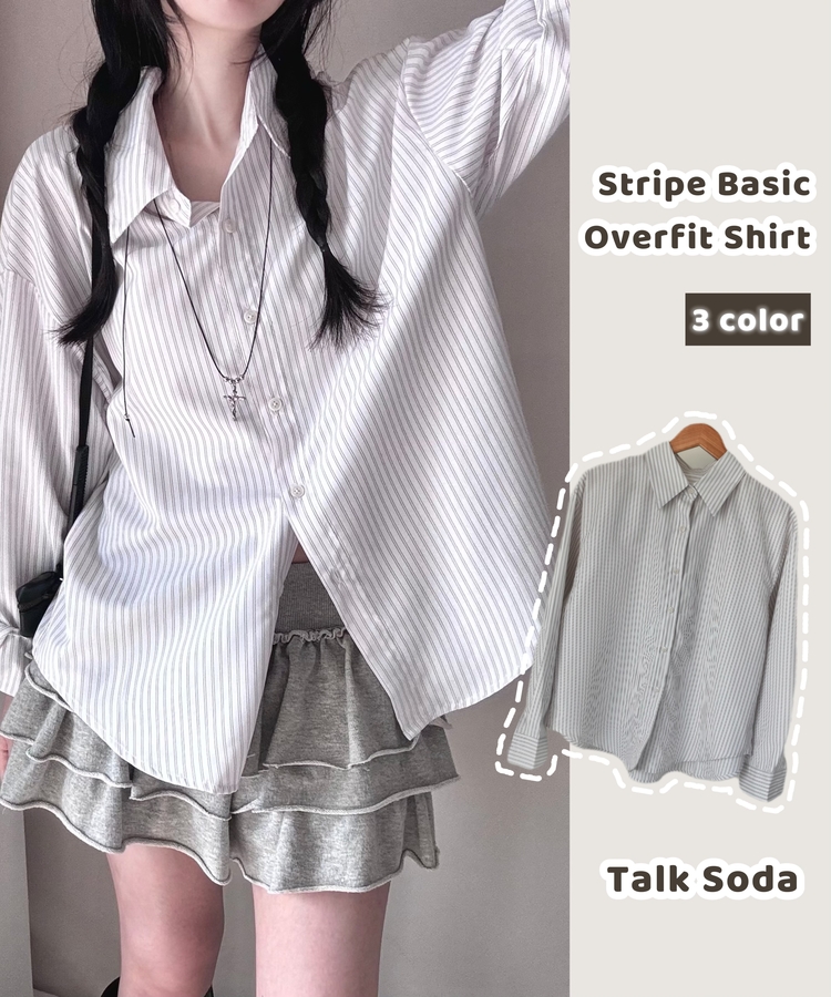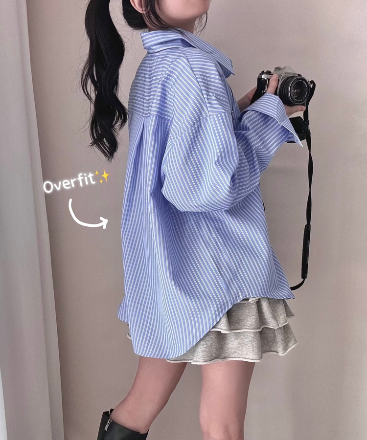 SBS24309 핏대박 스트라이프 코튼 오버핏 셔츠
