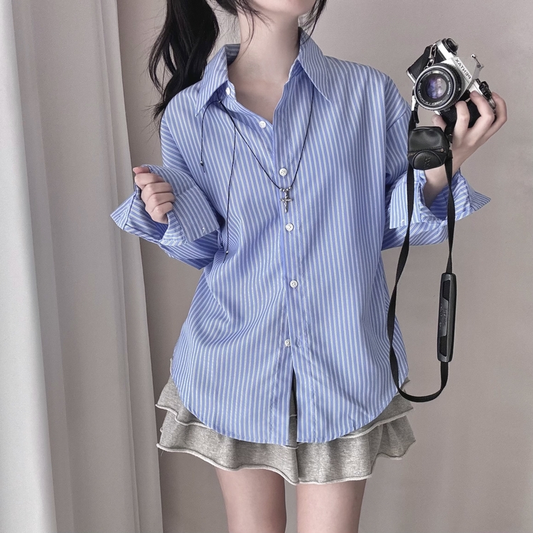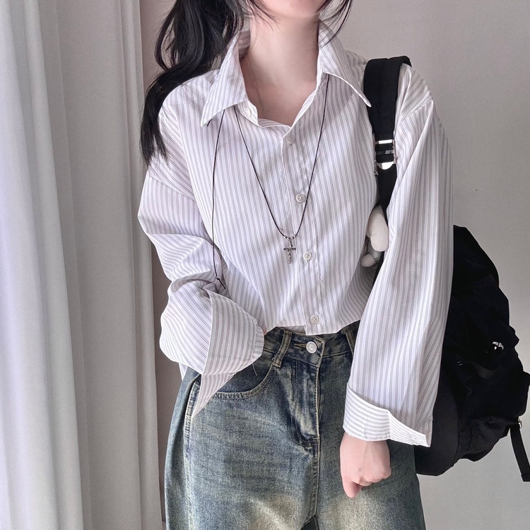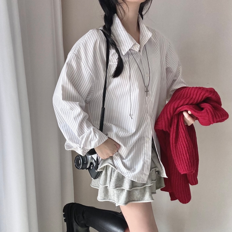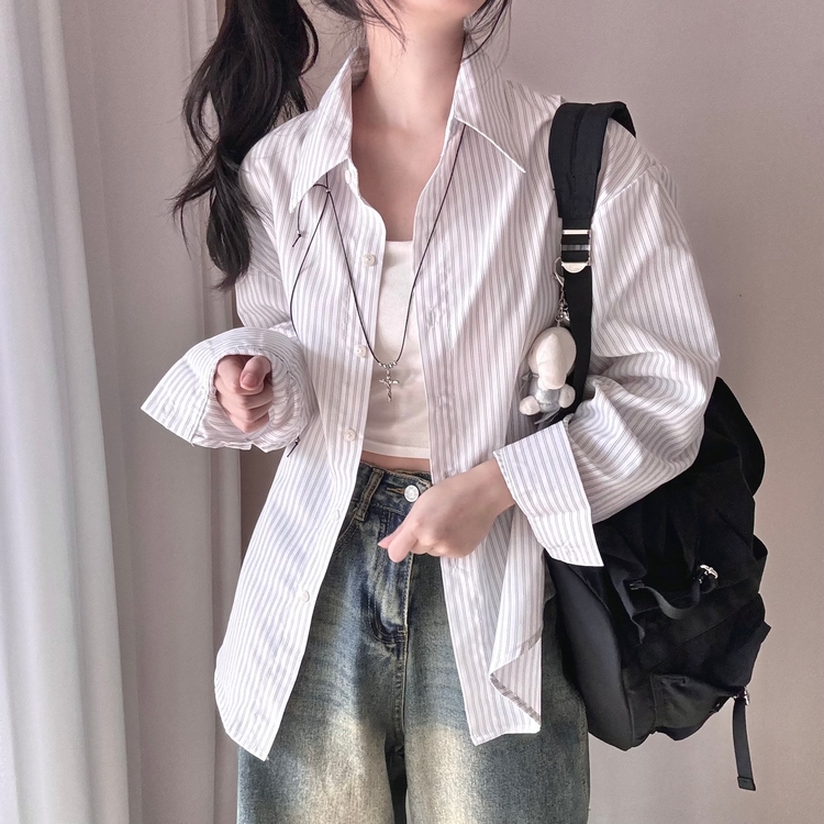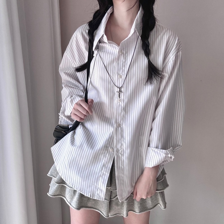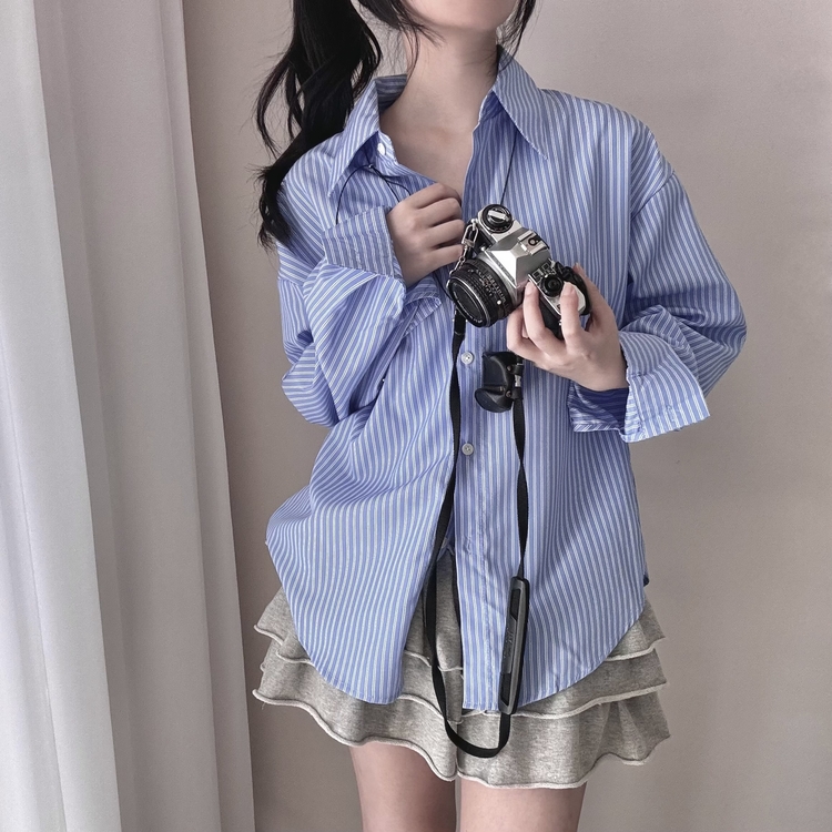 SBS24309 핏대박 스트라이프 코튼 오버핏 셔츠