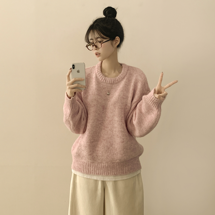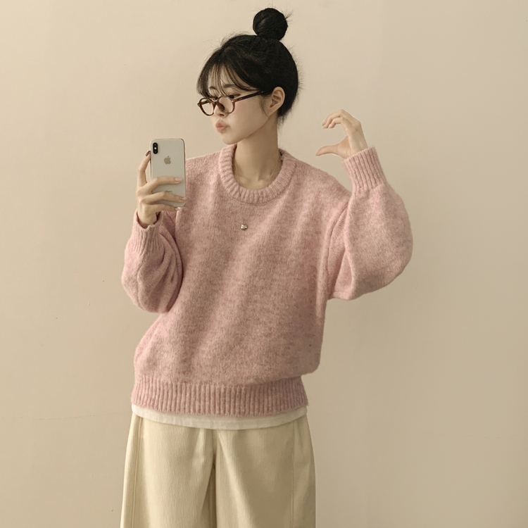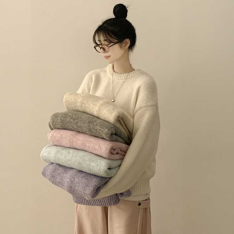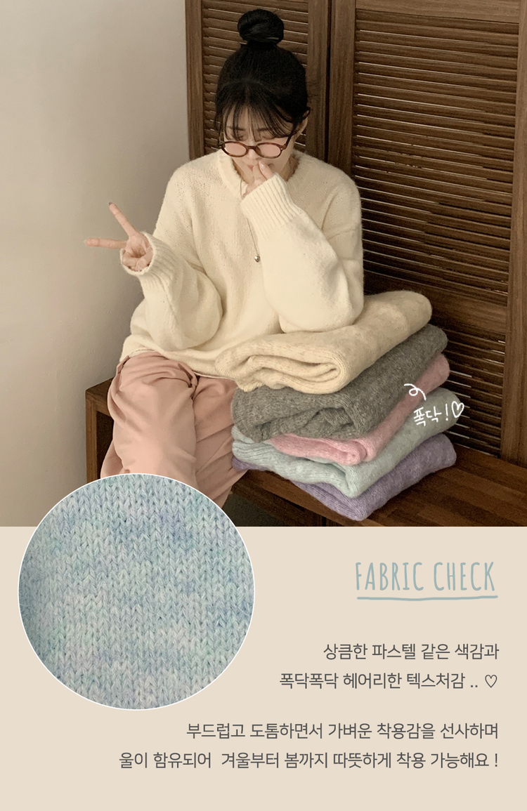SNT29638 파스텔 도톰 보카시 라운드 아방핏 니트