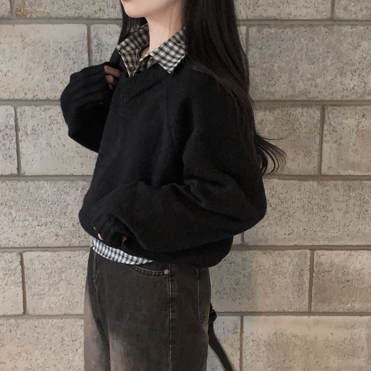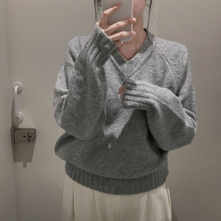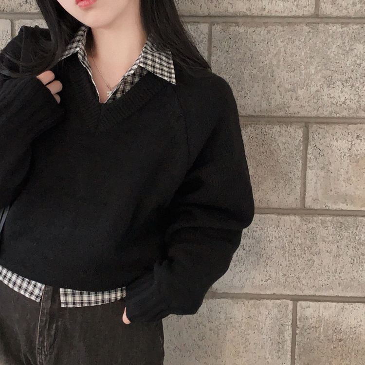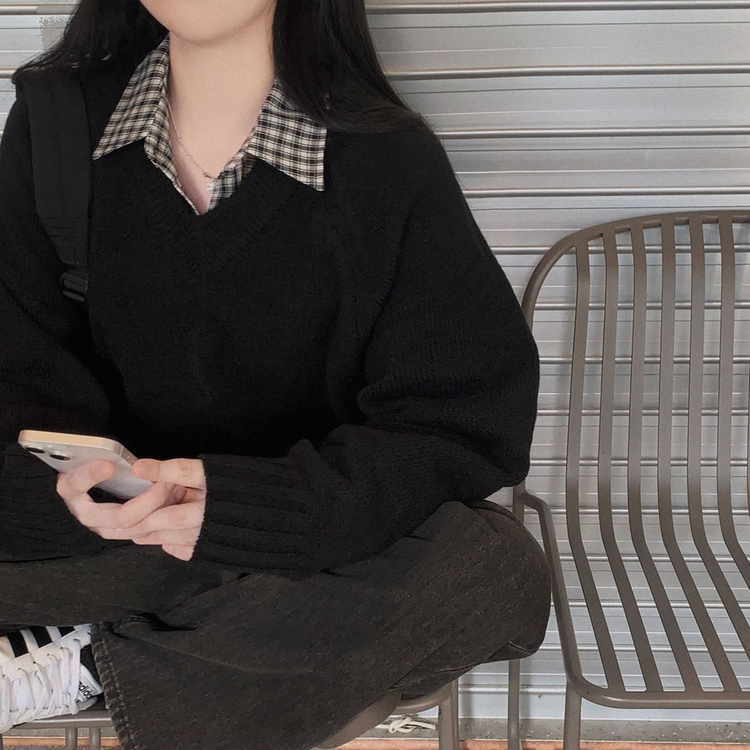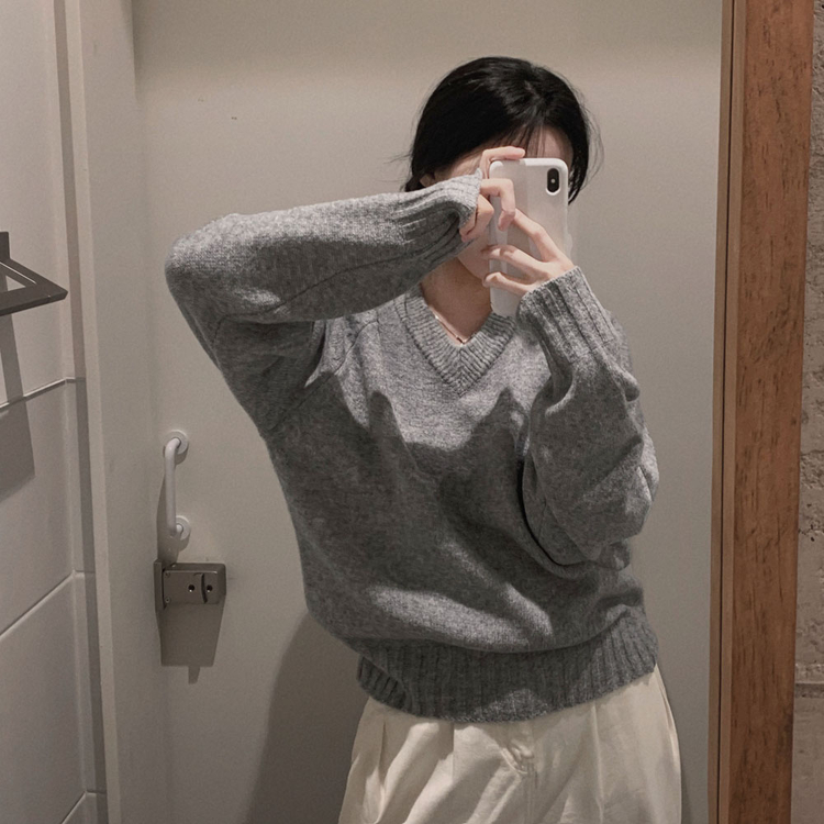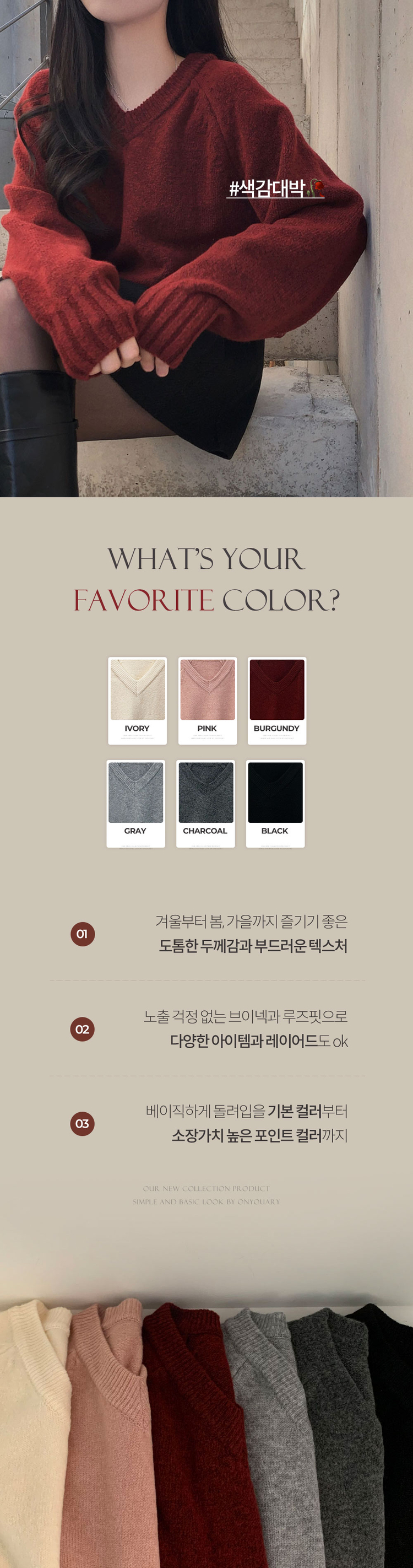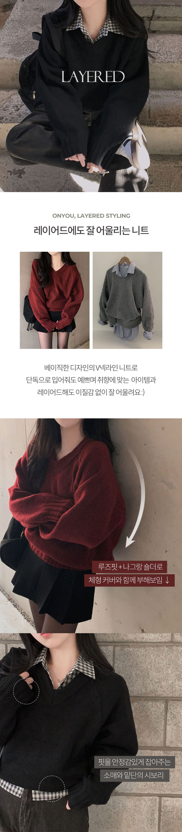 SNT29791 제니 브이넥 레이어드 루즈핏 나그랑 니트