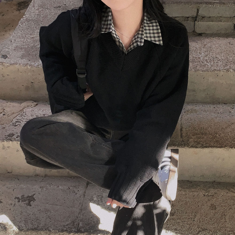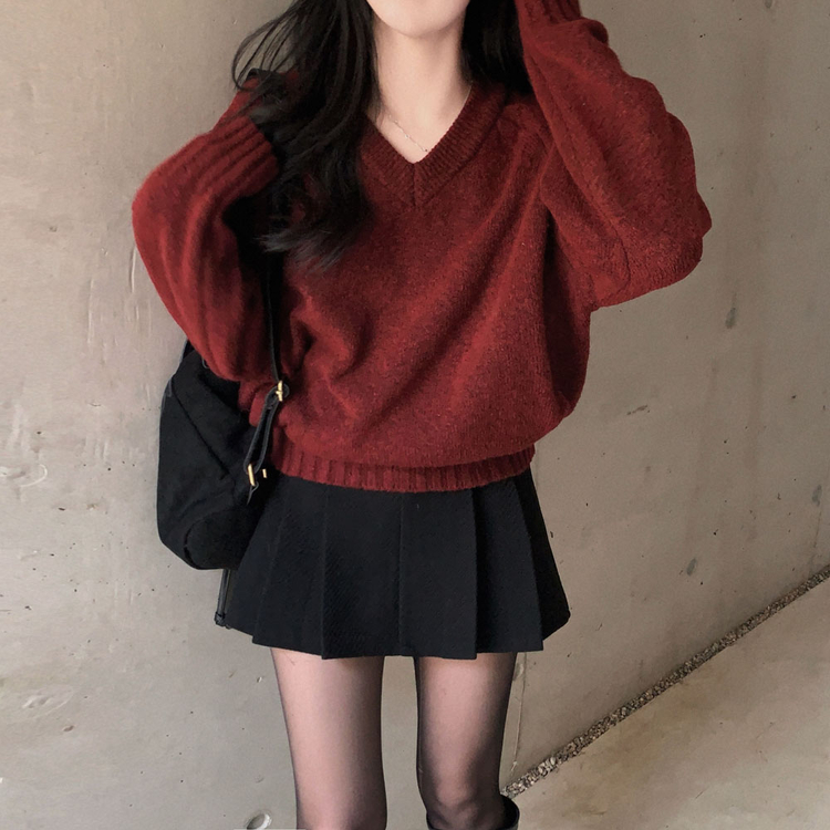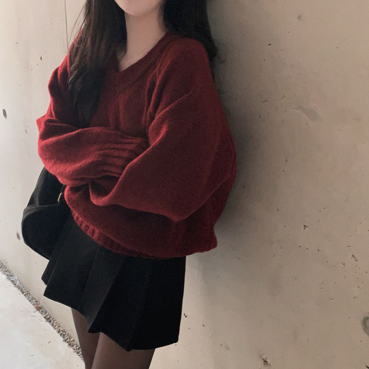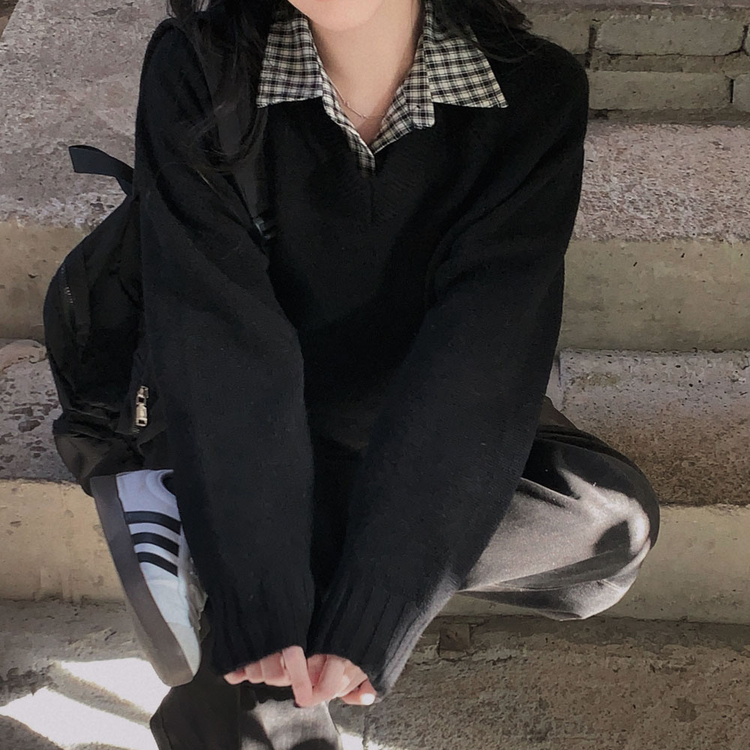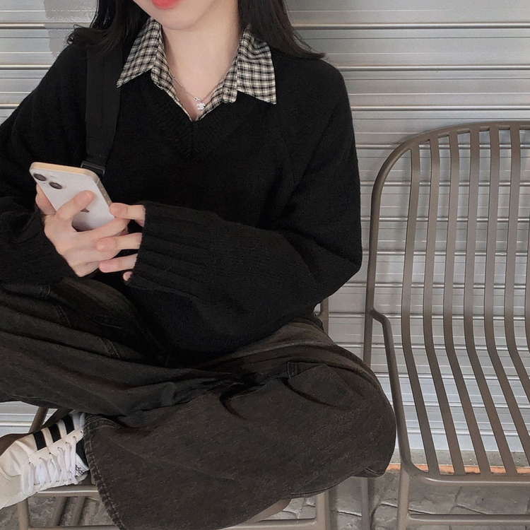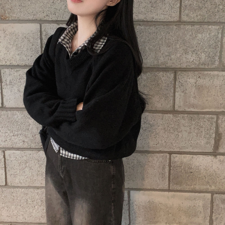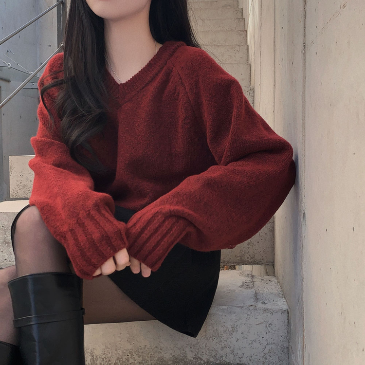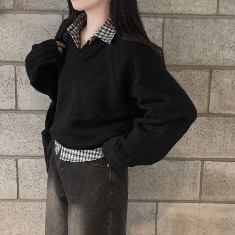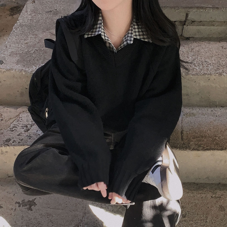 SNT29791 제니 브이넥 레이어드 루즈핏 나그랑 니트