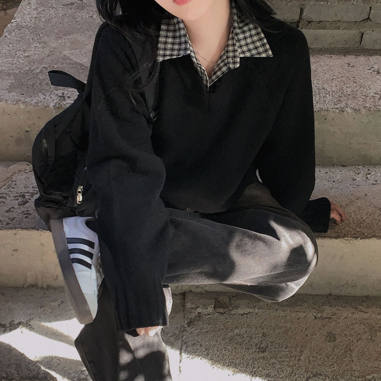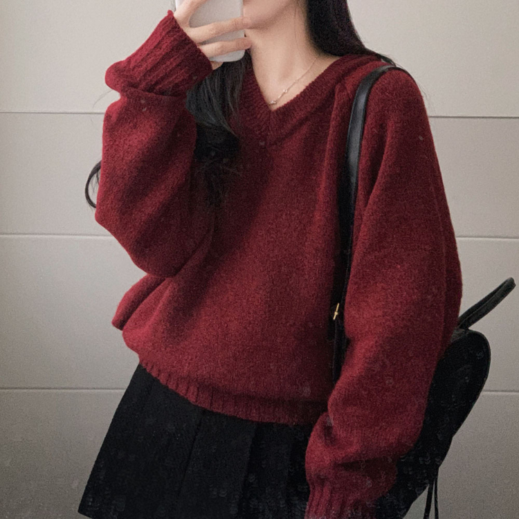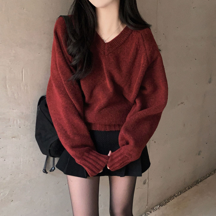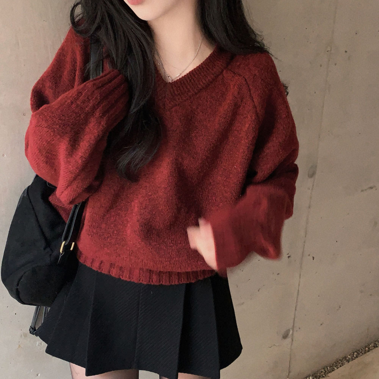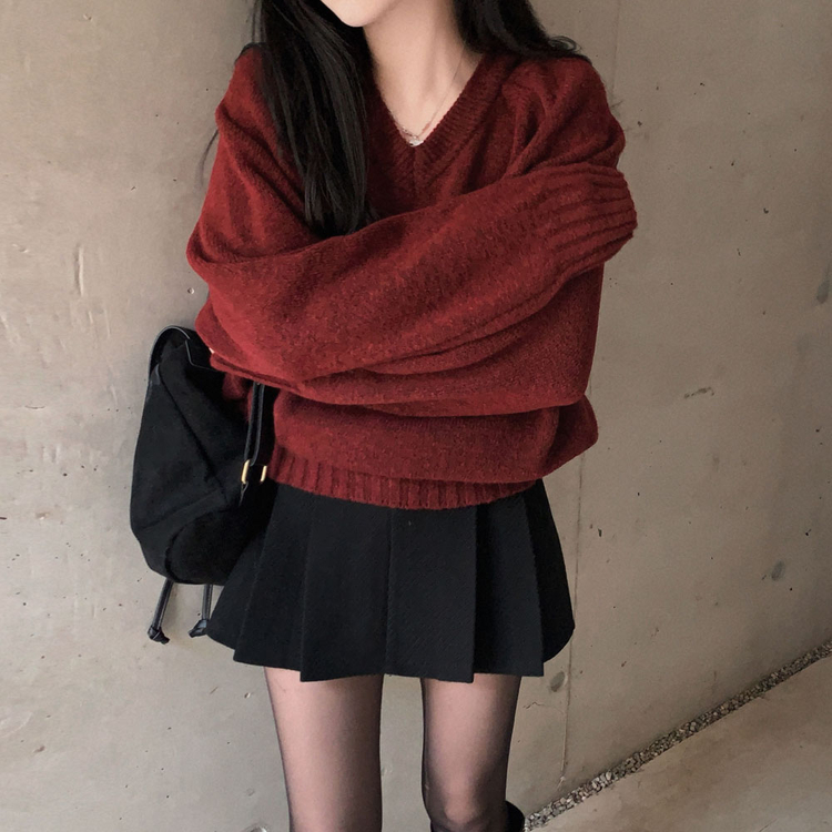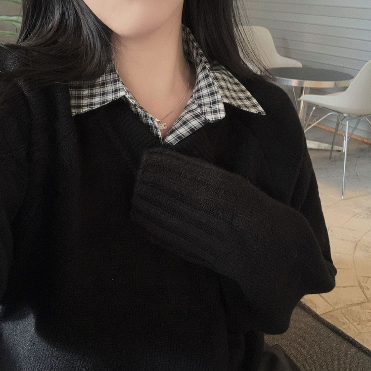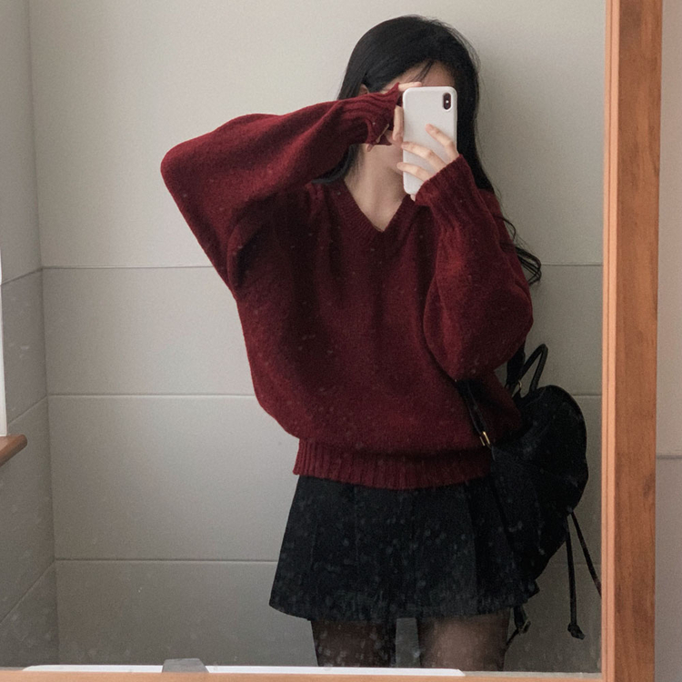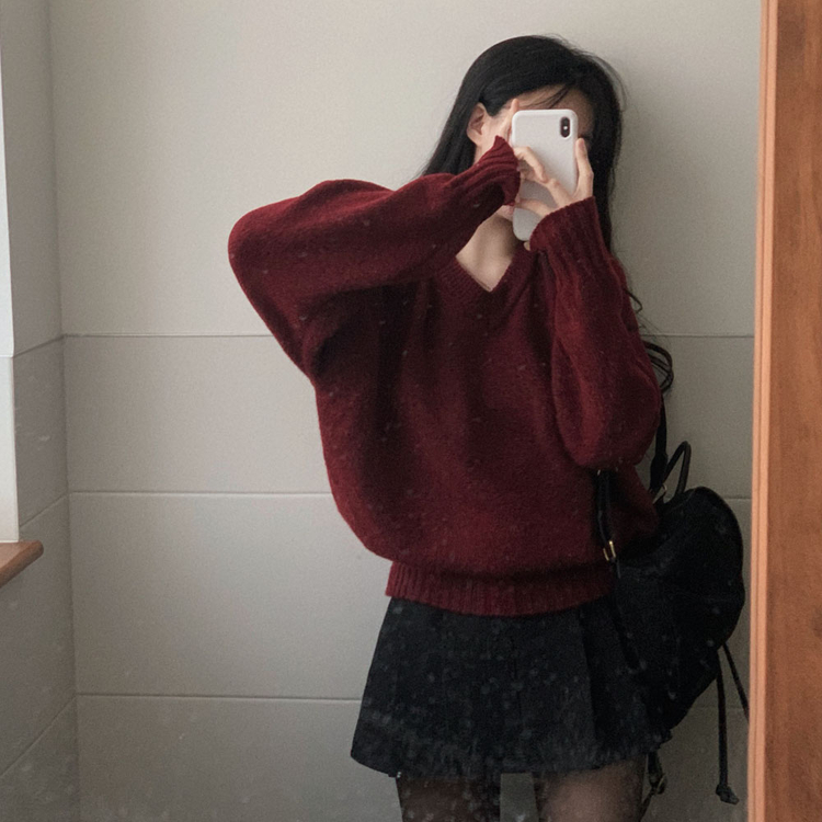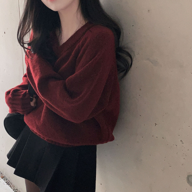 SNT29791 제니 브이넥 레이어드 루즈핏 나그랑 니트