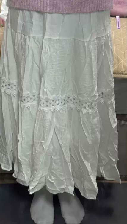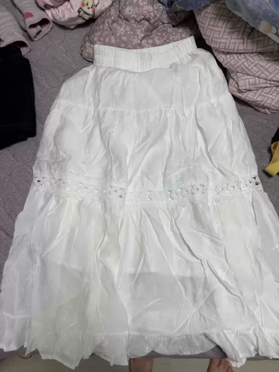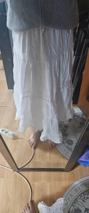 SSK21230 로라 레이스 펀칭 봄 허리밴딩 봄 여름 롱스커트 롱치마 봄옷 여름옷 휴가룩 봄치마
