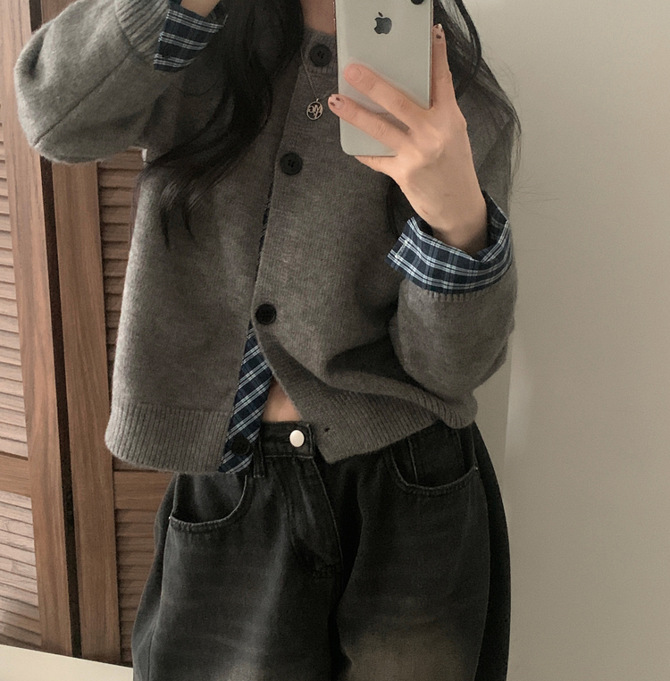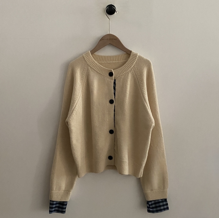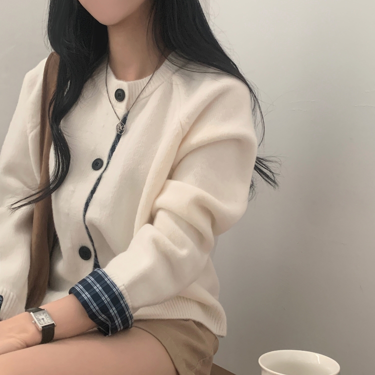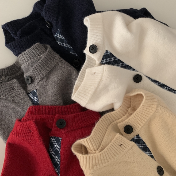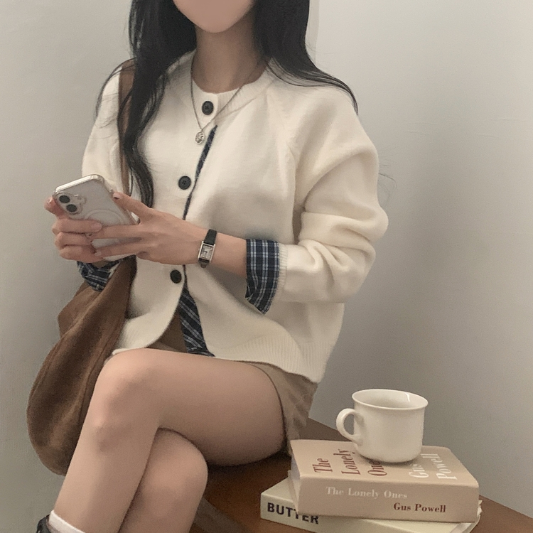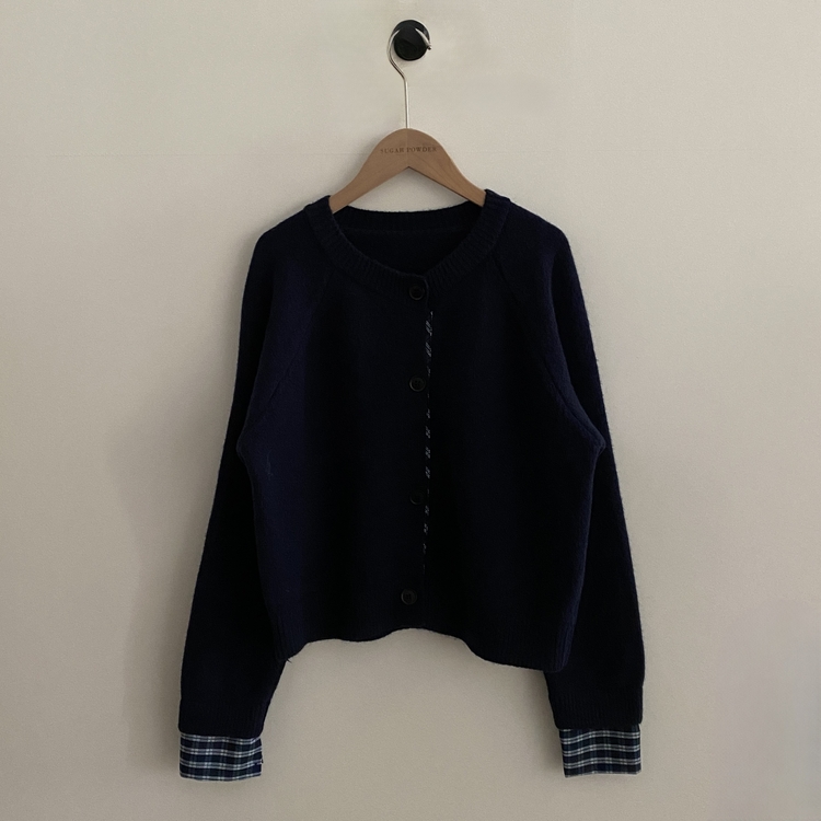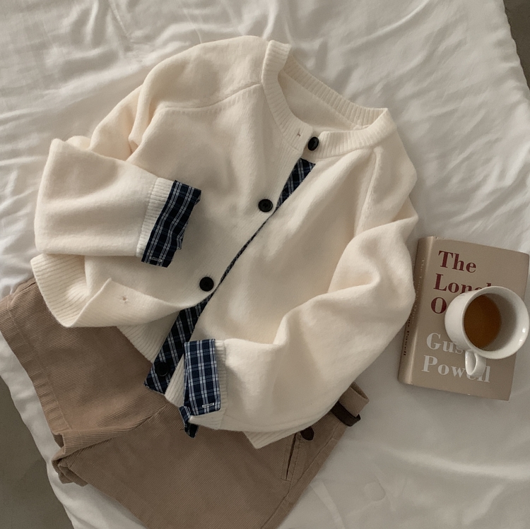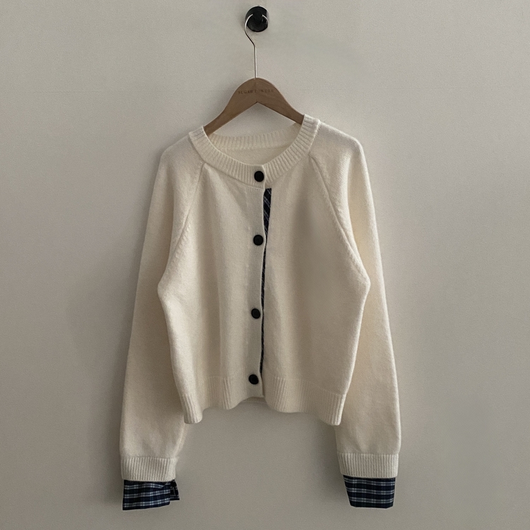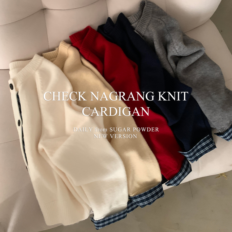 SGD25917 몰리 체크 레이어드 배색 니트 가디건 5color