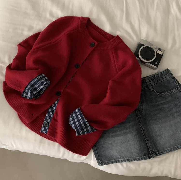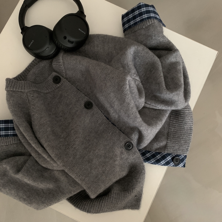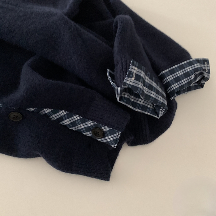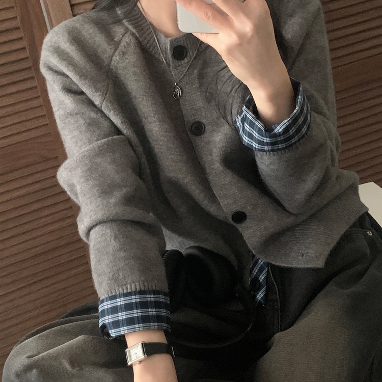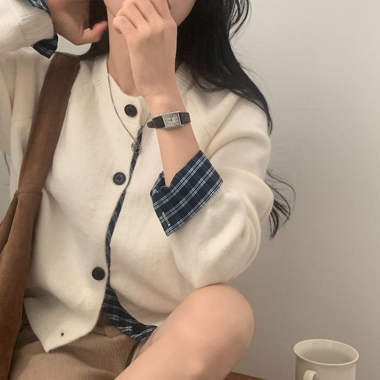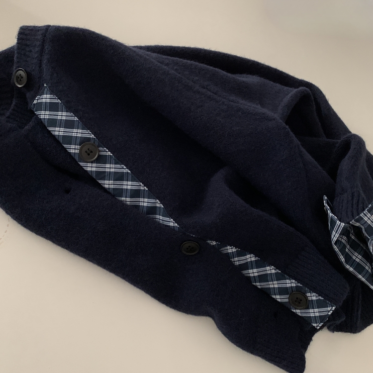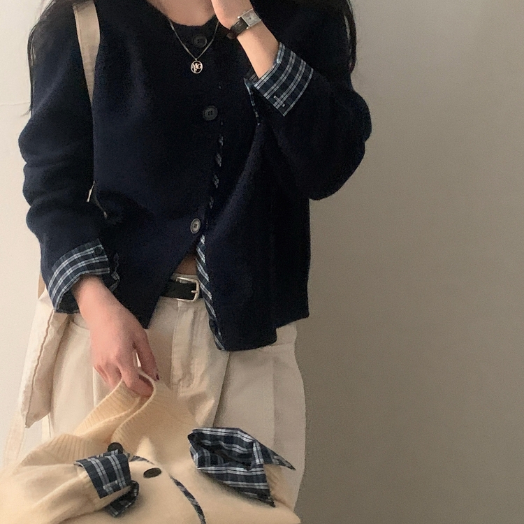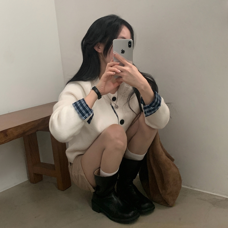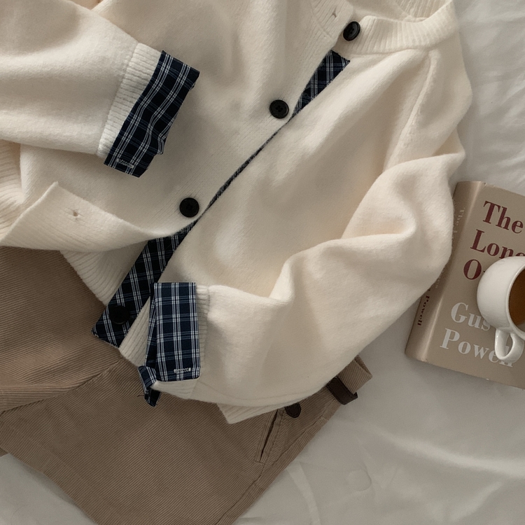 SGD25917 몰리 체크 레이어드 배색 니트 가디건 5color