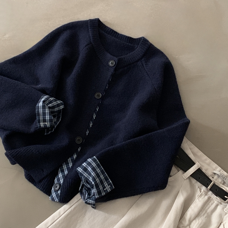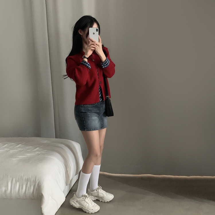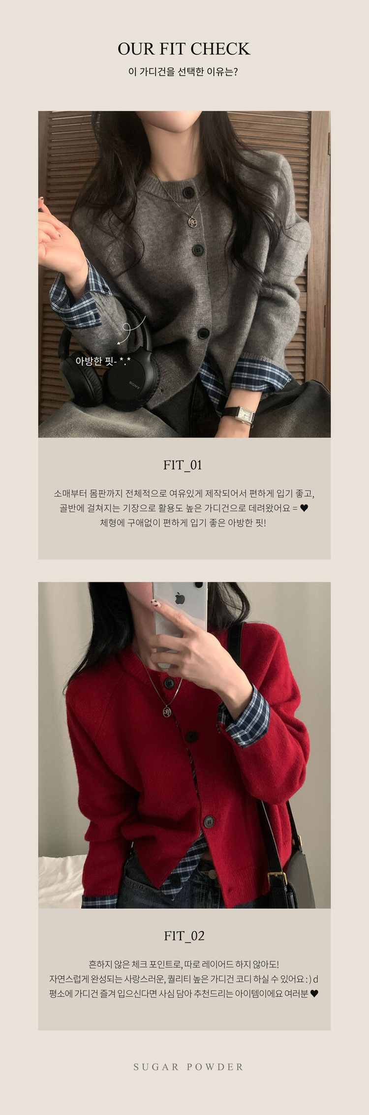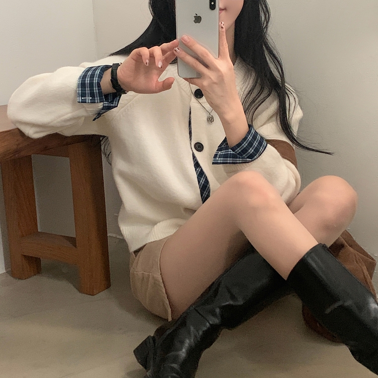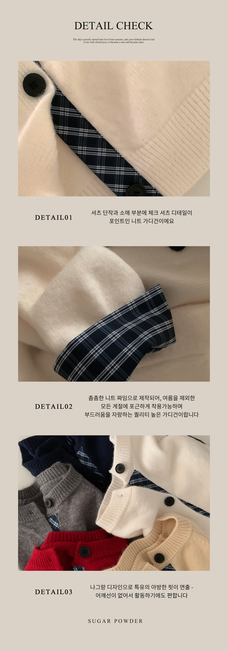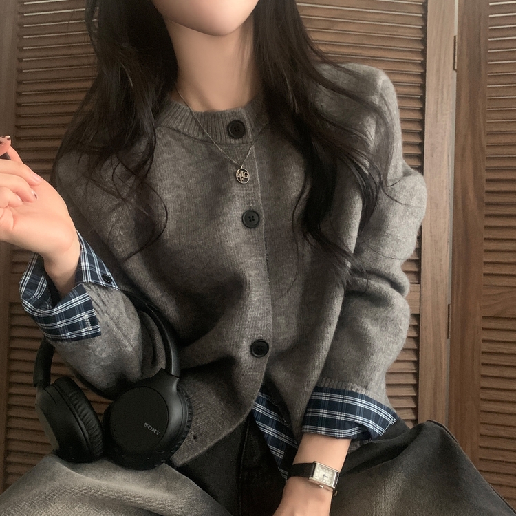 SGD25917 몰리 체크 레이어드 배색 니트 가디건 5color