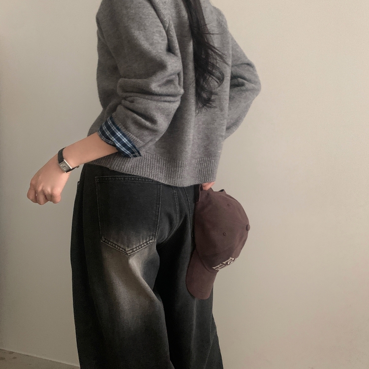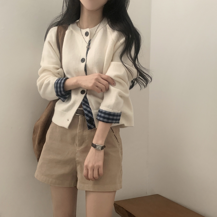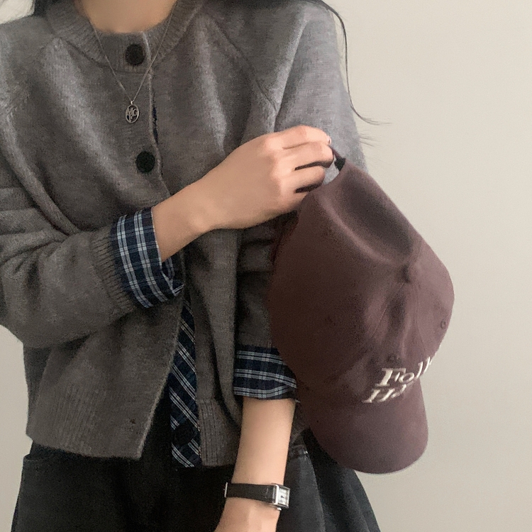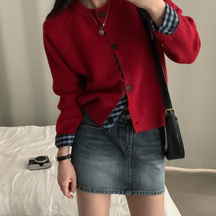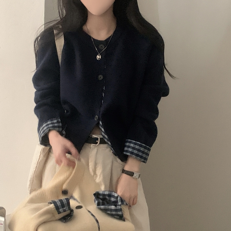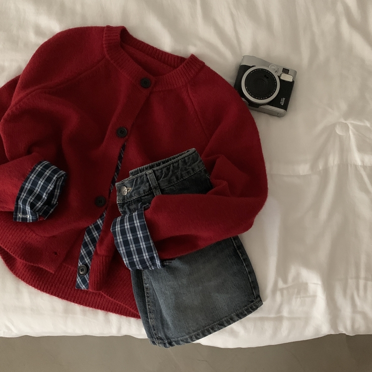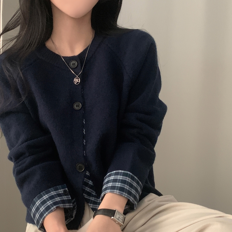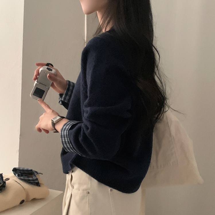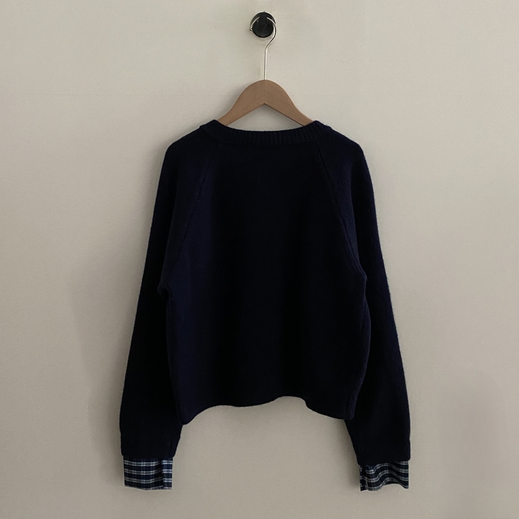 SGD25917 몰리 체크 레이어드 배색 니트 가디건 5color