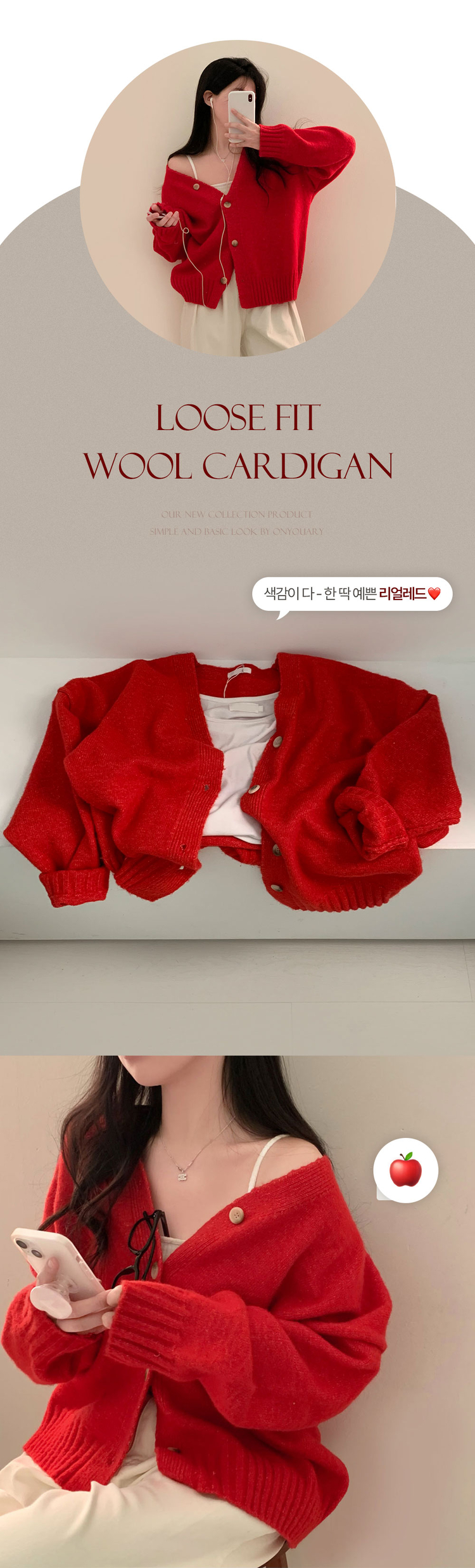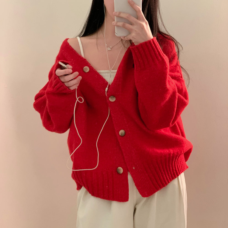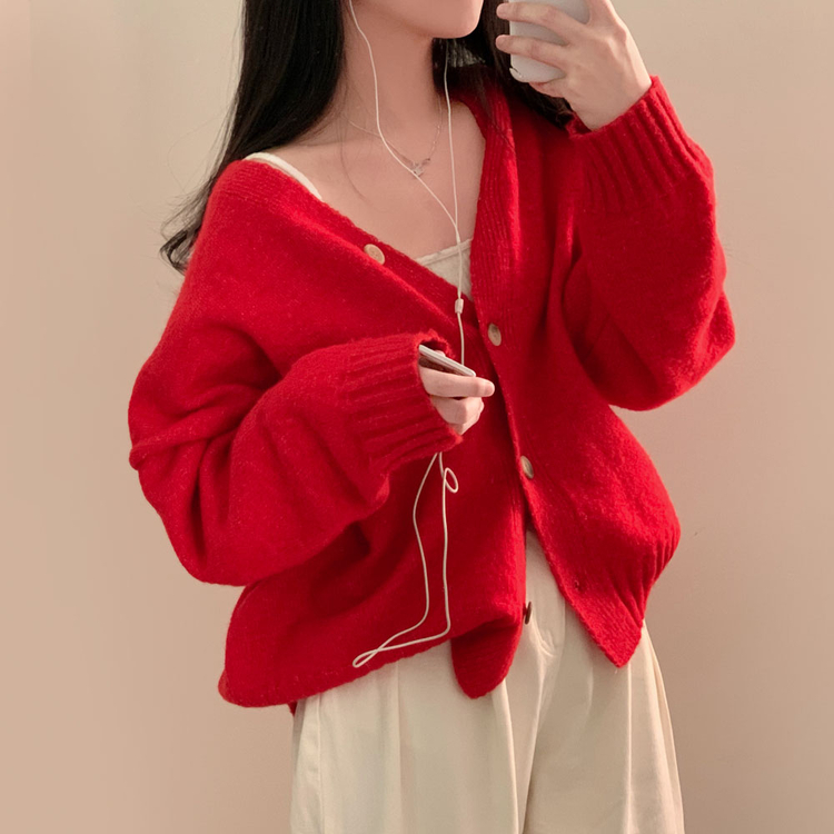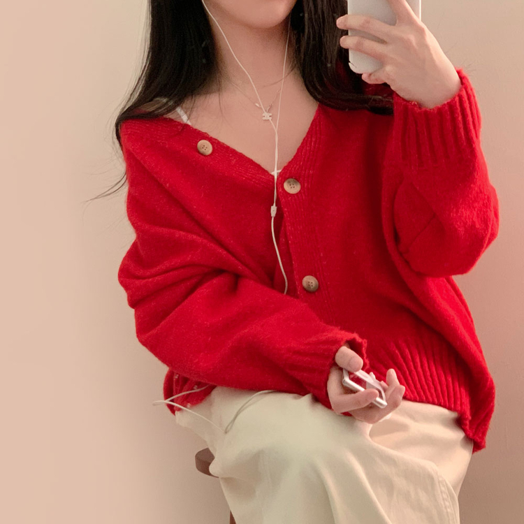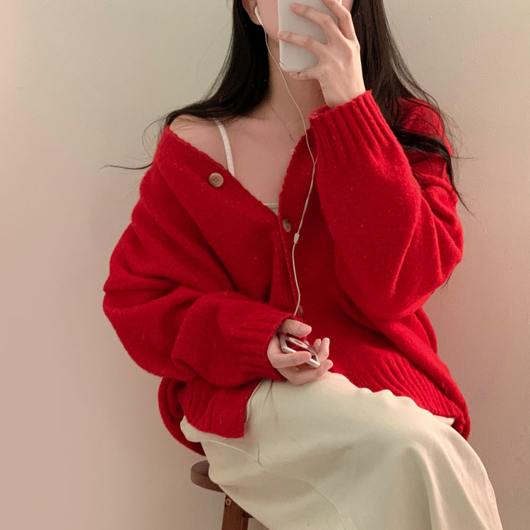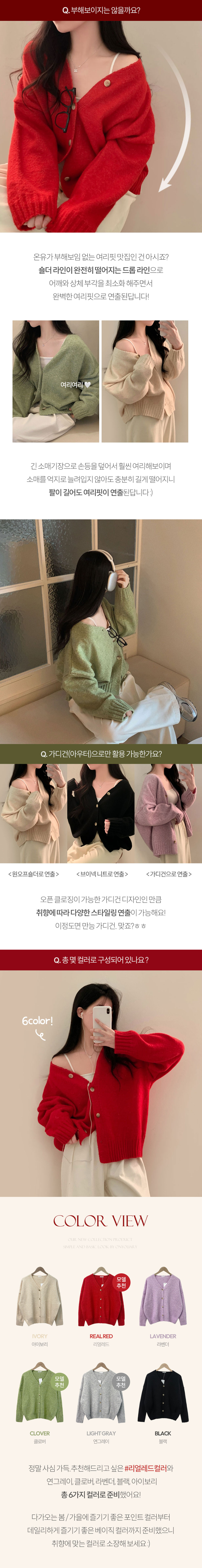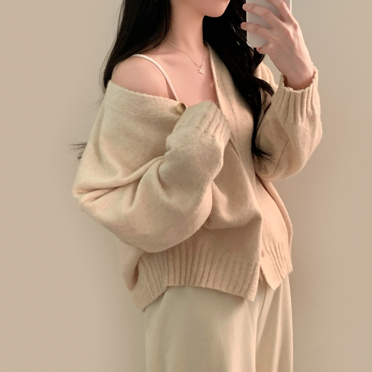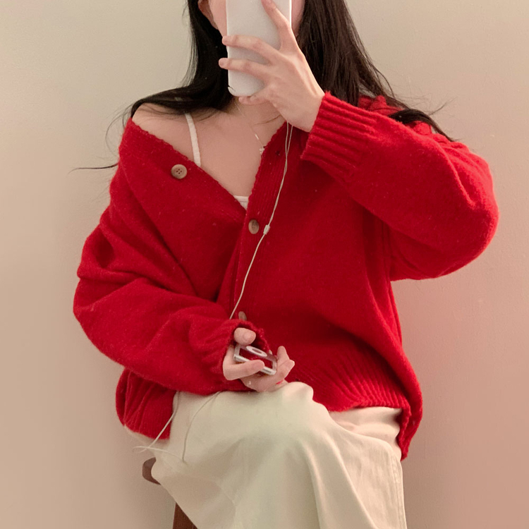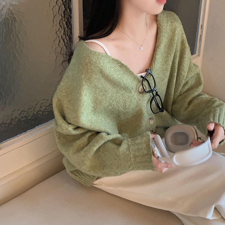 SGD25934 파우더 울 루즈핏 브이넥 가디건 5color