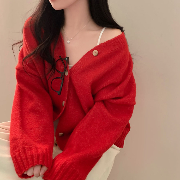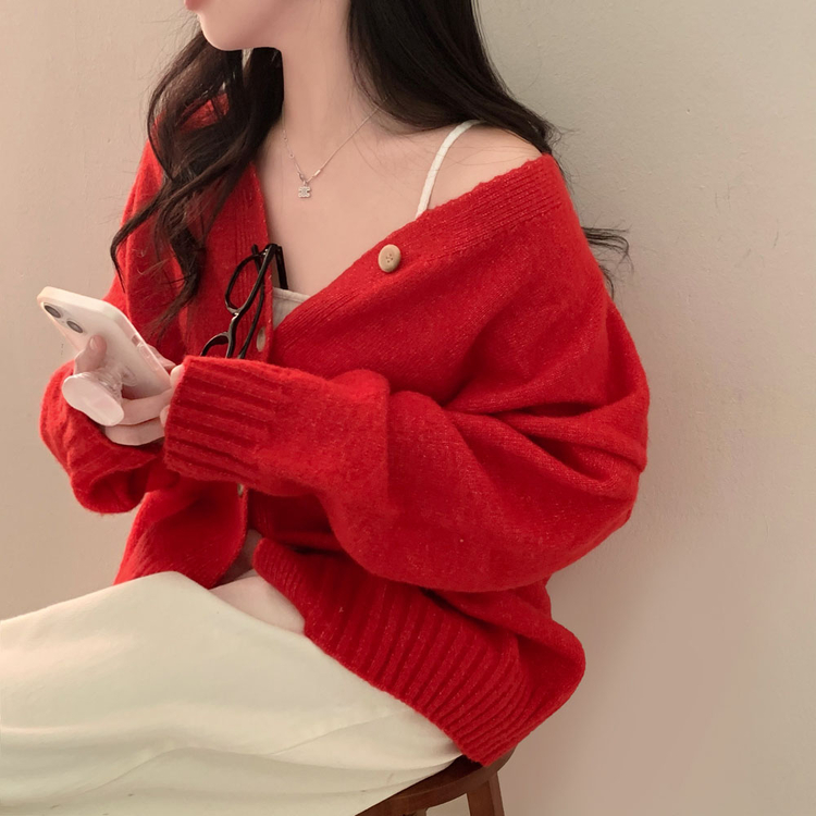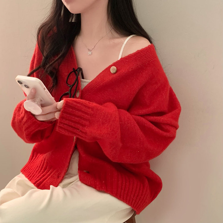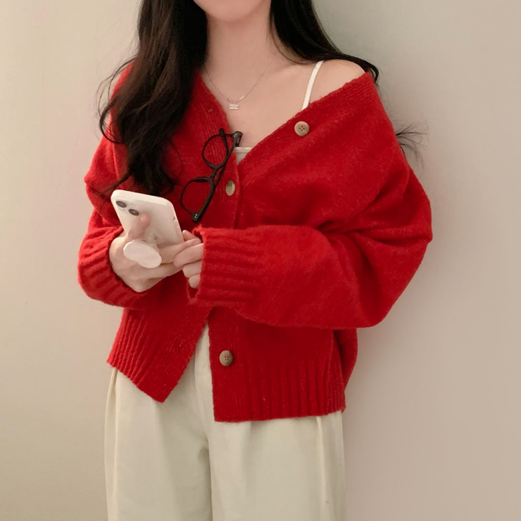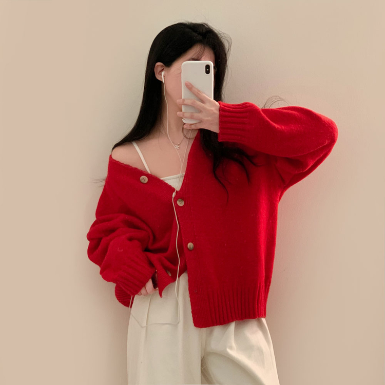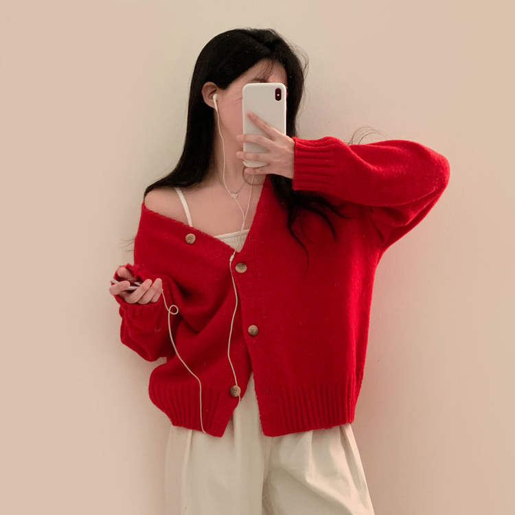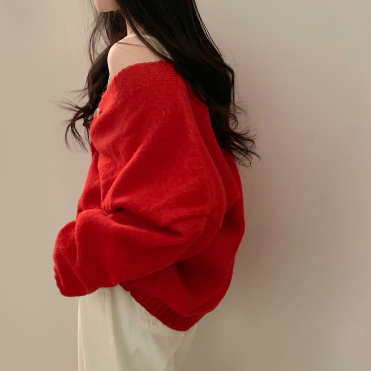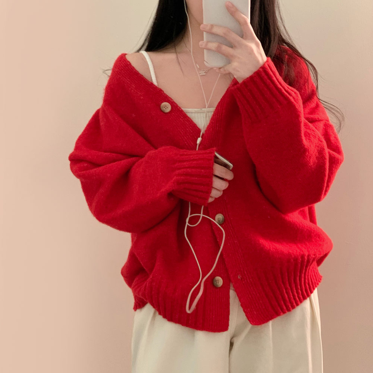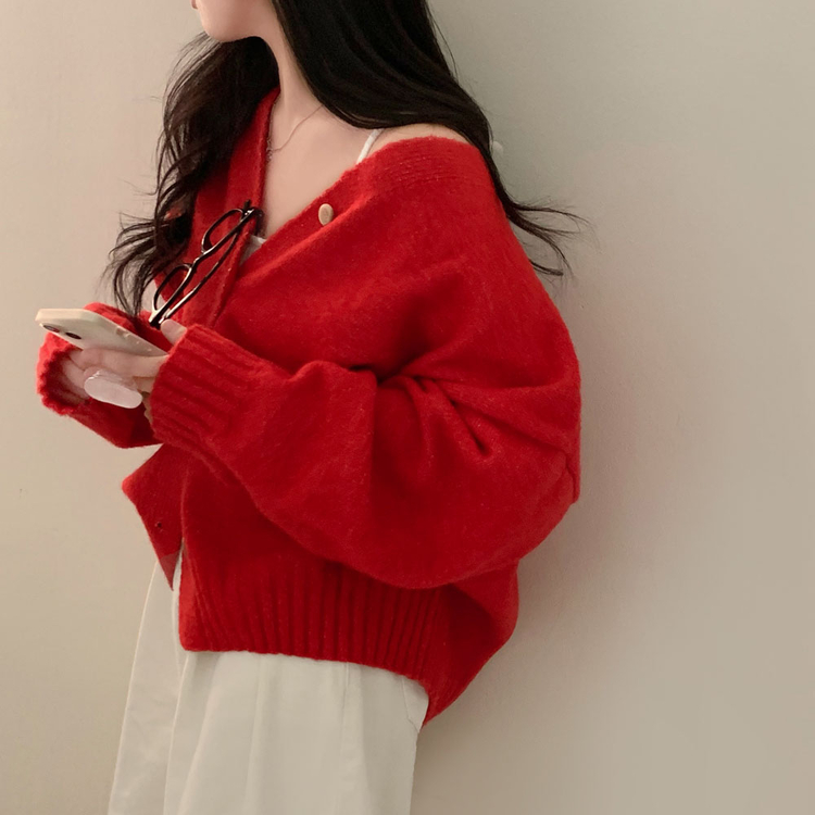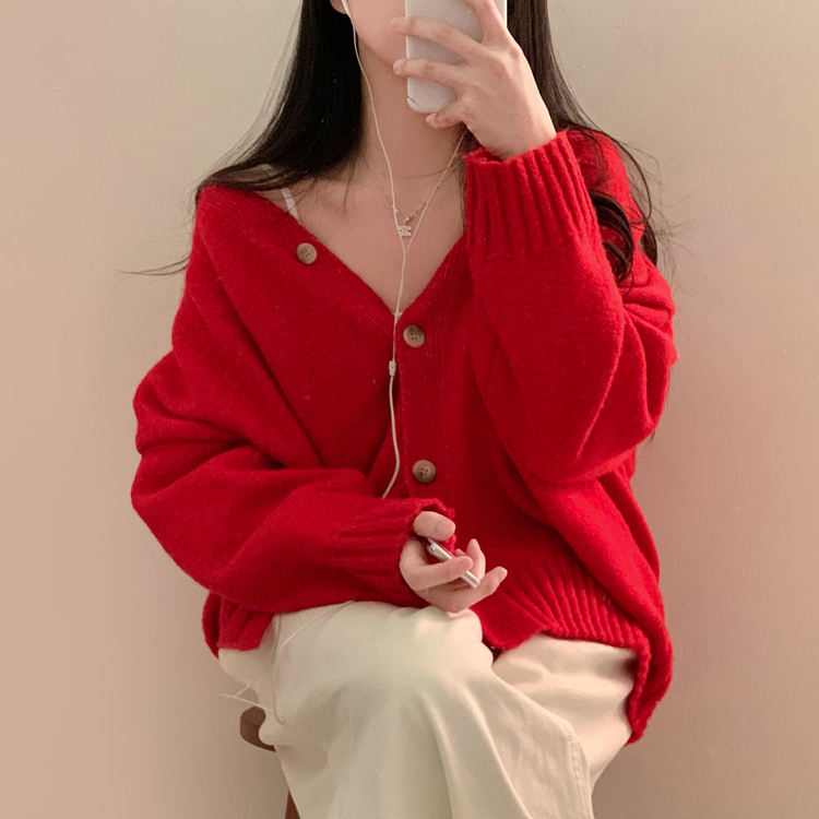 SGD25934 파우더 울 루즈핏 브이넥 가디건 5color