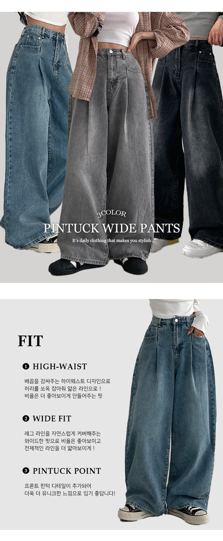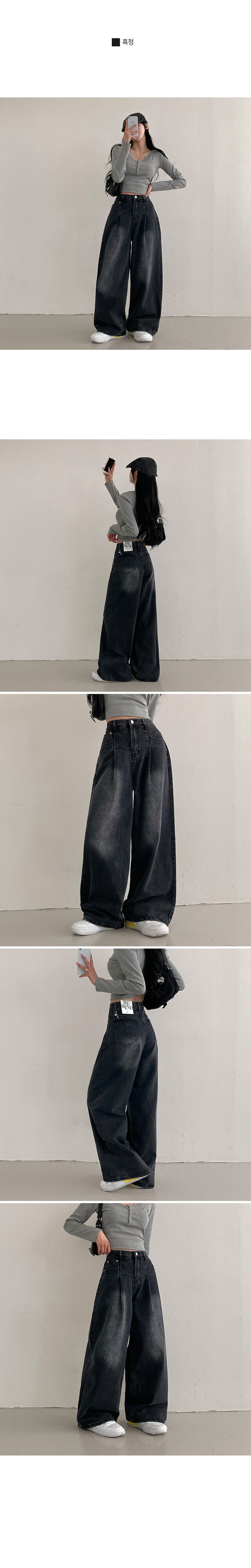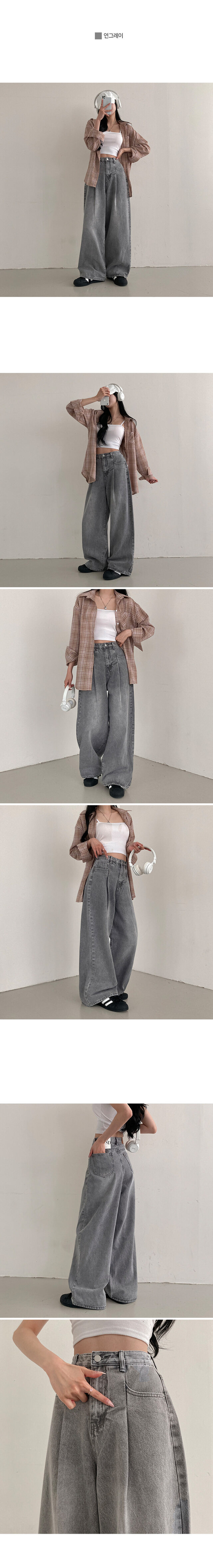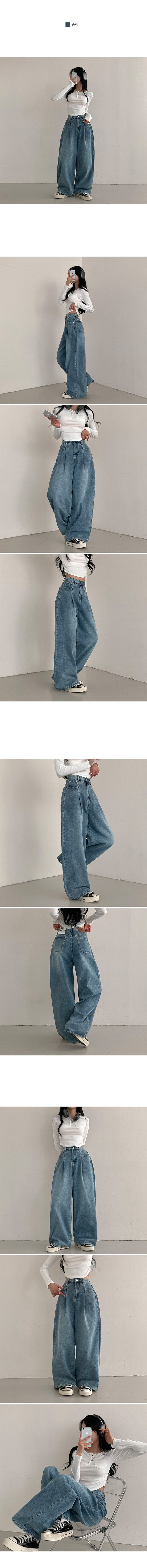 SPS31925 앤트 핀턱 하이웨스트 와이드 데님 팬츠