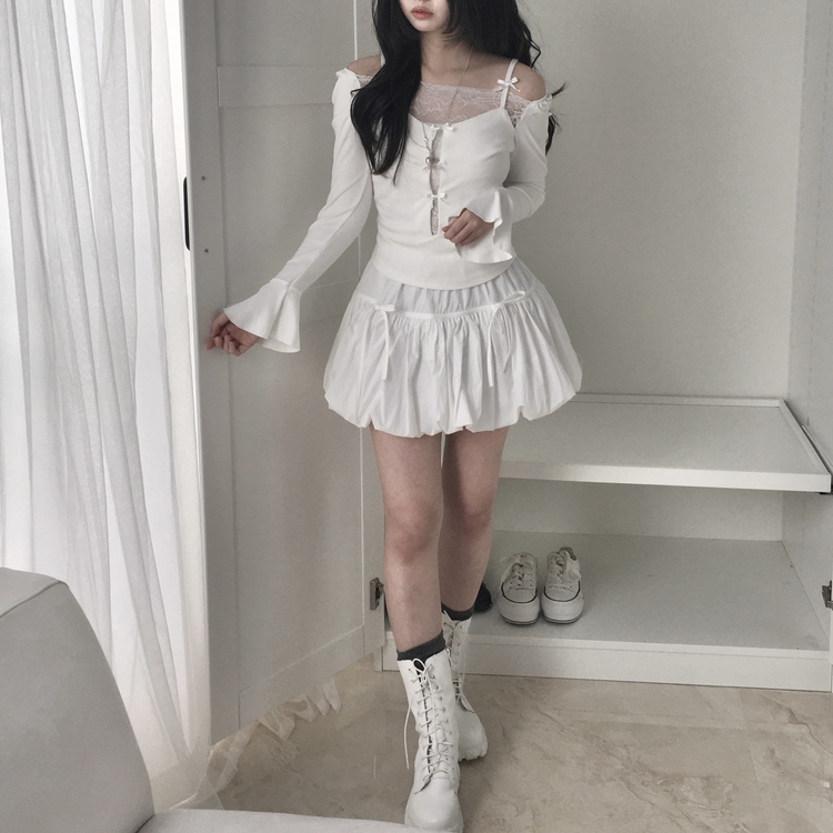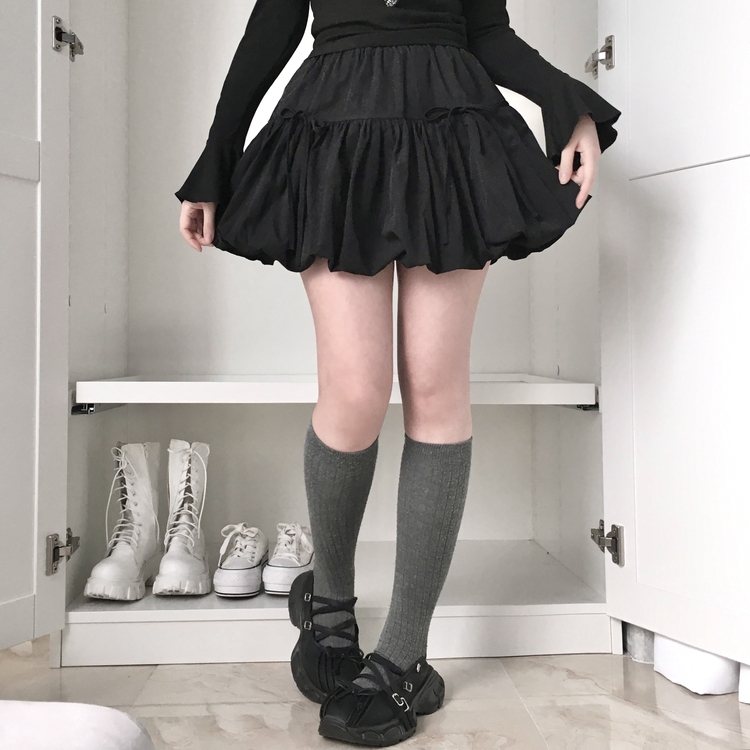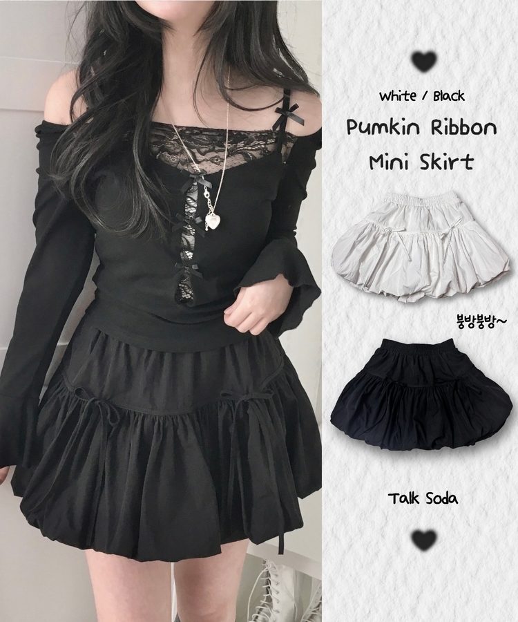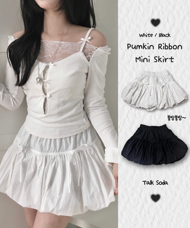 SSK21366 벚꽃룩 귀여운 리본포인트 바스락 펌킨 호박 미니 스커트 속바지내장